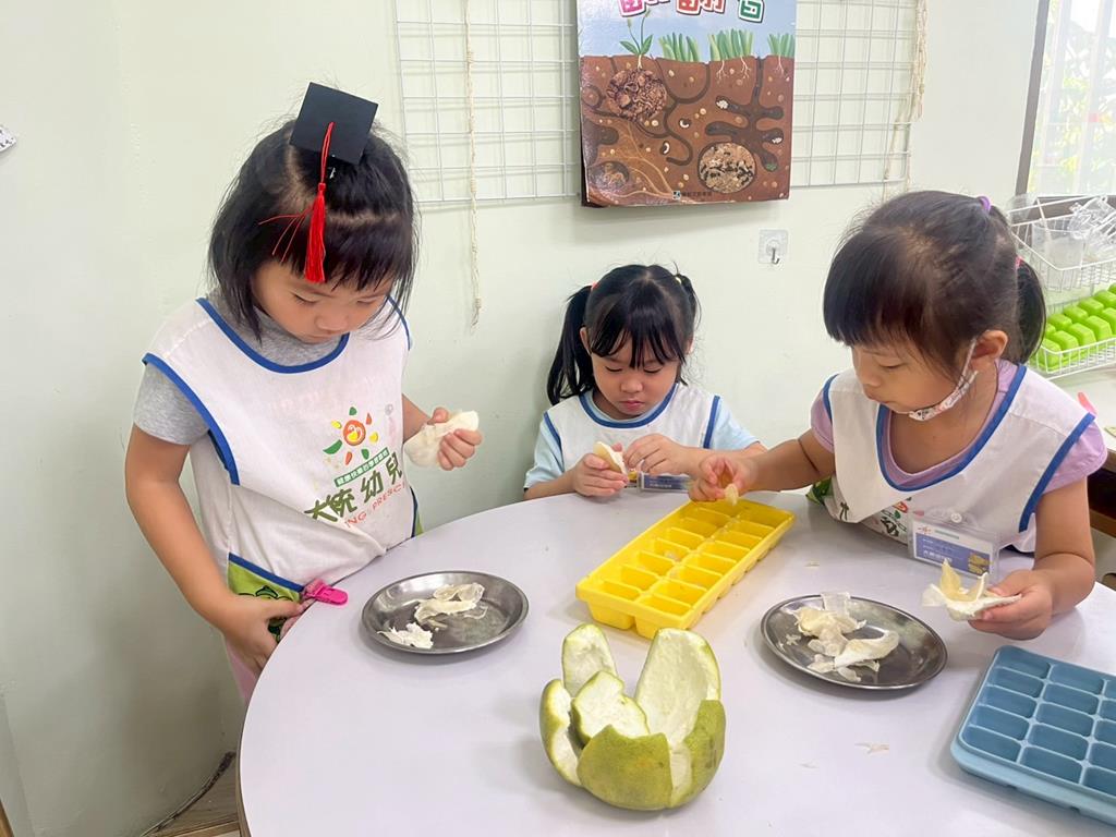 相簿名稱: 科學區-練習切水果及我會點屬水果有幾個,將水果皮進行乾燥實驗電鍋