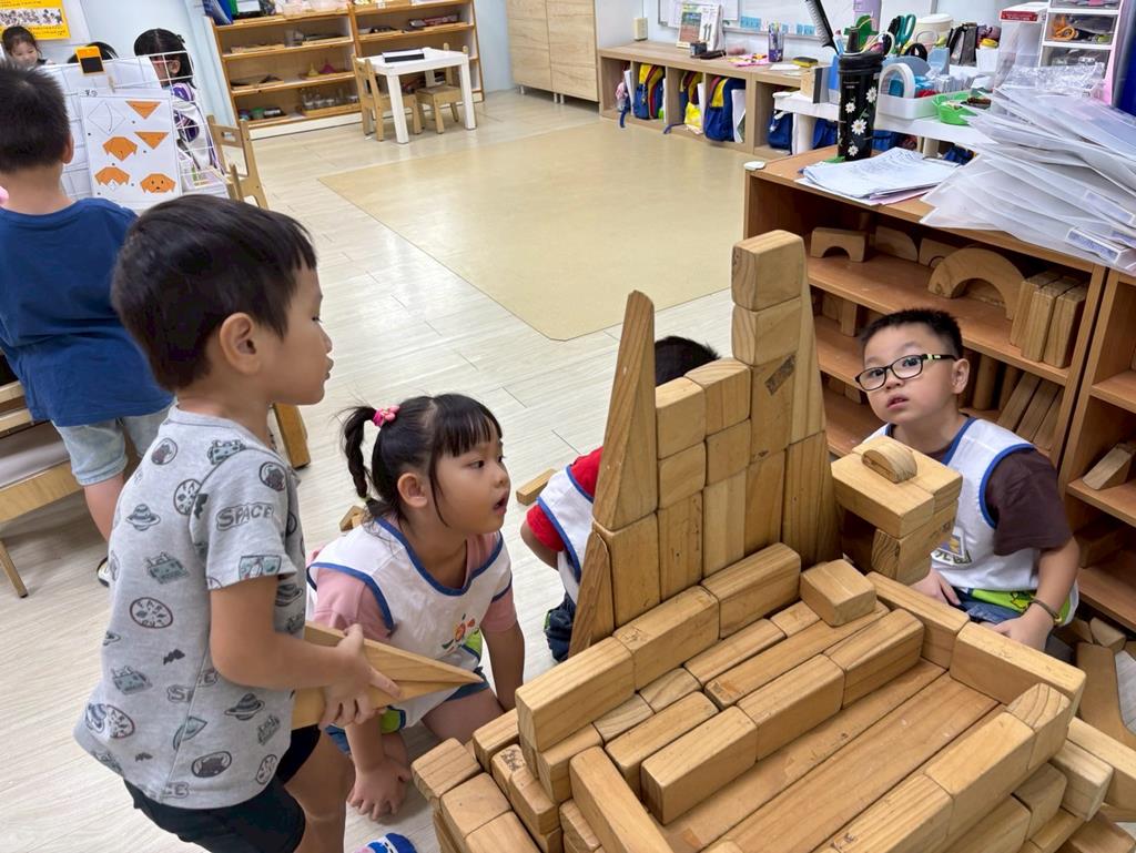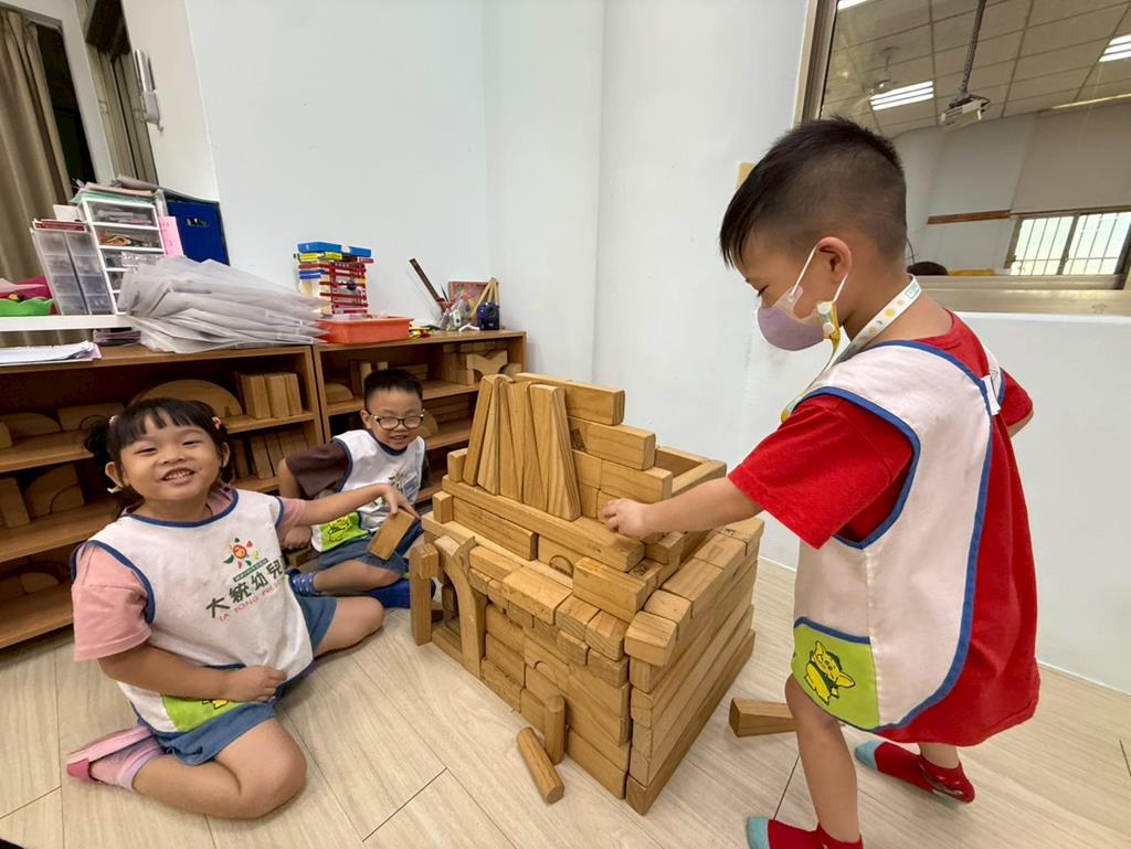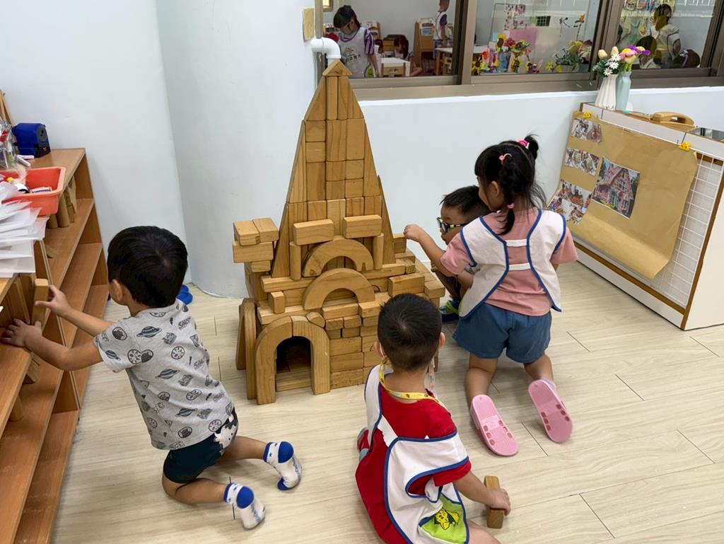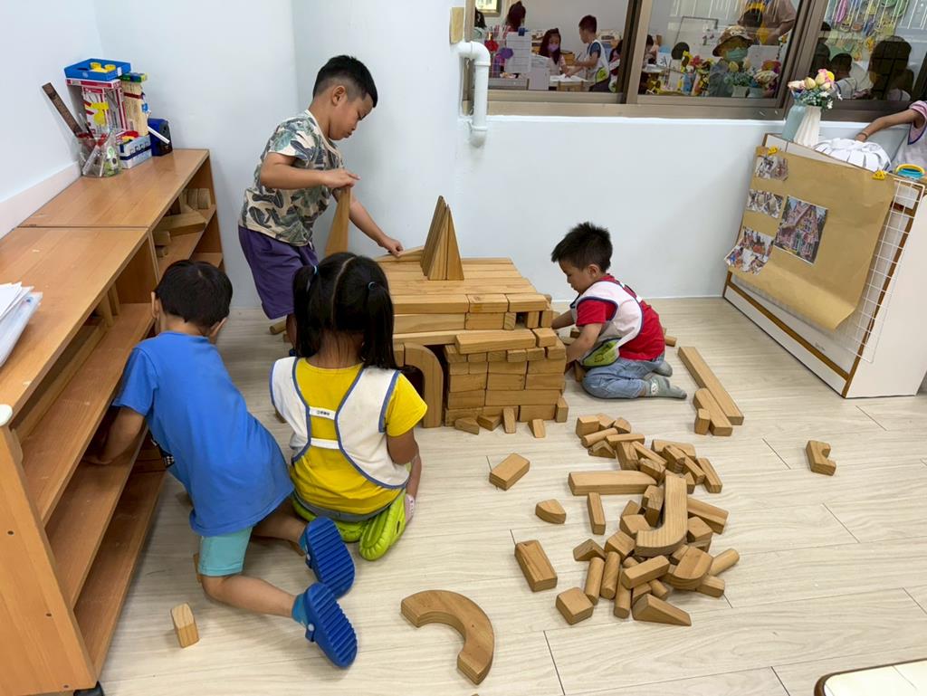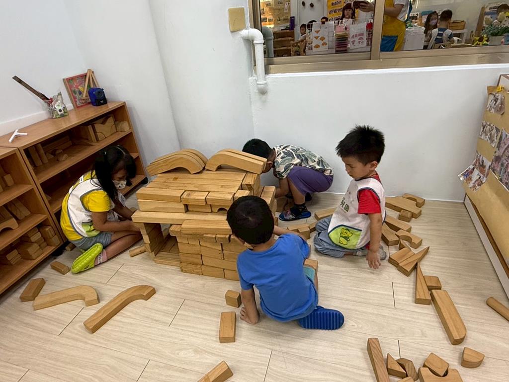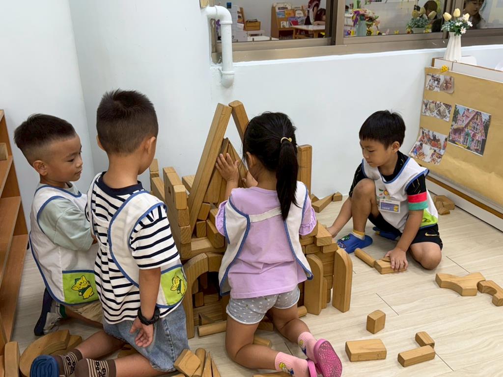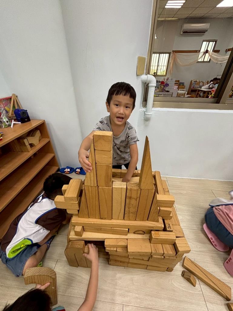 相簿名稱: 積木區-多次修正糖果屋屋頂並共同討論如何將屋頂變高變斜