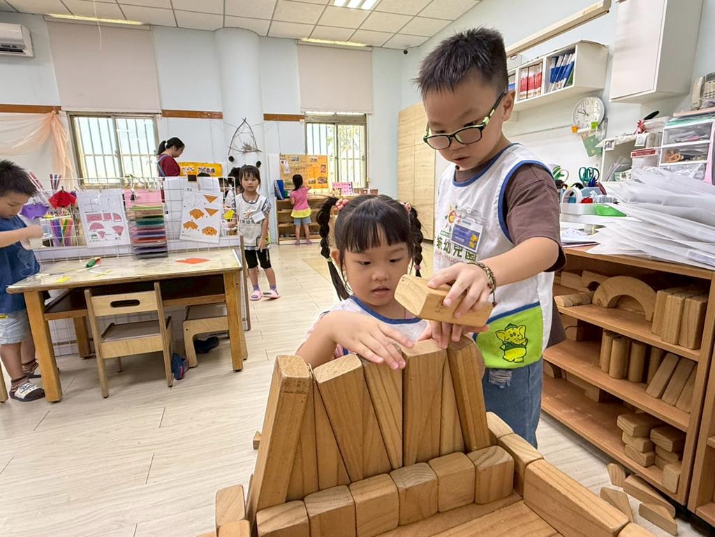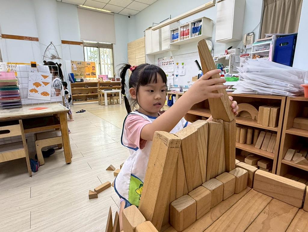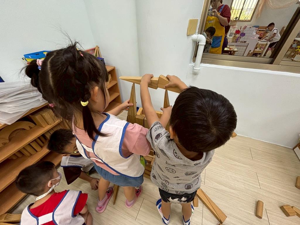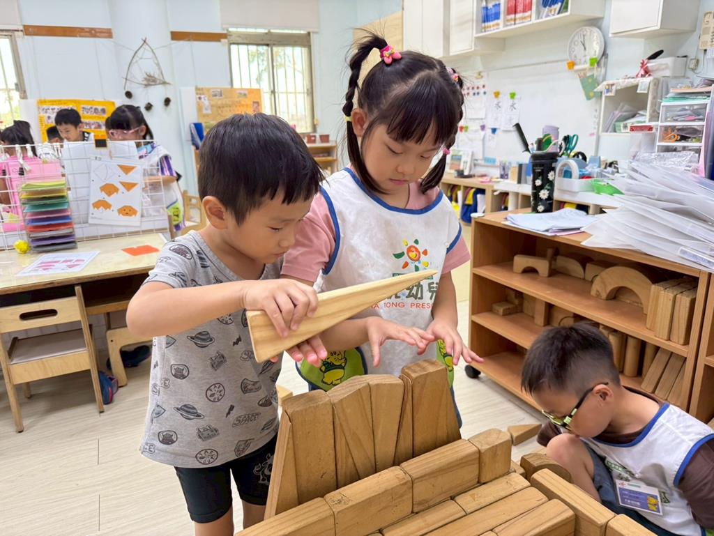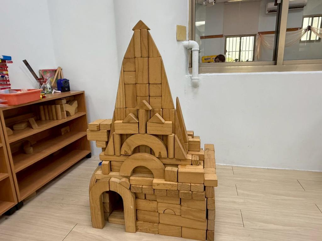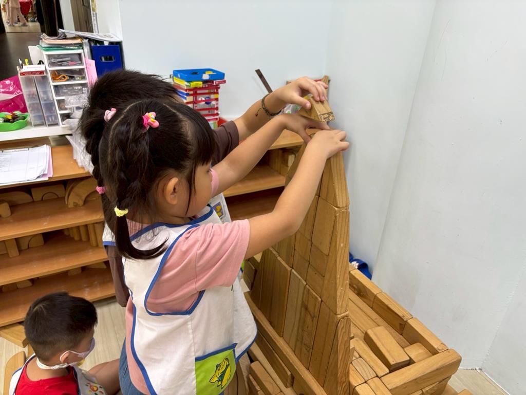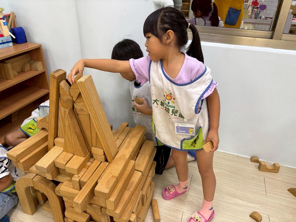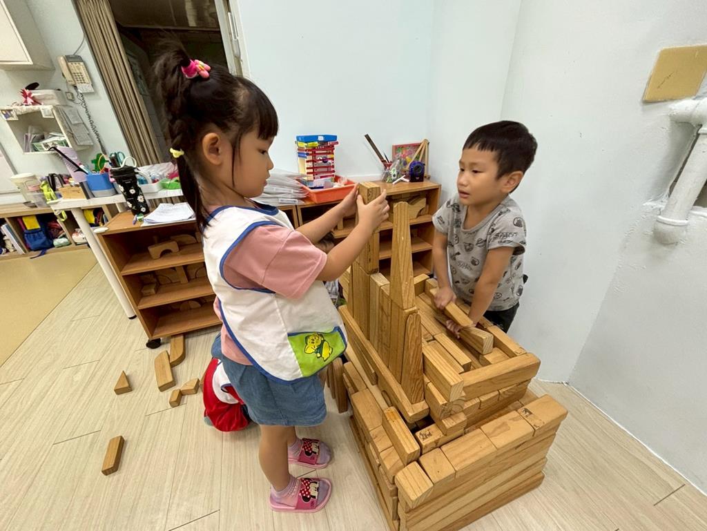 相簿名稱: 積木區-多次修正糖果屋屋頂並共同討論如何將屋頂變高變斜