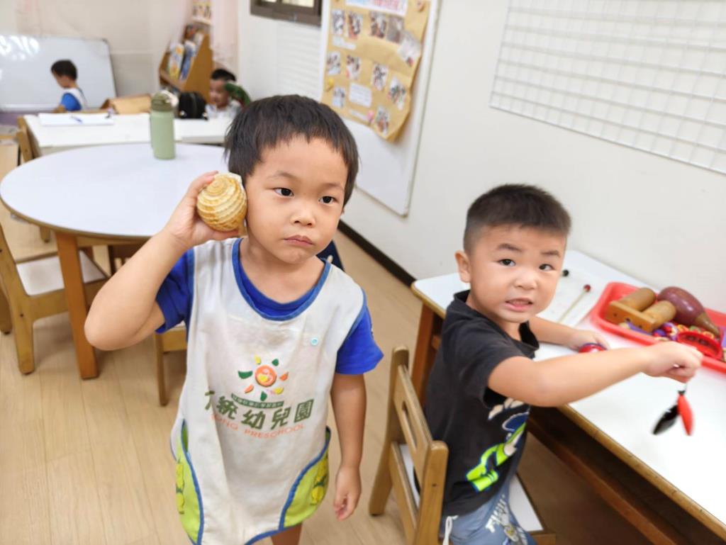 相簿名稱: 科學區-敲一敲、貝殼有什麼聲音、觀察魚兒