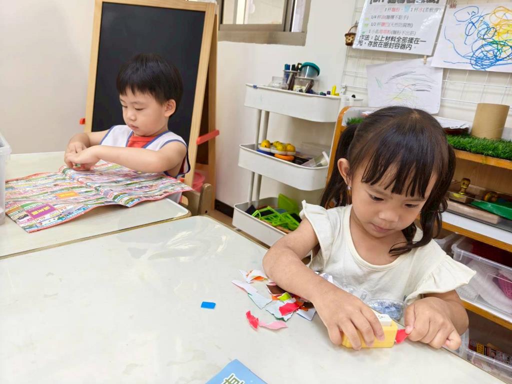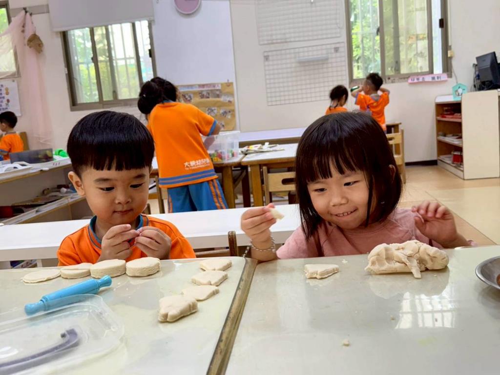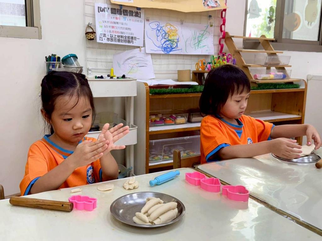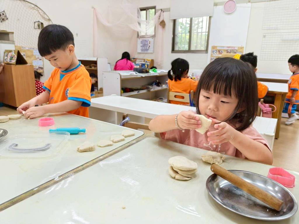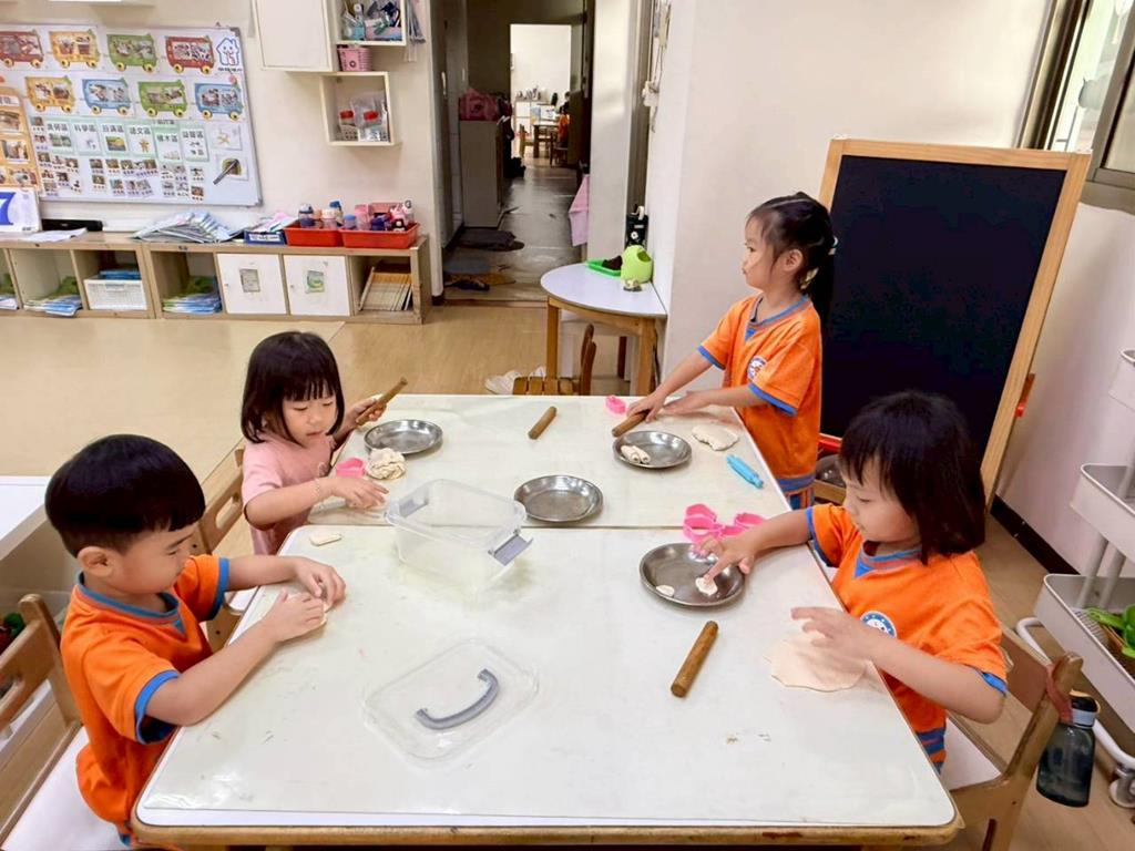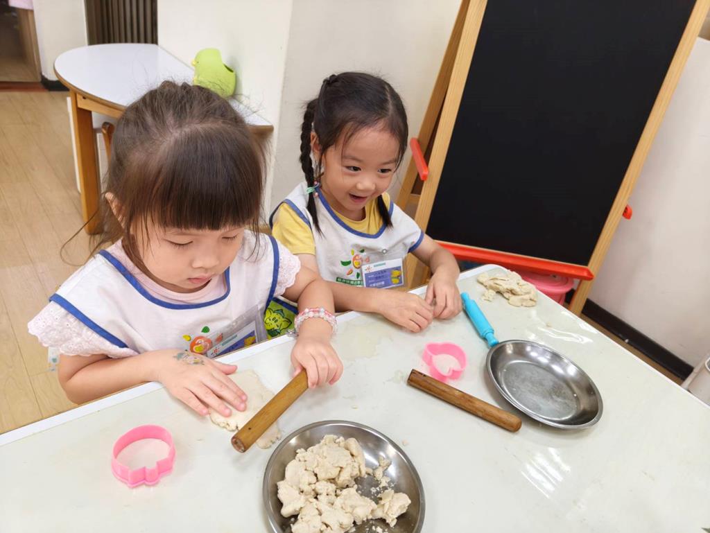 相簿名稱: 美勞-麵粉糰揉月餅、打洞、撕紙、佈置家人照片邊框、