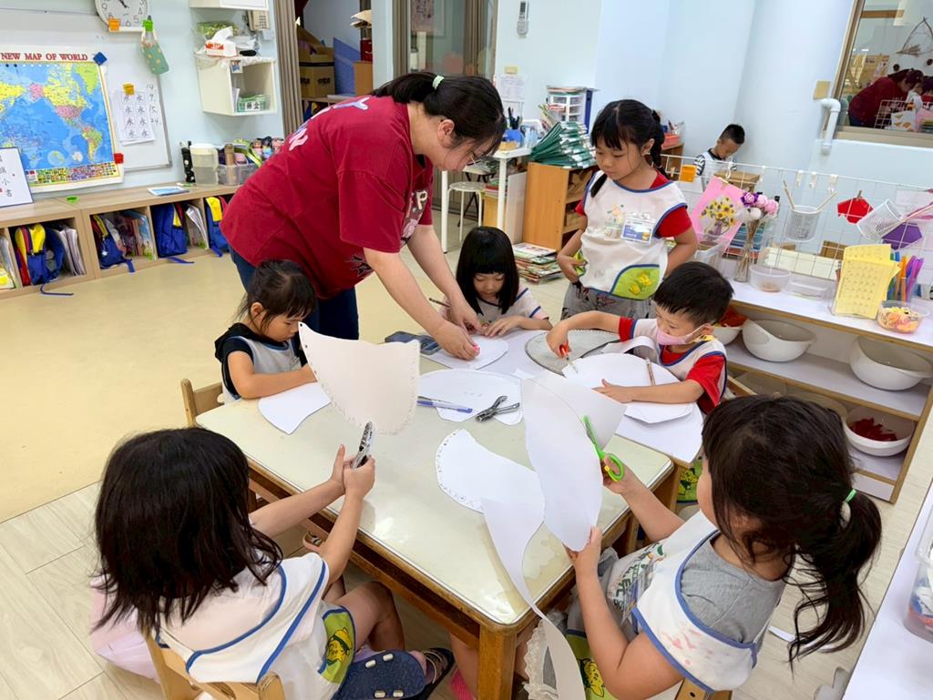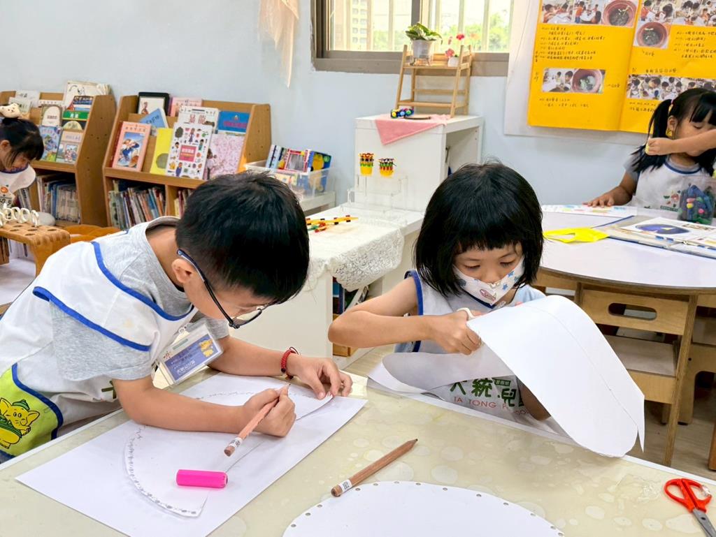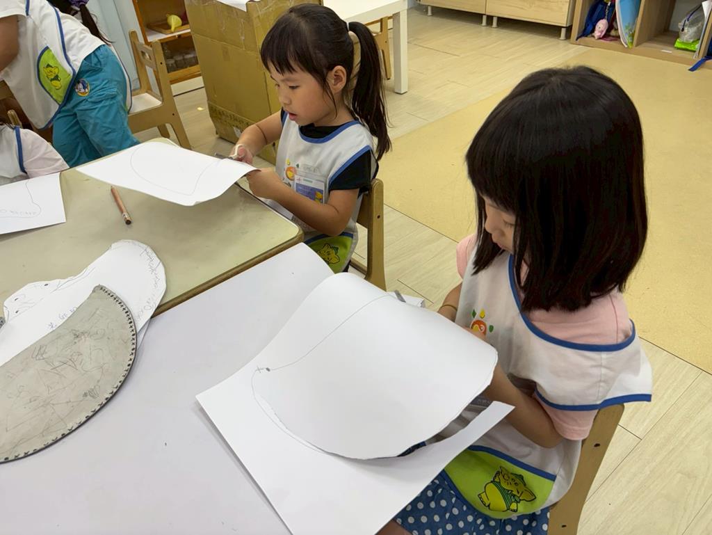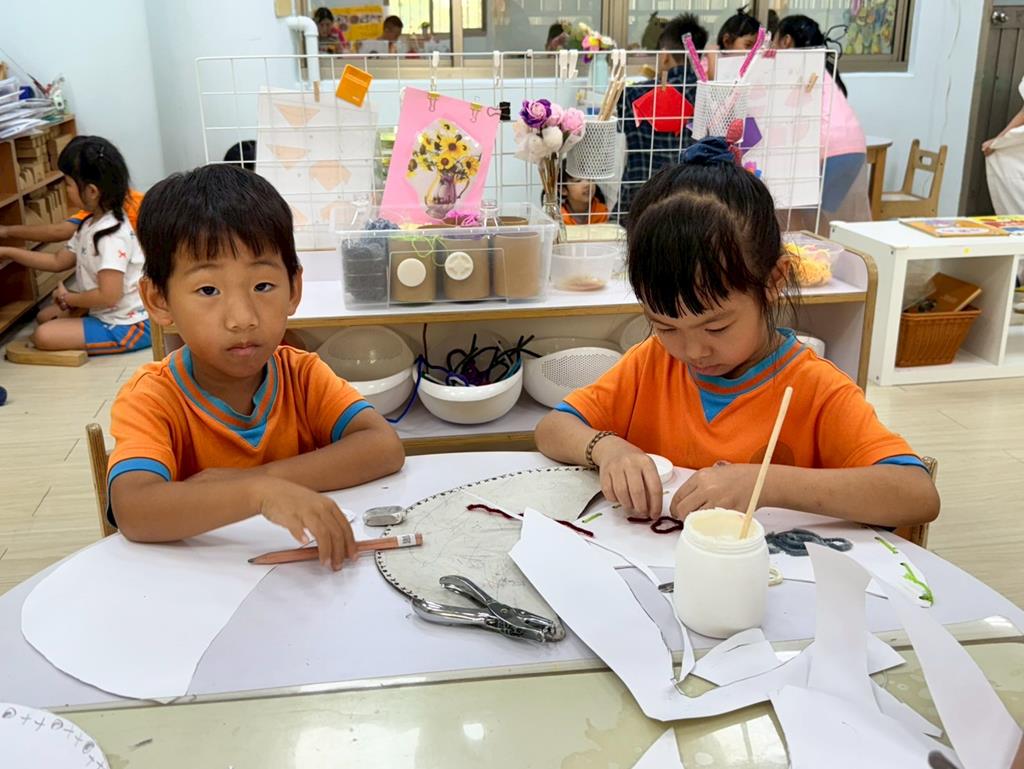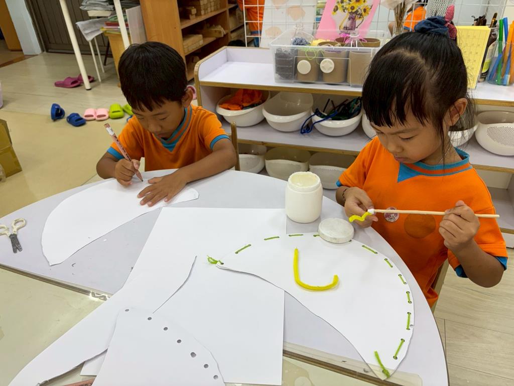 相簿名稱: 美勞區-製作月亮包包及佈置並編織辮子作為包包的提手