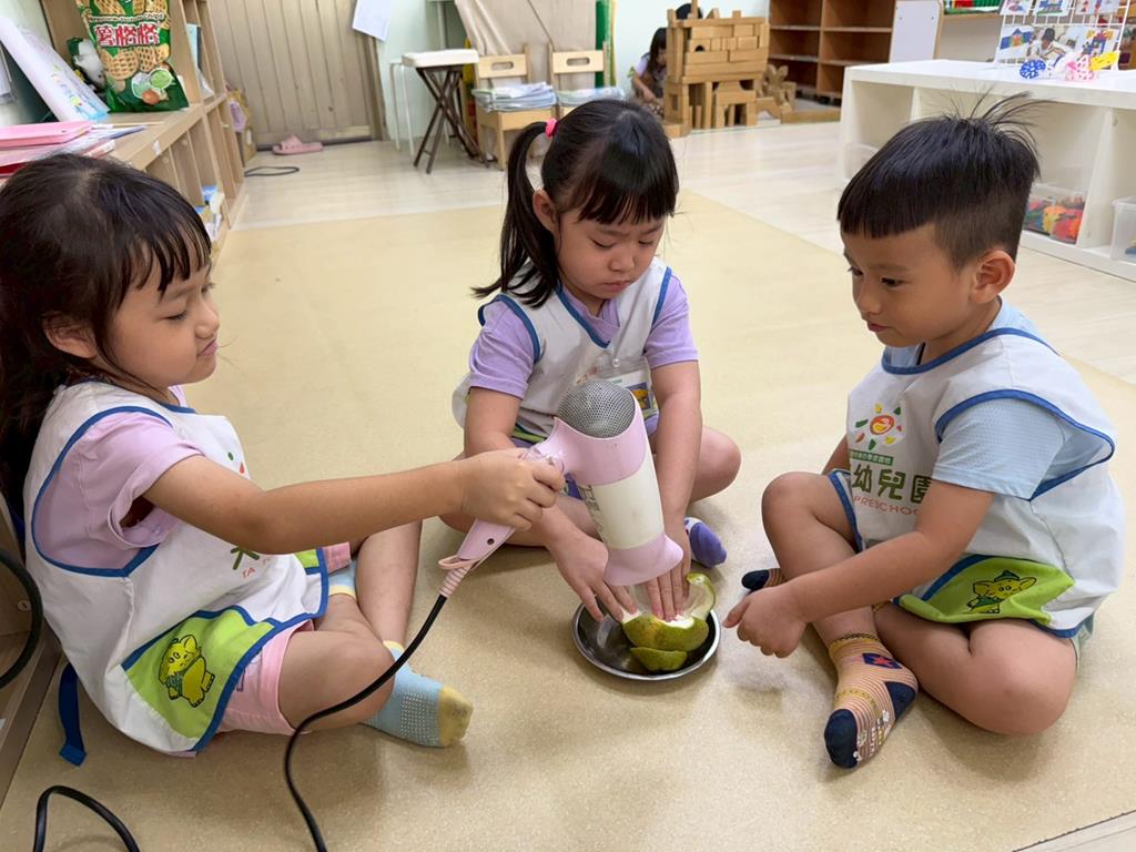 相簿名稱: 科學區-乾燥水果的實驗,運用電鍋、吹風機、太陽曝曬
