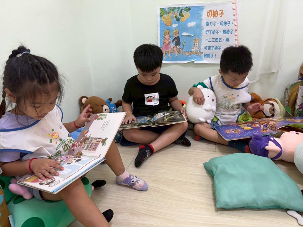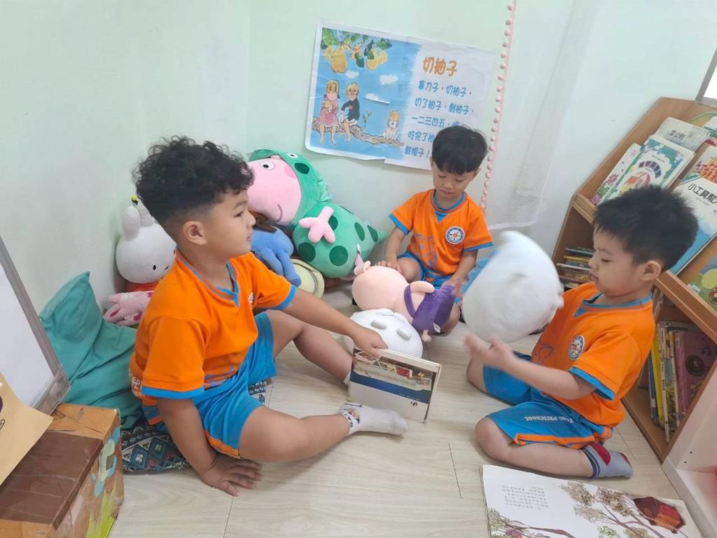 相簿名稱: 團討區-討論.分享;語文區-閱讀繪本.玩偶扮演;積木角-建構積木