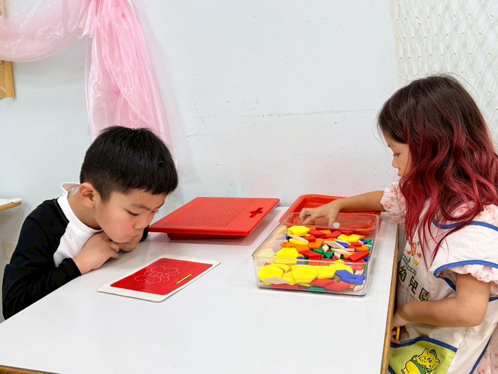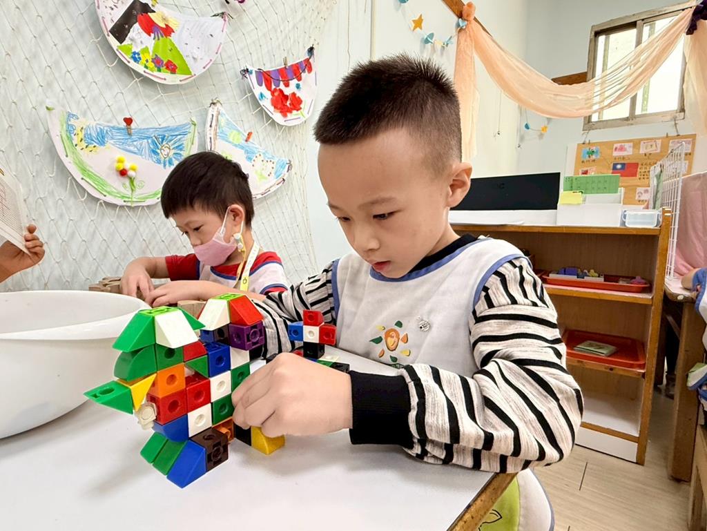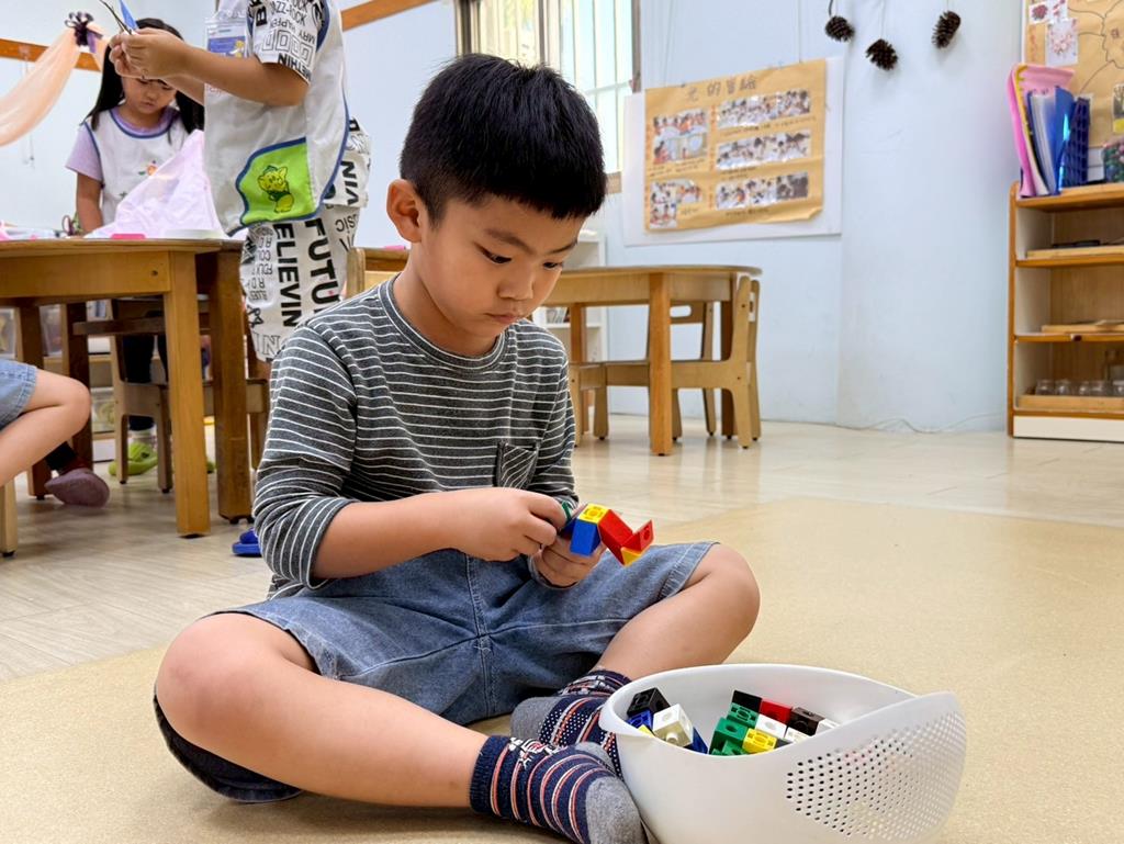 相簿名稱: 益智區-操作各種教具&積木組合建構(陀螺、控龍、機器人)