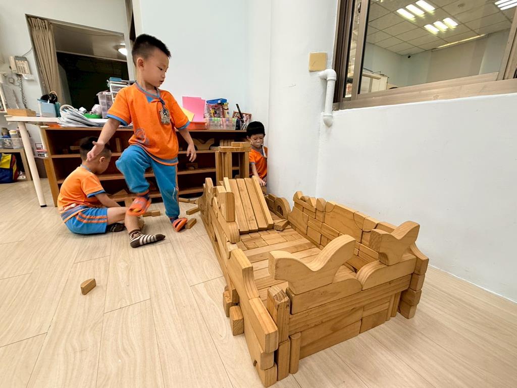相簿名稱: 積木區-共同合作修正灑水器位置及游泳池的跳水板