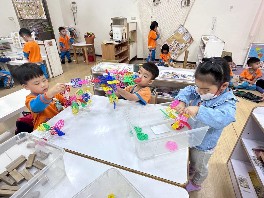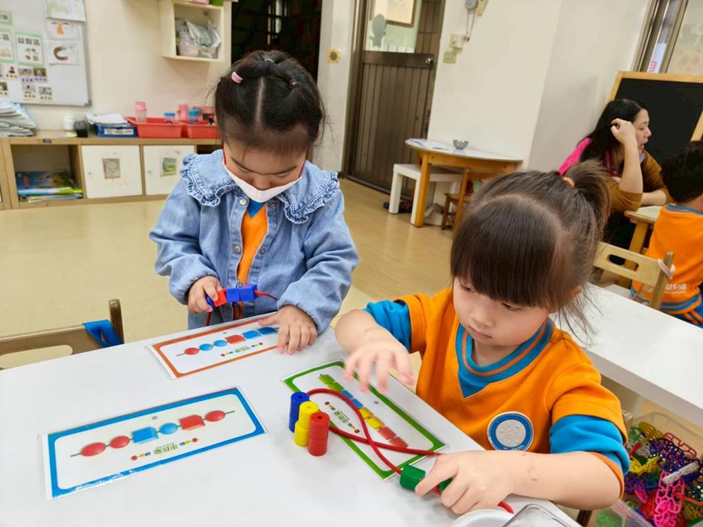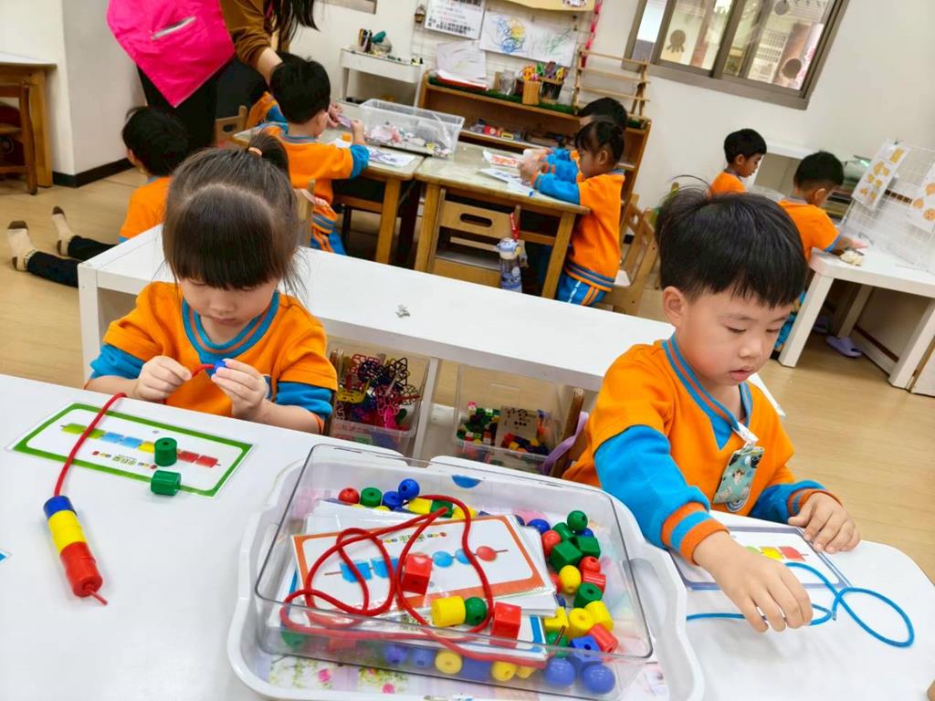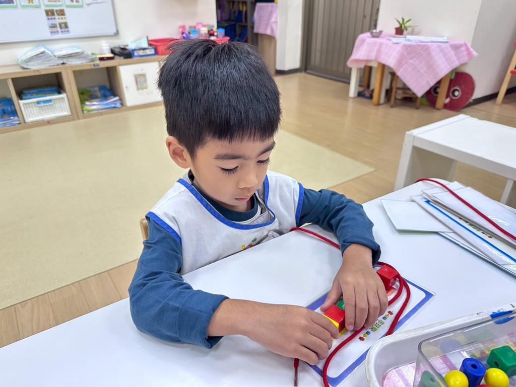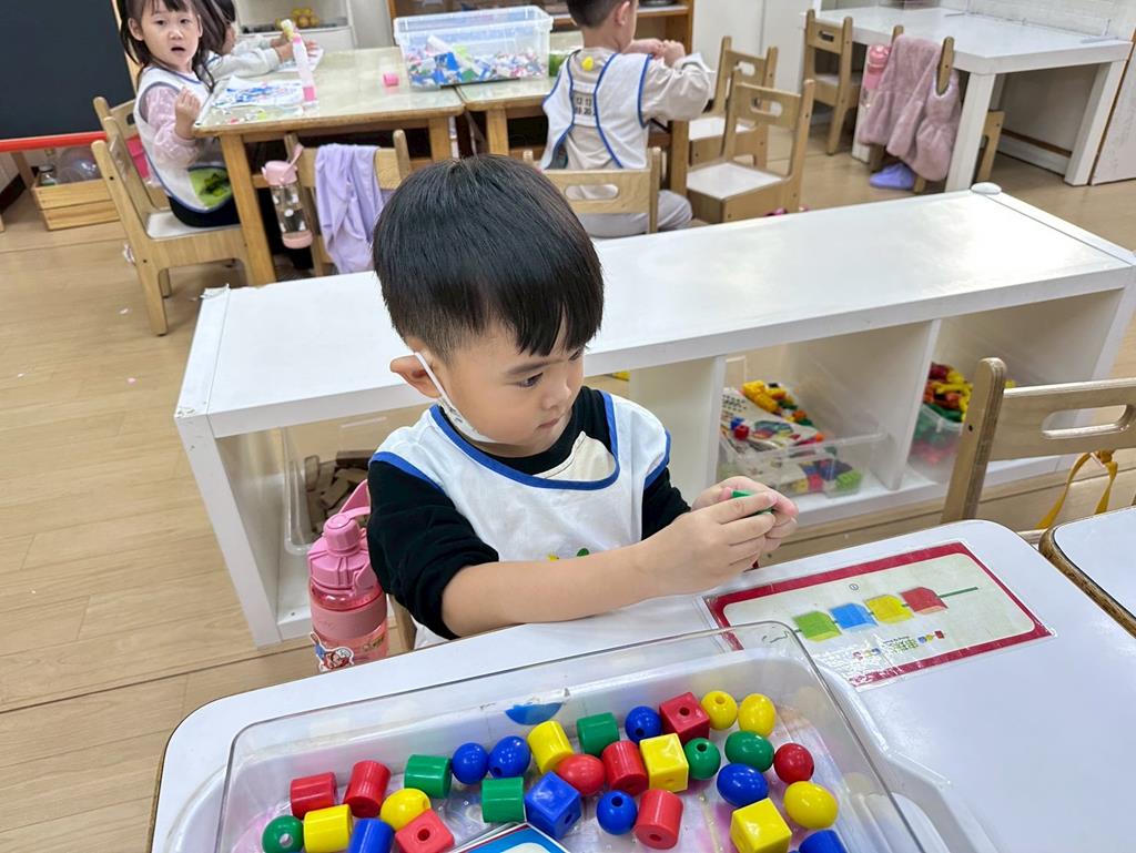 相簿名稱: 組合建構區-六形六色、大雪花片組合、方塊組合;數學區-串珠組合、釣魚顏色配對、六色球