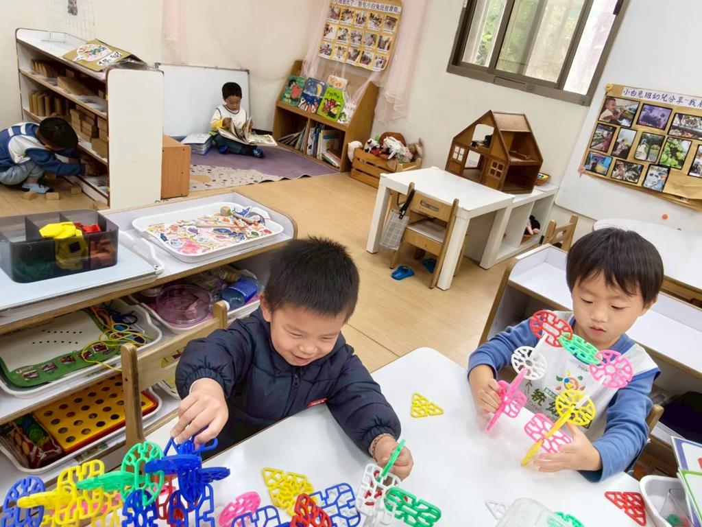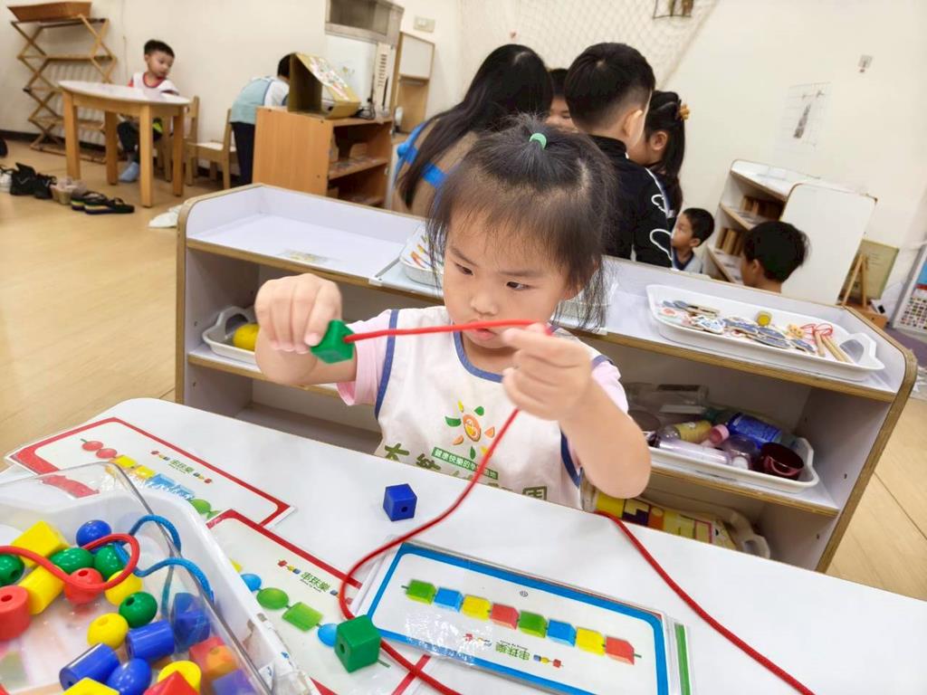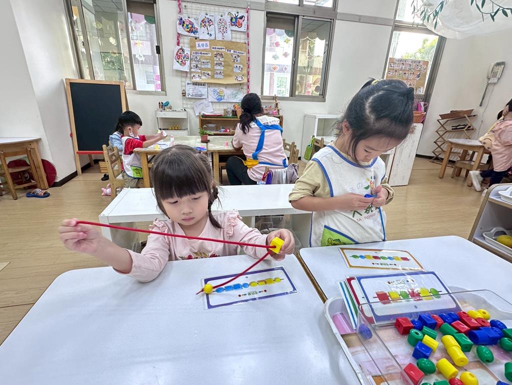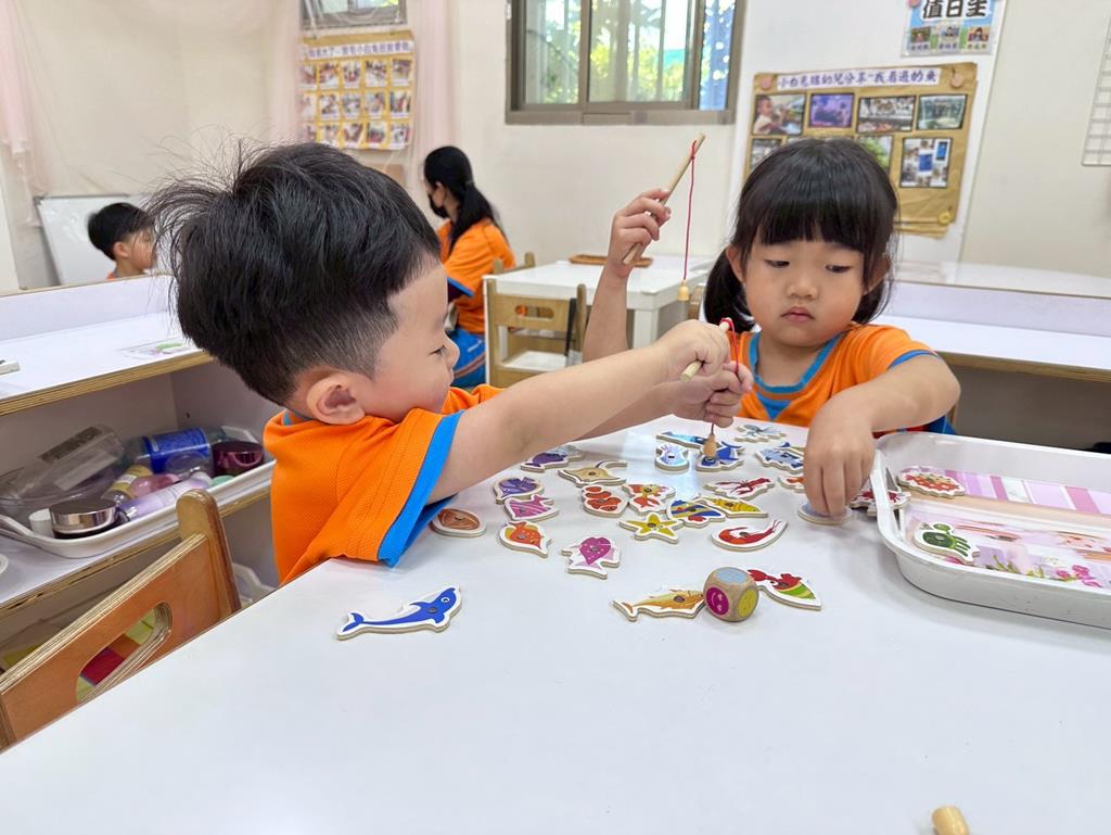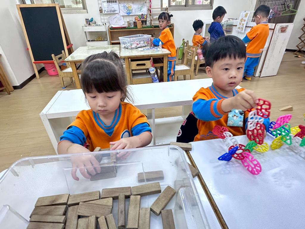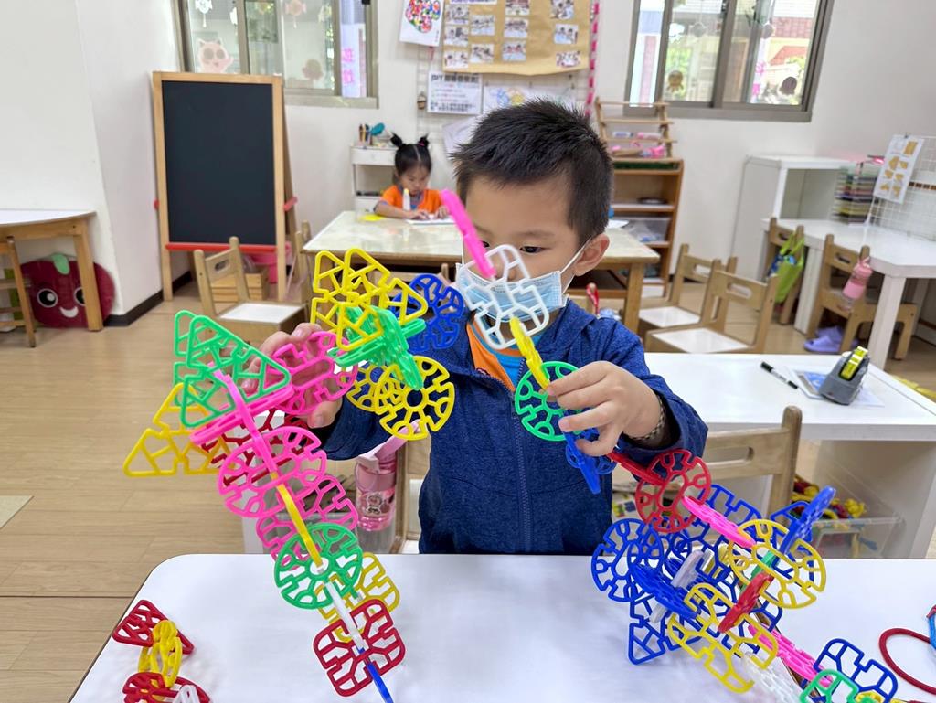 相簿名稱: 組合建構區-六形六色、大雪花片組合、方塊組合;數學區-串珠組合、釣魚顏色配對、六色球