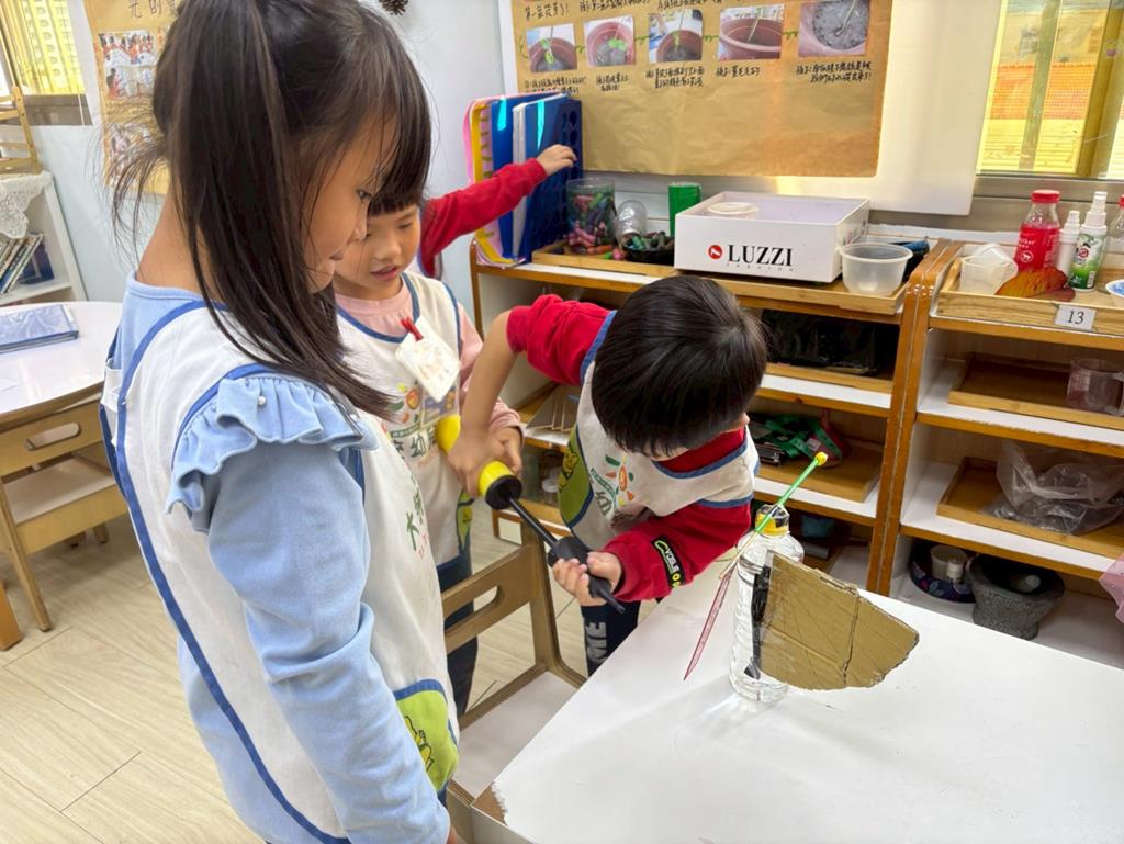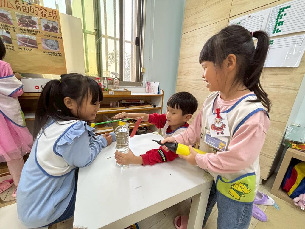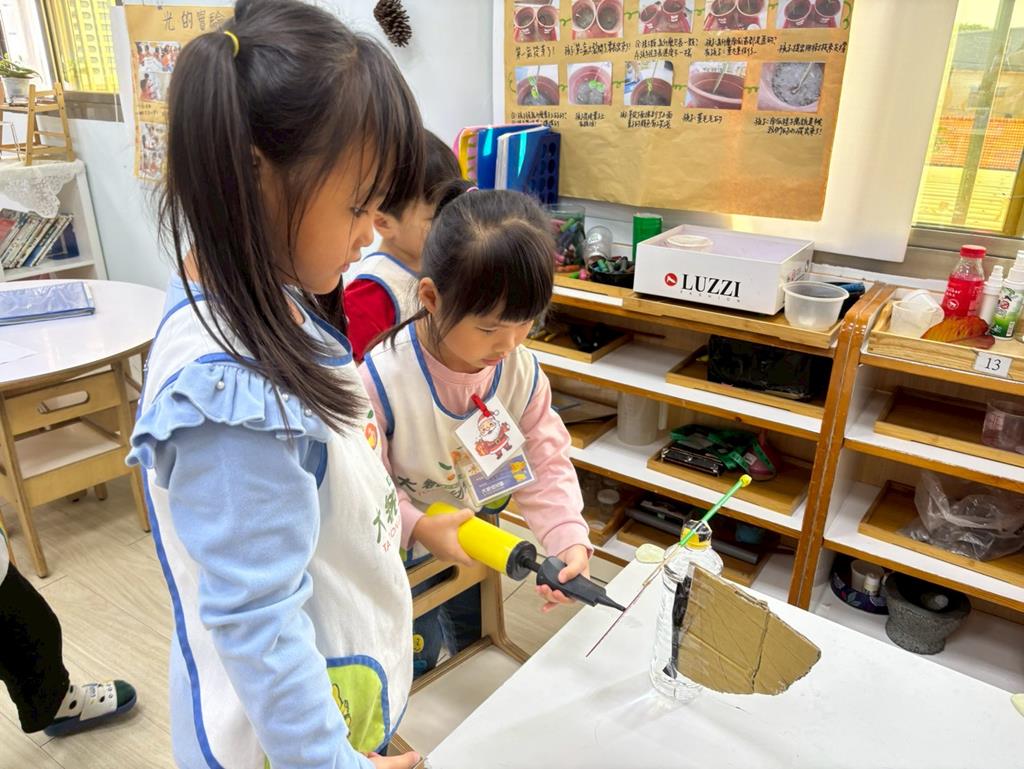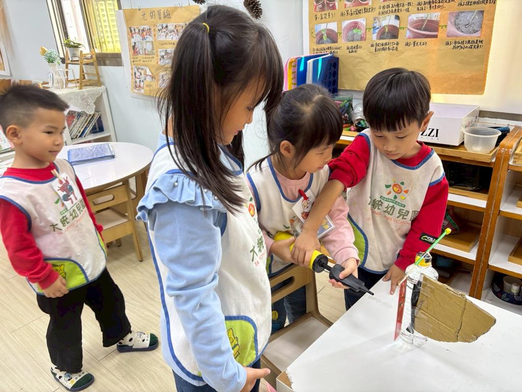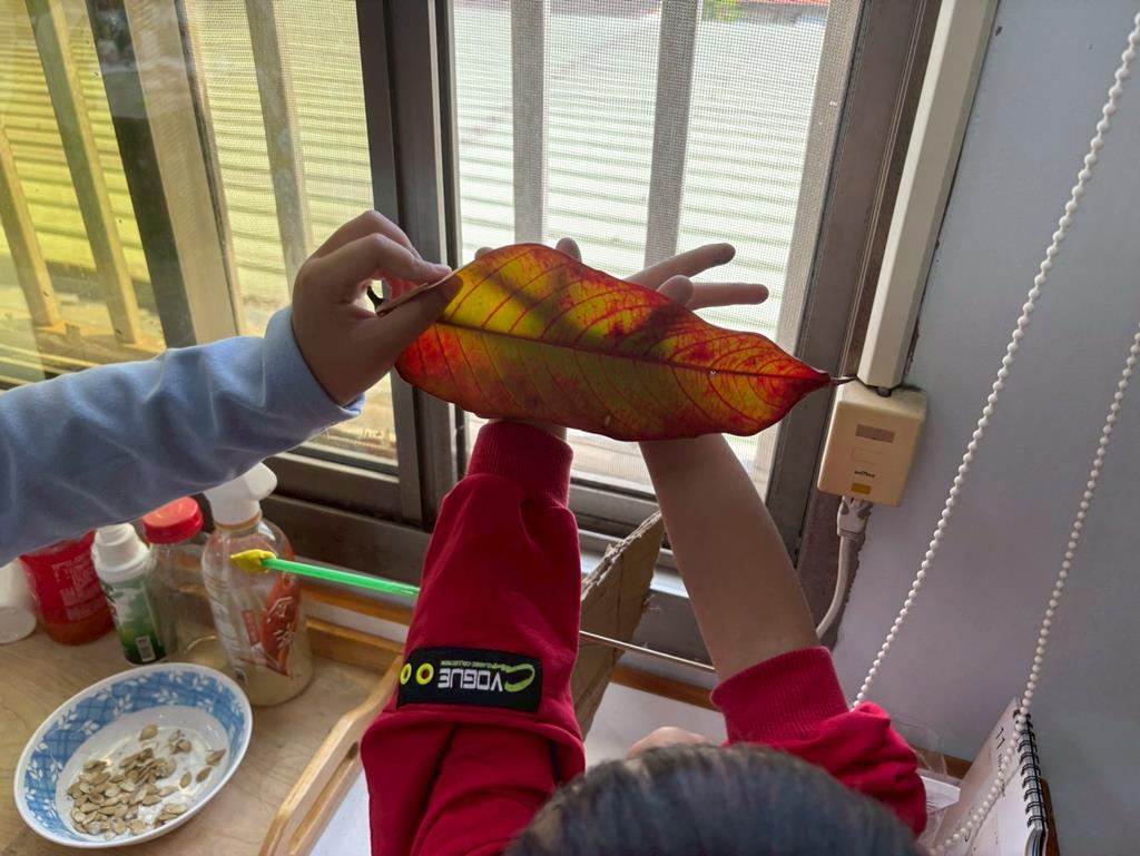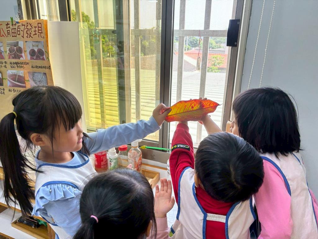 相簿名稱: 科學實驗-探究風速&觀察樹葉顏色及光影&探究教室內有什麼是能透光的物品&三角鏡也能產生光