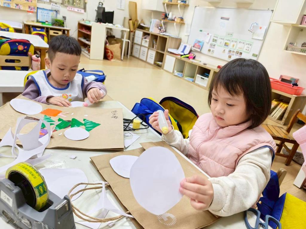 相簿名稱: 美勞區-聖誕袋創作、捏麵粉糰、方向盤製作