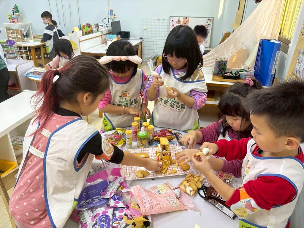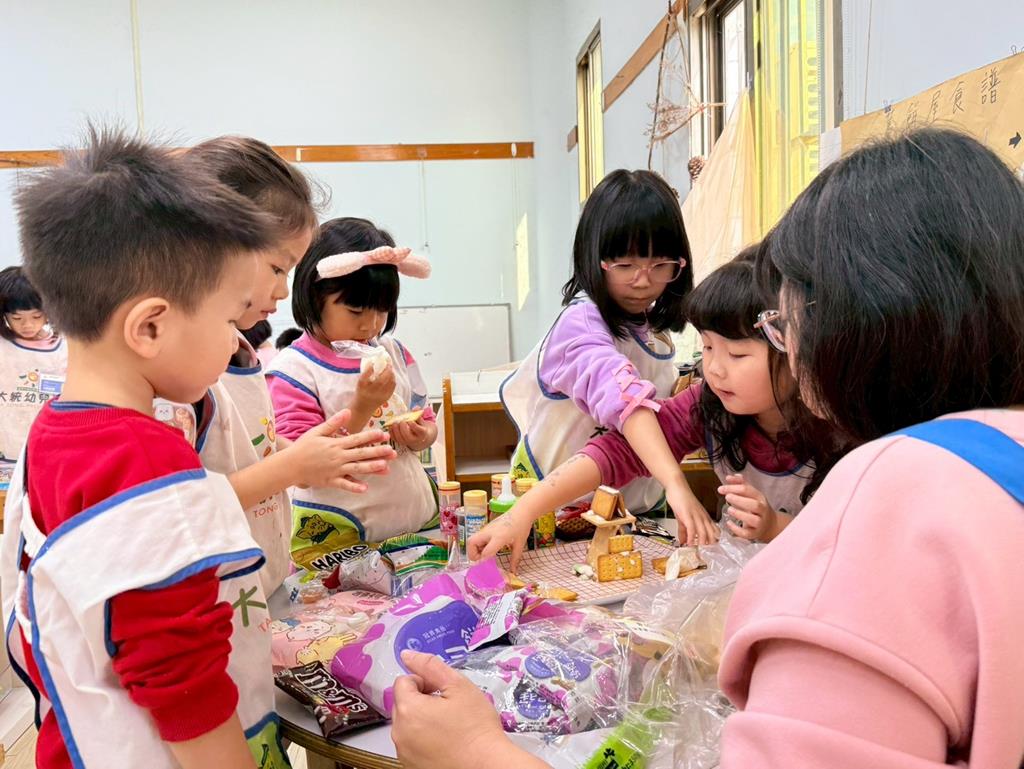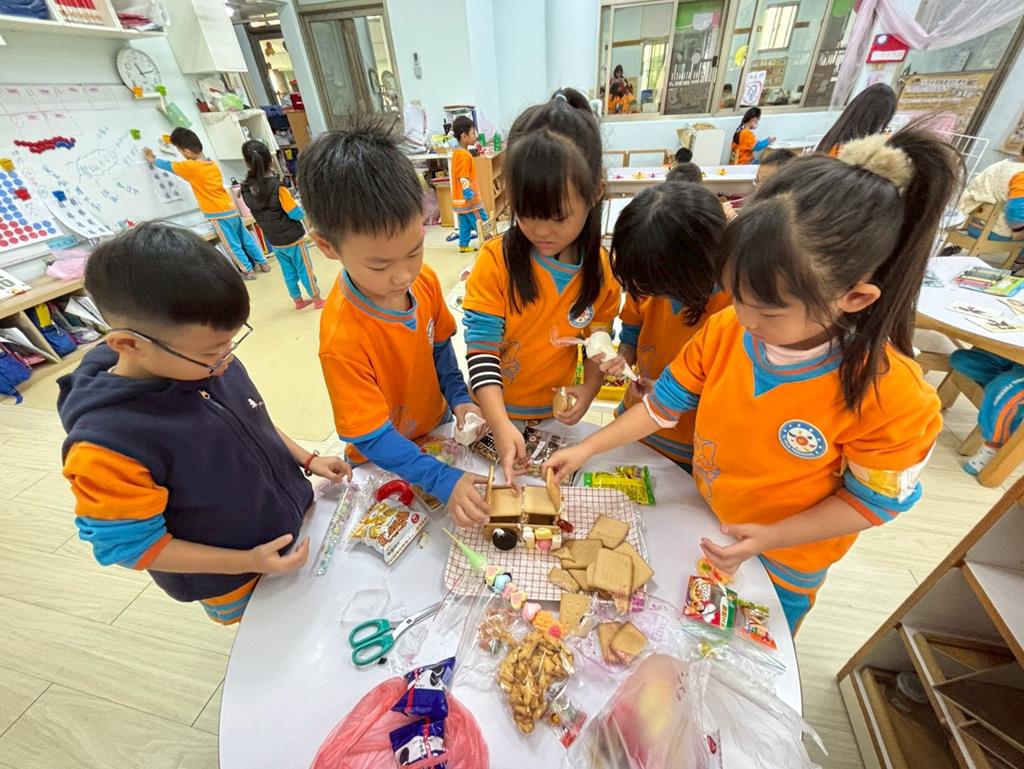 相簿名稱: 小組討論薑餅屋造型&用糖果餅乾及糖霜來製作好吃的薑餅屋囉~