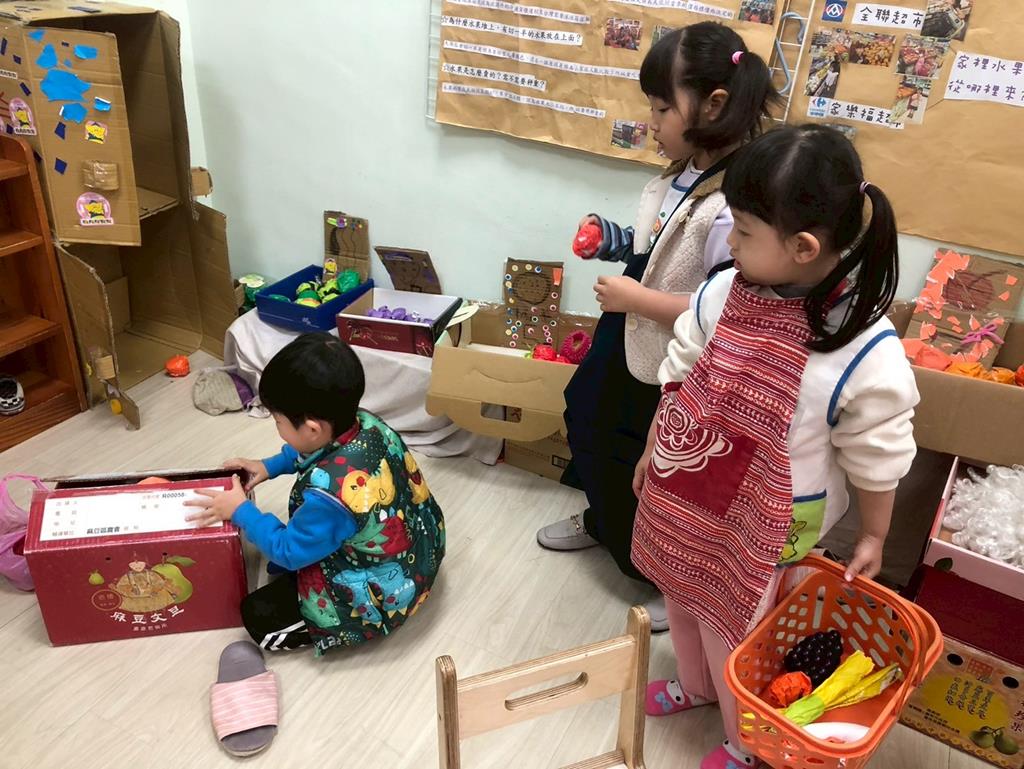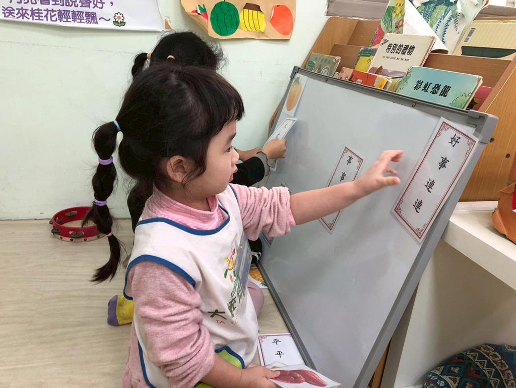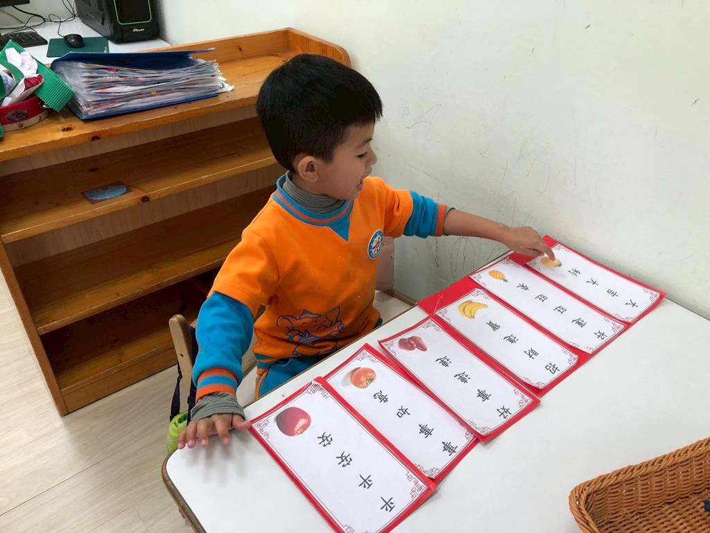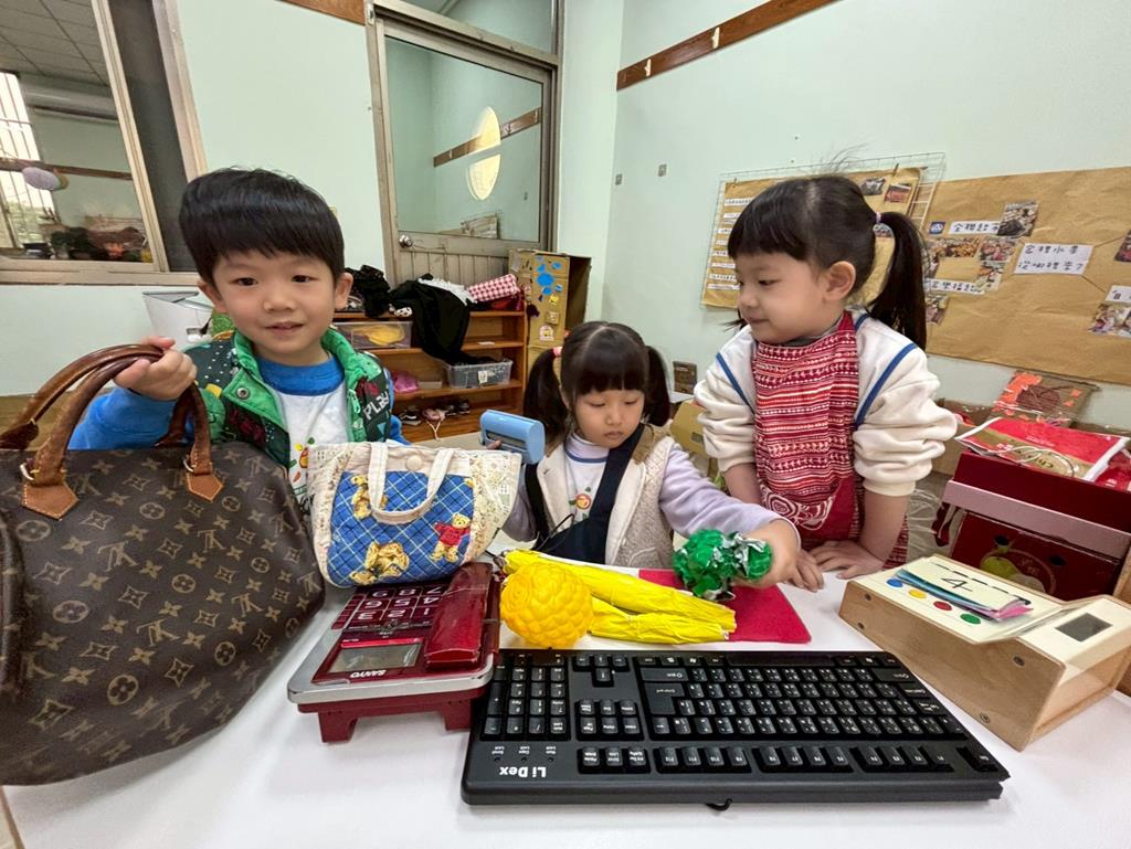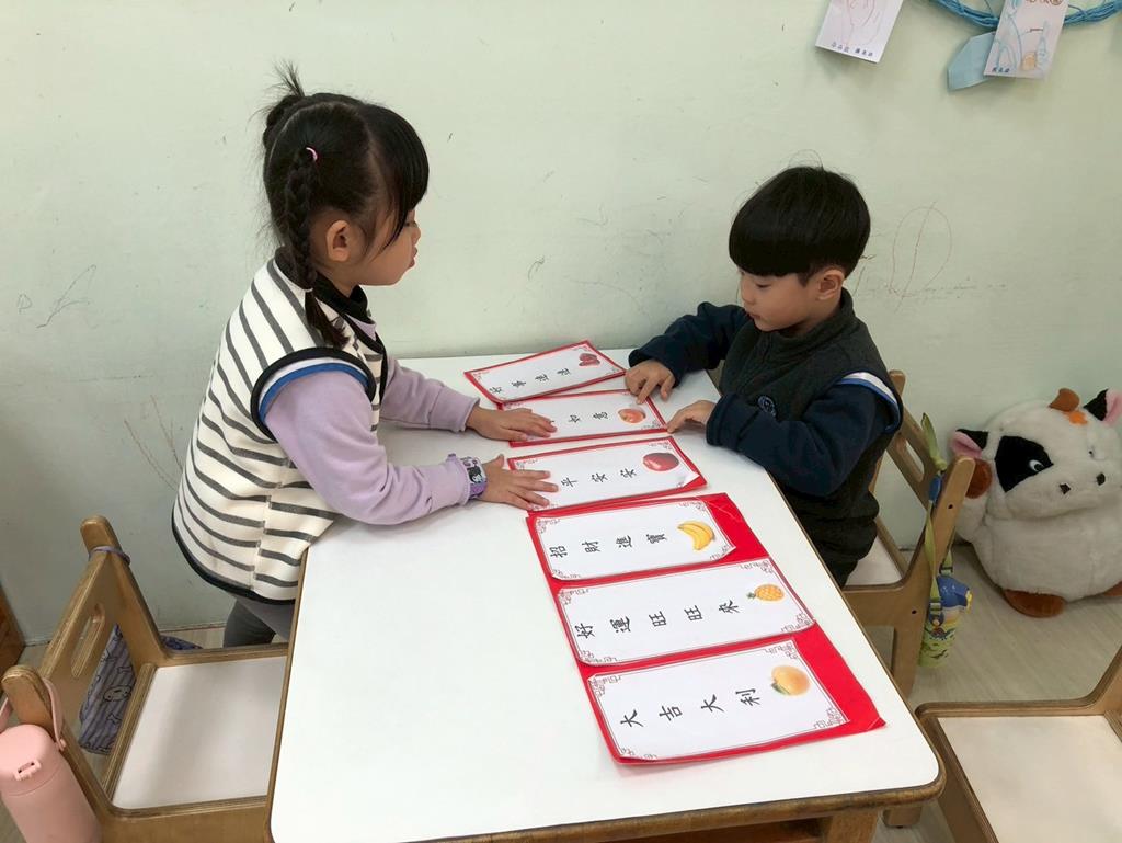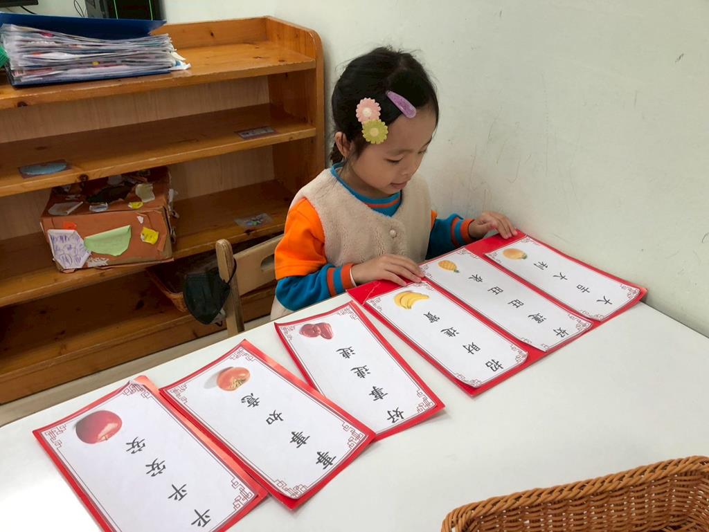 相簿名稱: 扮演區小兔兔水果店買賣遊戲;語文區閱讀故事書、水果吉祥話配對