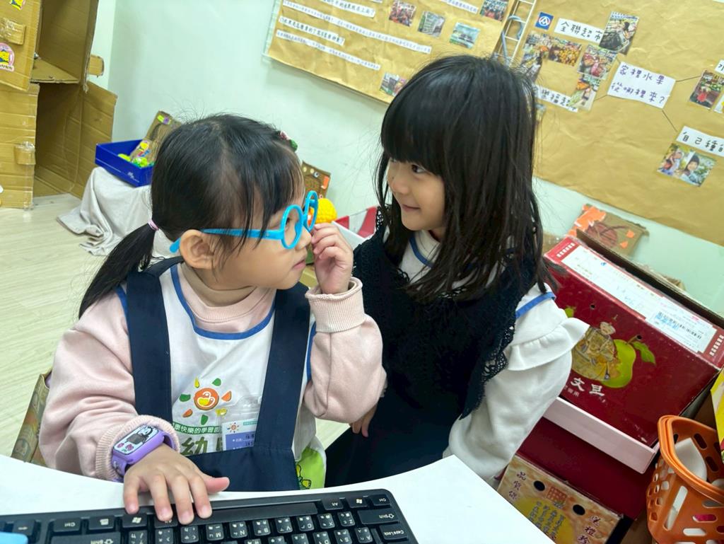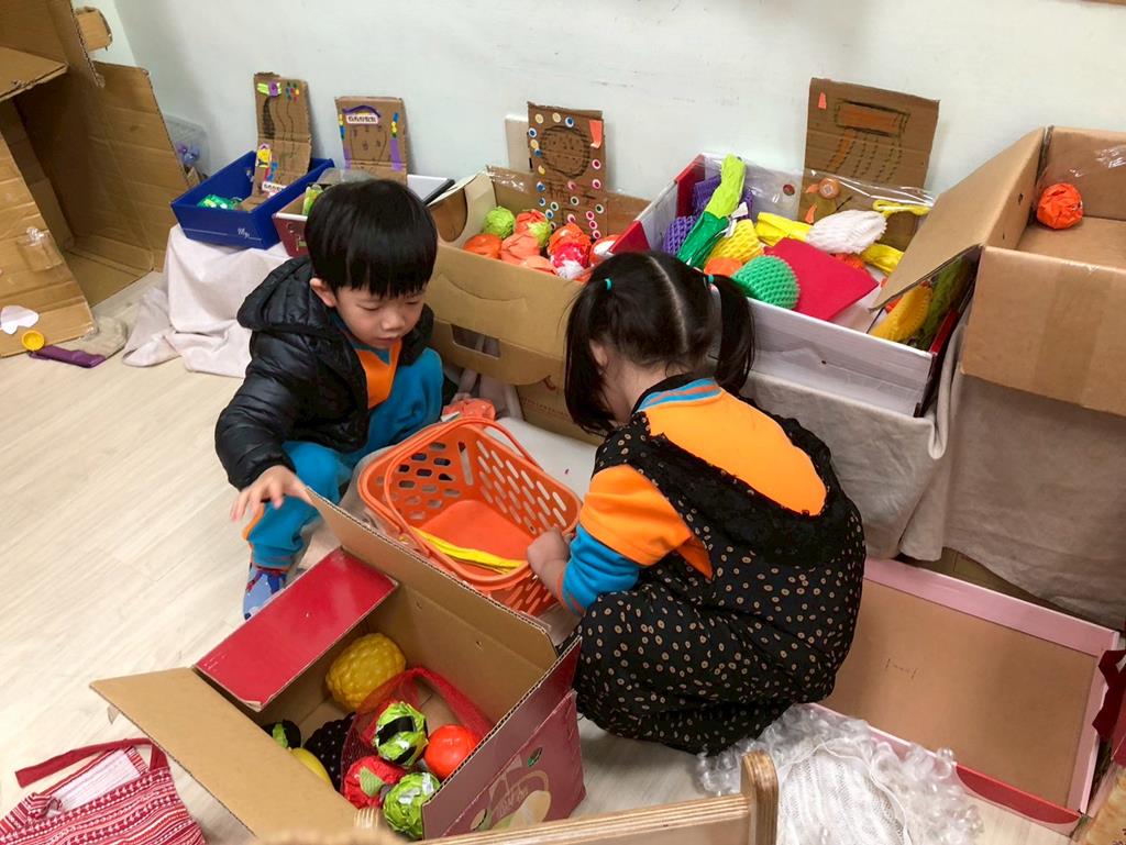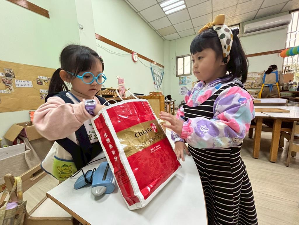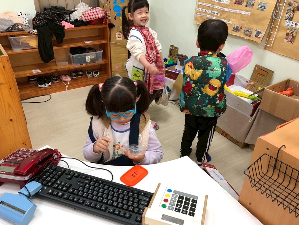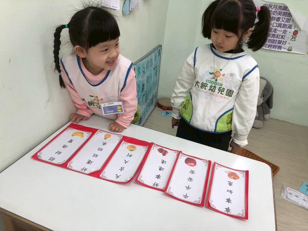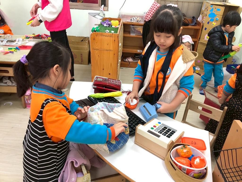 相簿名稱: 扮演區小兔兔水果店買賣遊戲;語文區閱讀故事書、水果吉祥話配對