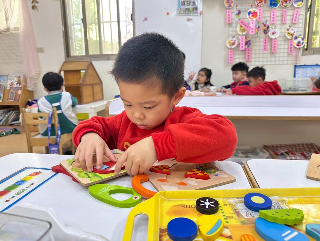 相簿名稱: 組合建構區-大雪花片創作、疊杯組合、小積木組合;數學區-形狀、顏色配對、拼圖