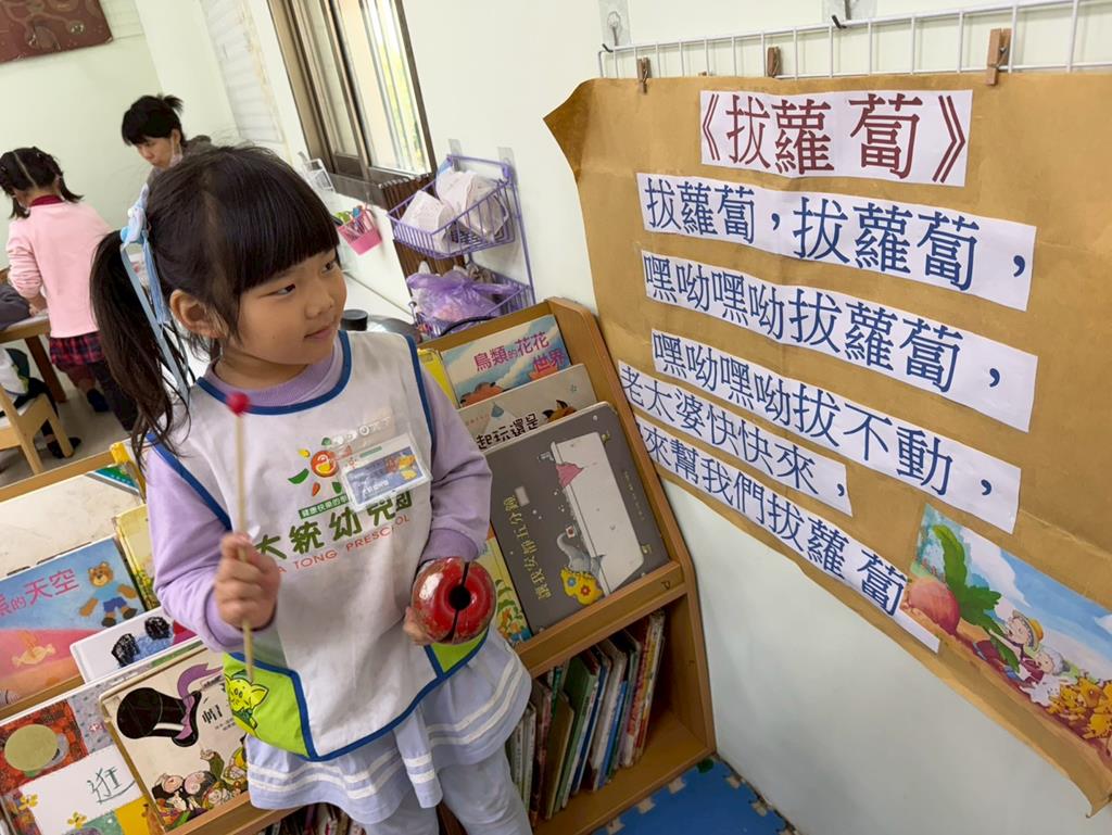 相簿名稱: 扮演區-到主人家拜年時我會準備年菜給客人吃;語文區-我會說故事、拔蘿蔔兒謠