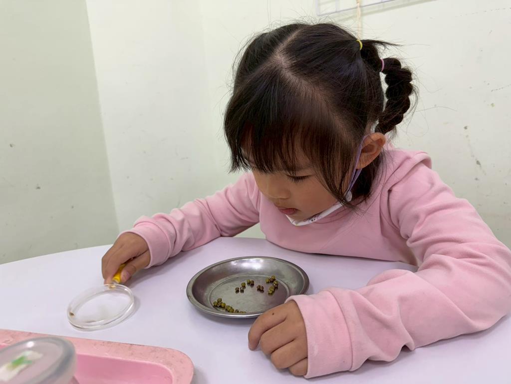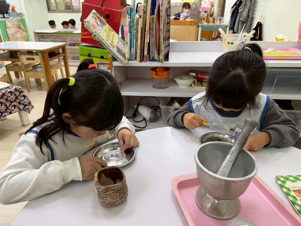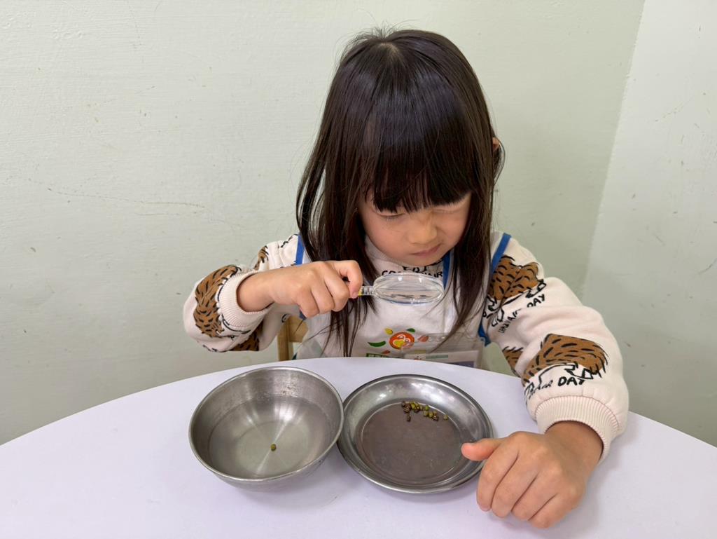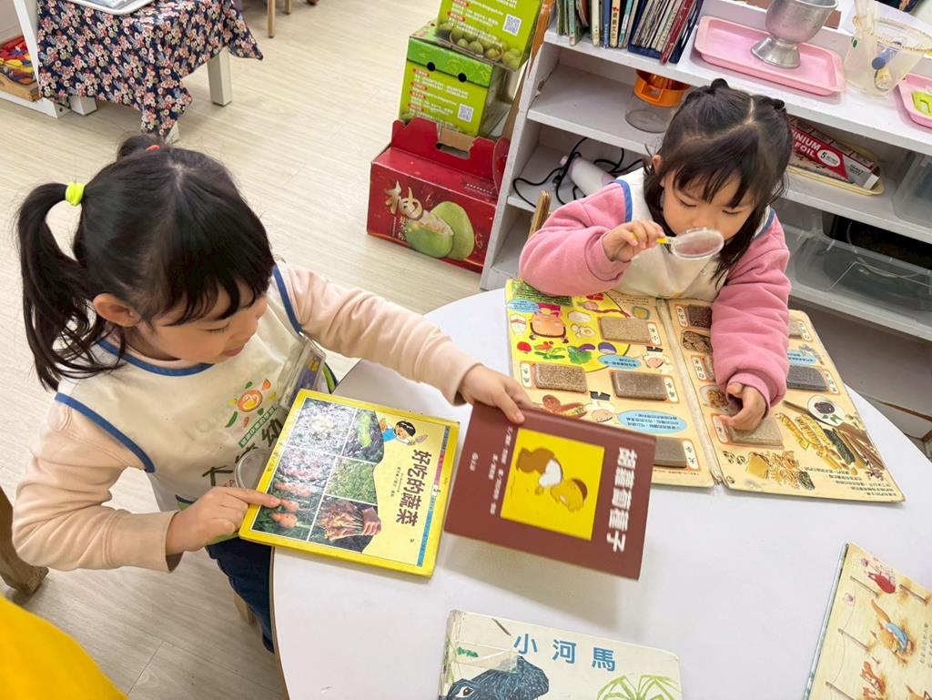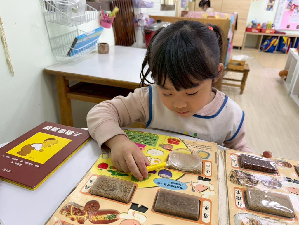 相簿名稱: 科學區-閱讀蔬菜的相關書籍,研磨種子發現其差異性