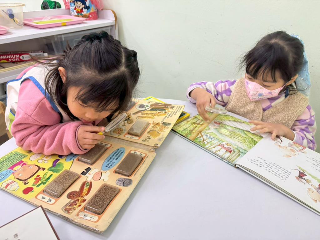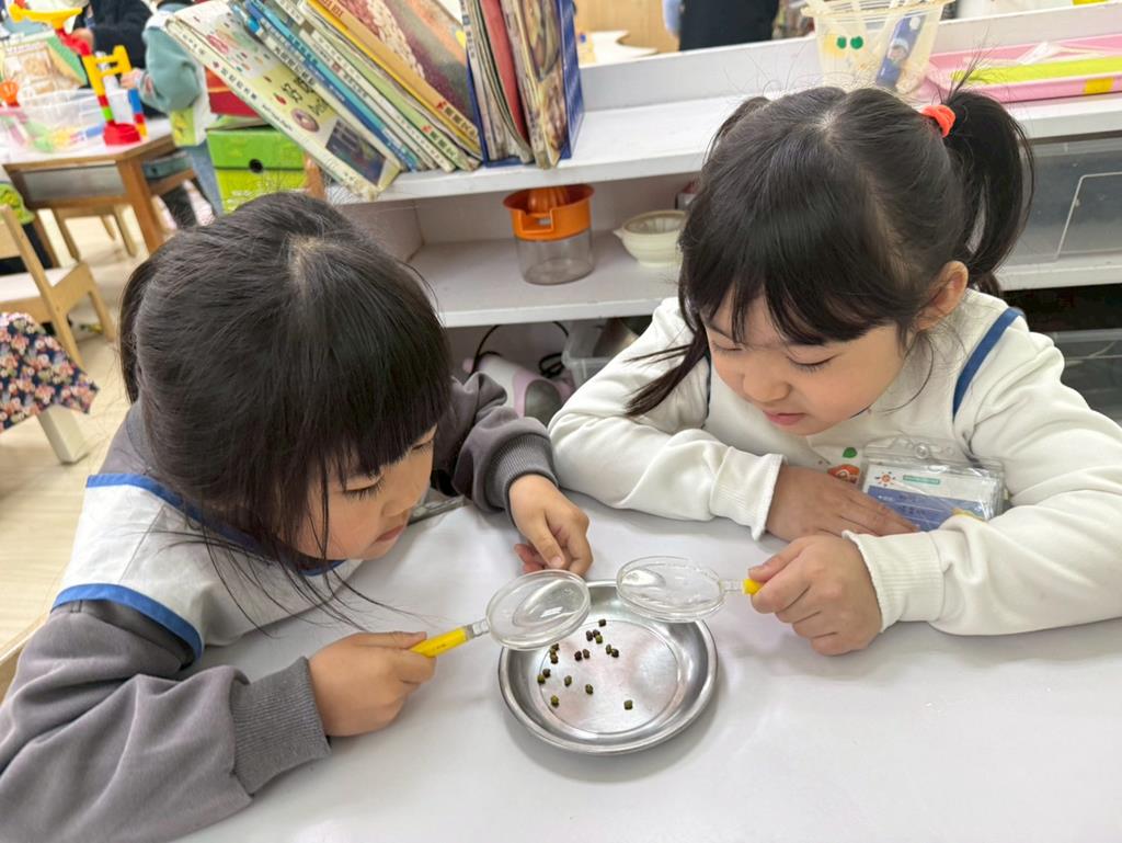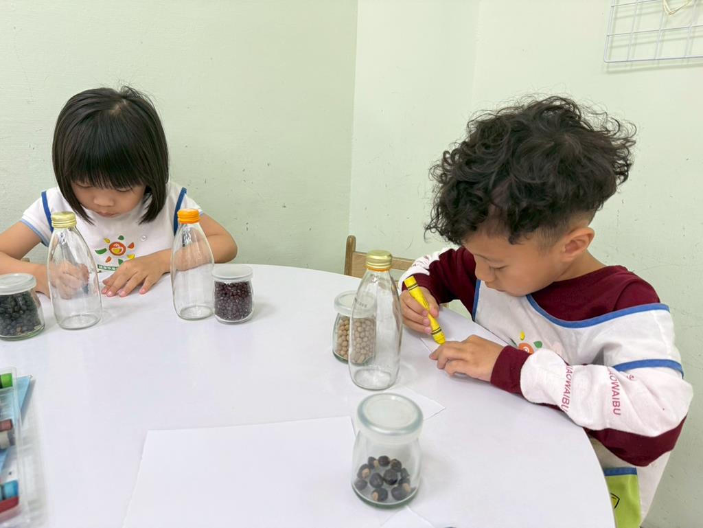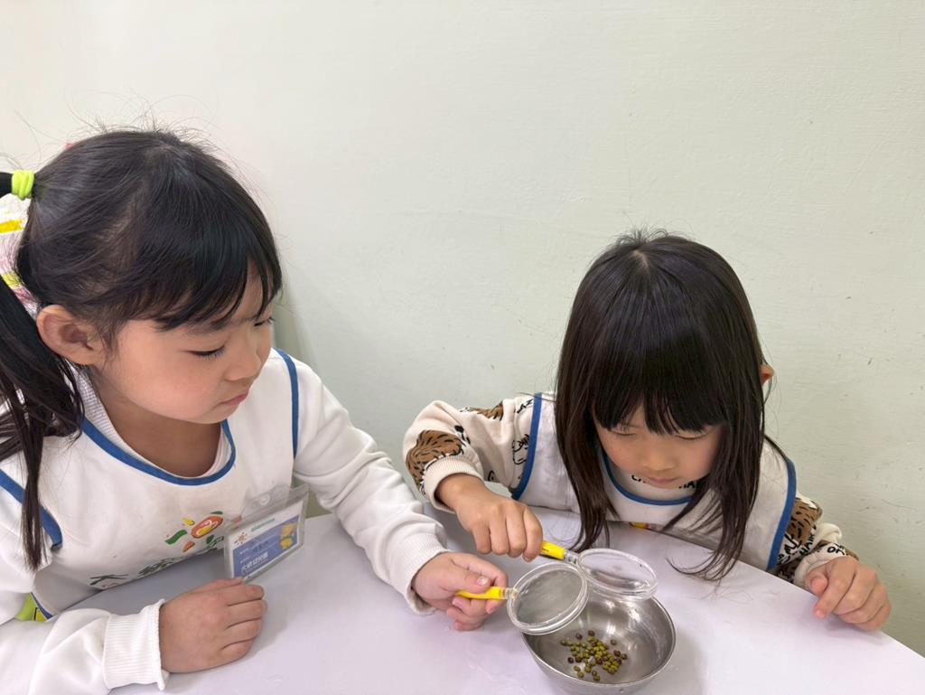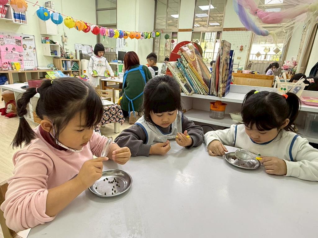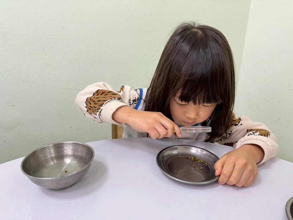 相簿名稱: 科學區-閱讀蔬菜的相關書籍,研磨種子發現其差異性