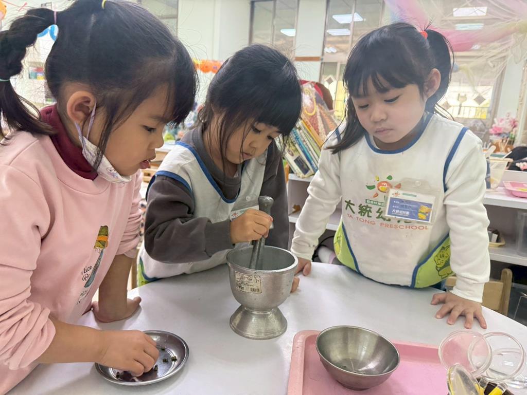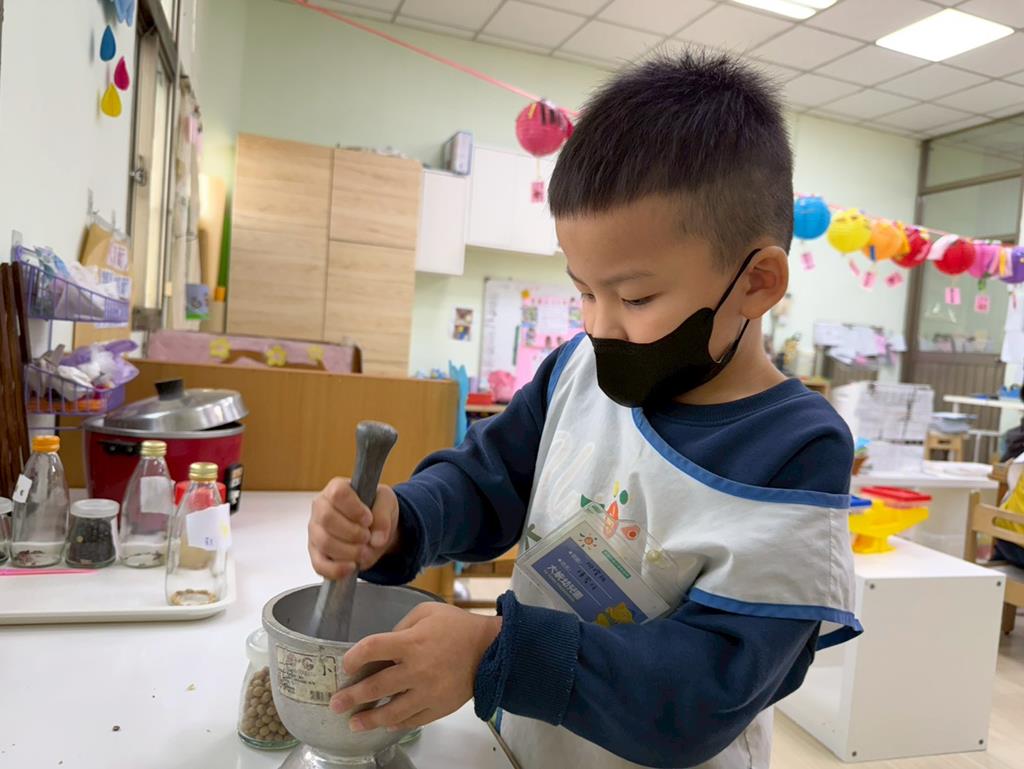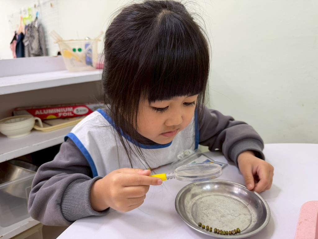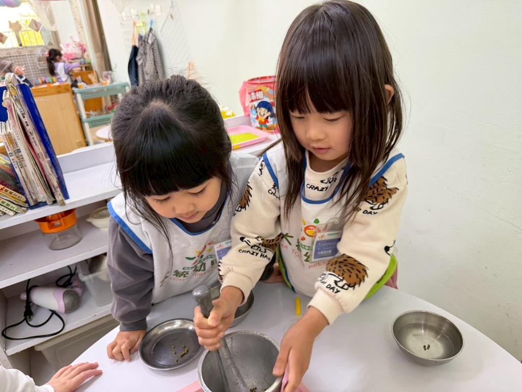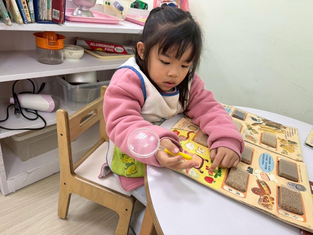 相簿名稱: 科學區-閱讀蔬菜的相關書籍,研磨種子發現其差異性
