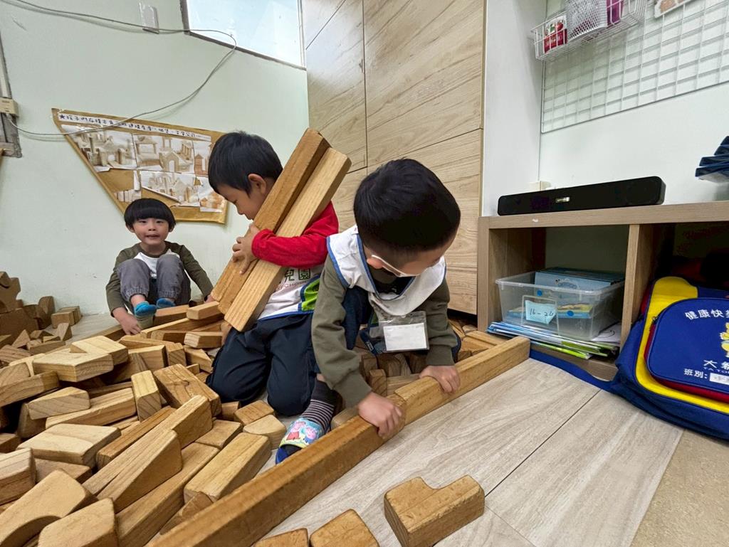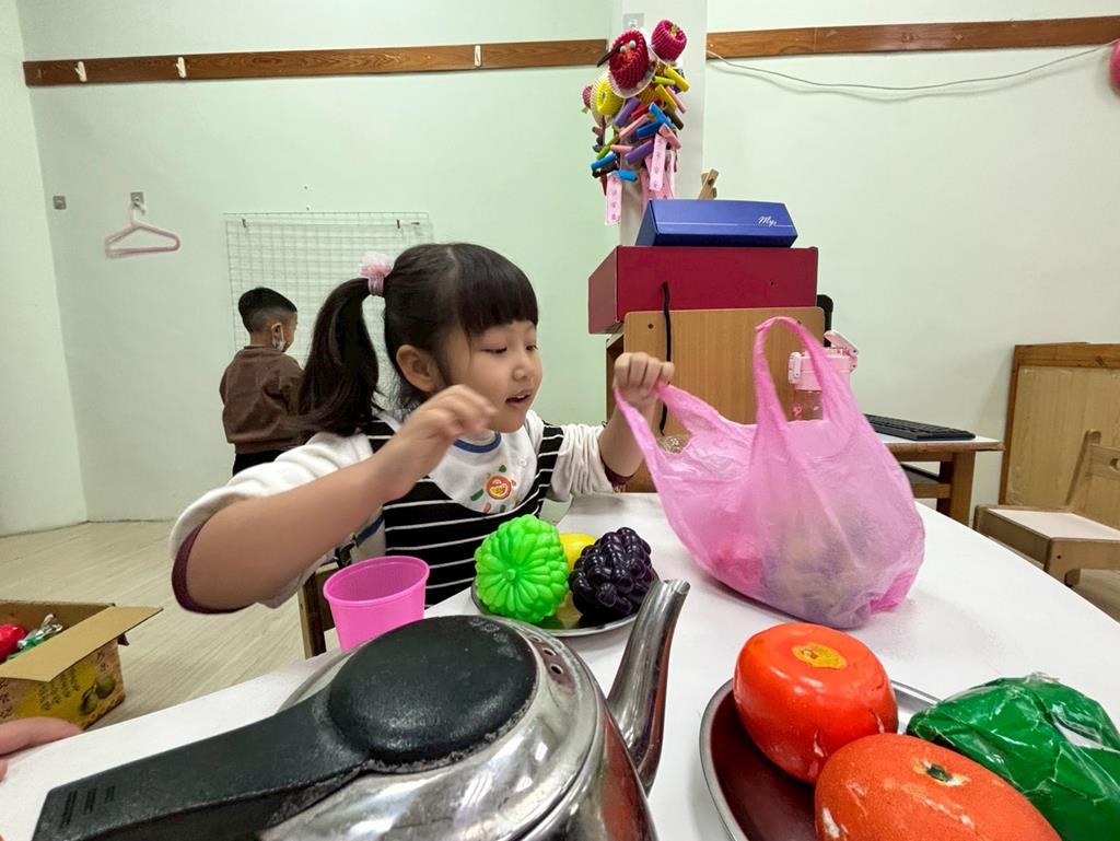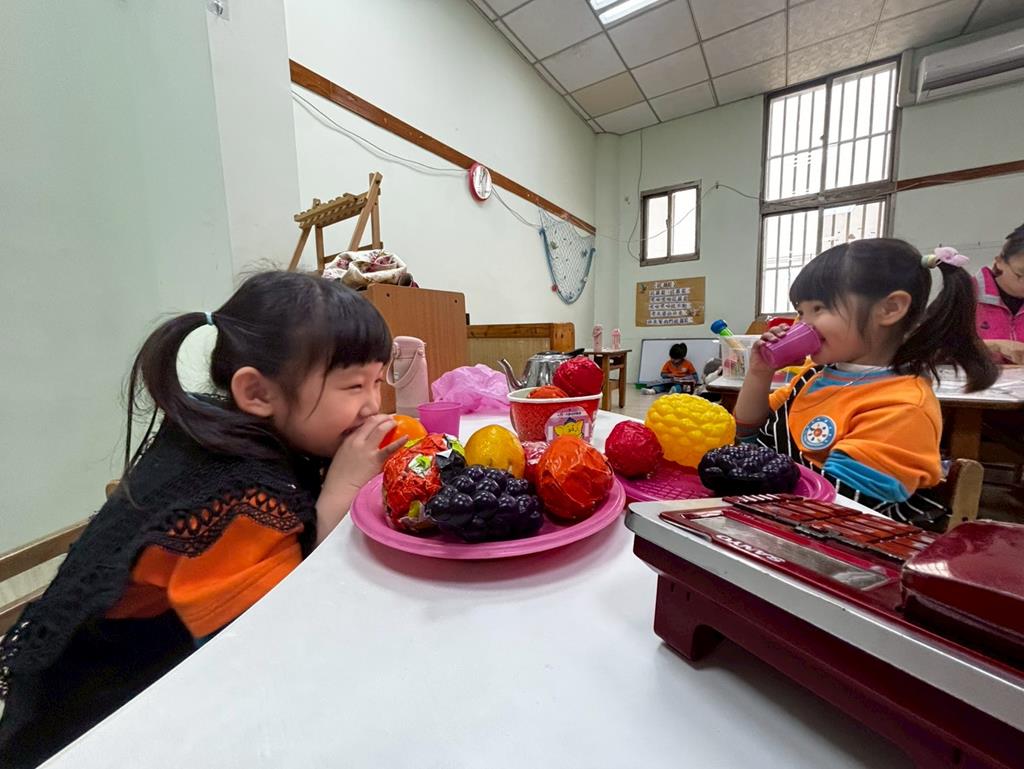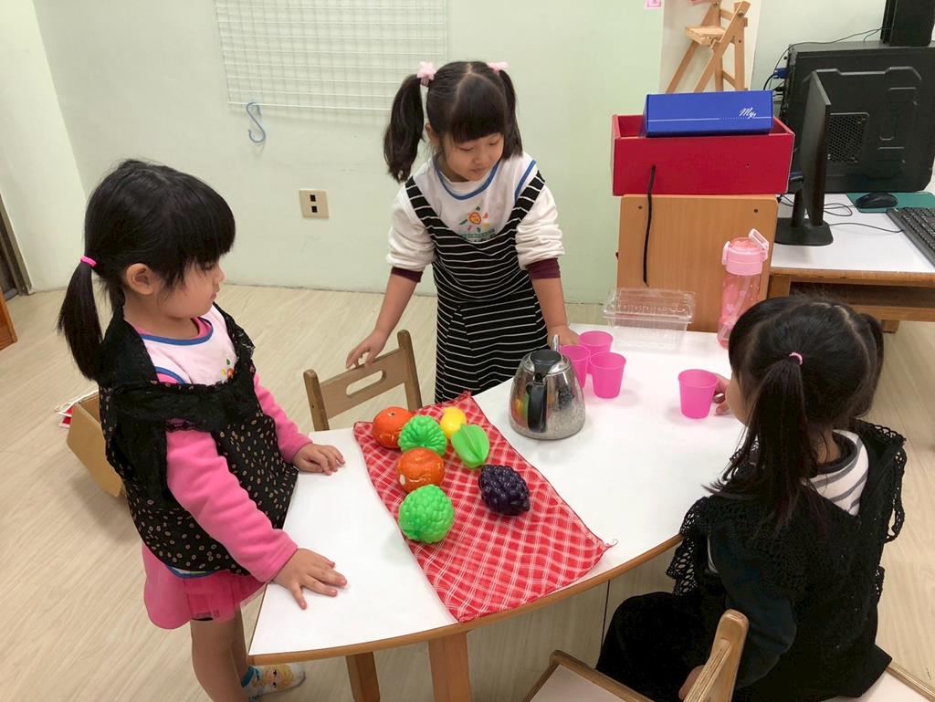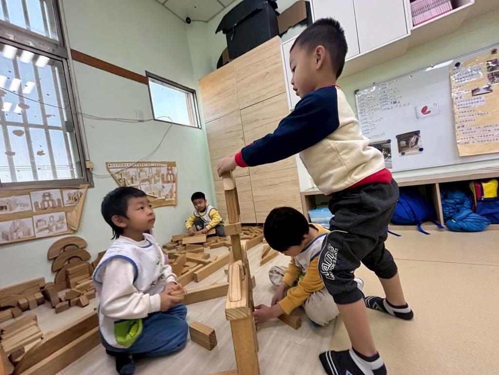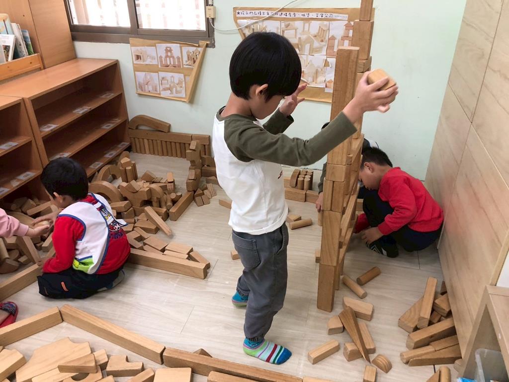 相簿名稱: 扮演區邀請客人來家裡吃水果過年、佈置貼春聯;積木區建構過年相關廟宇