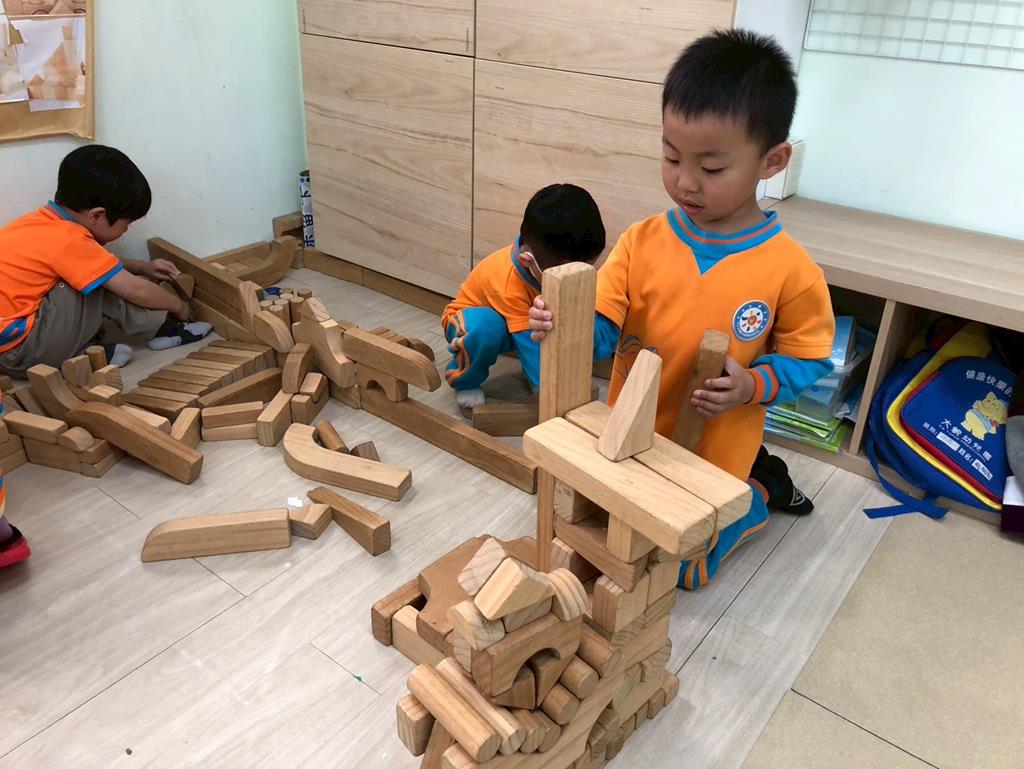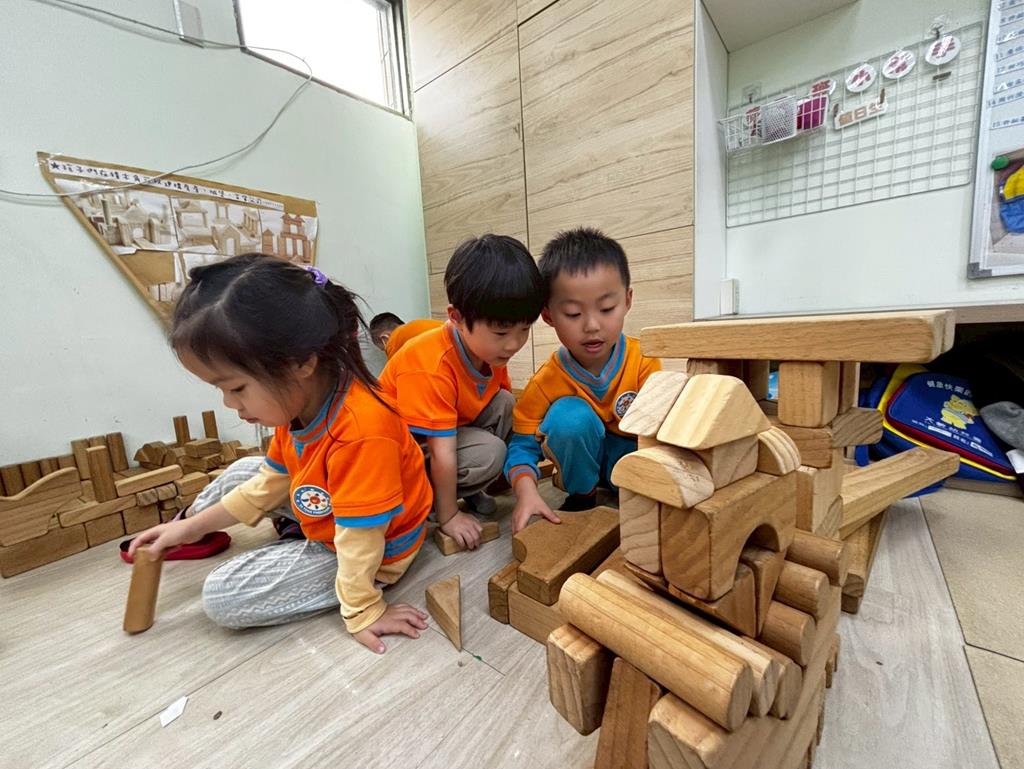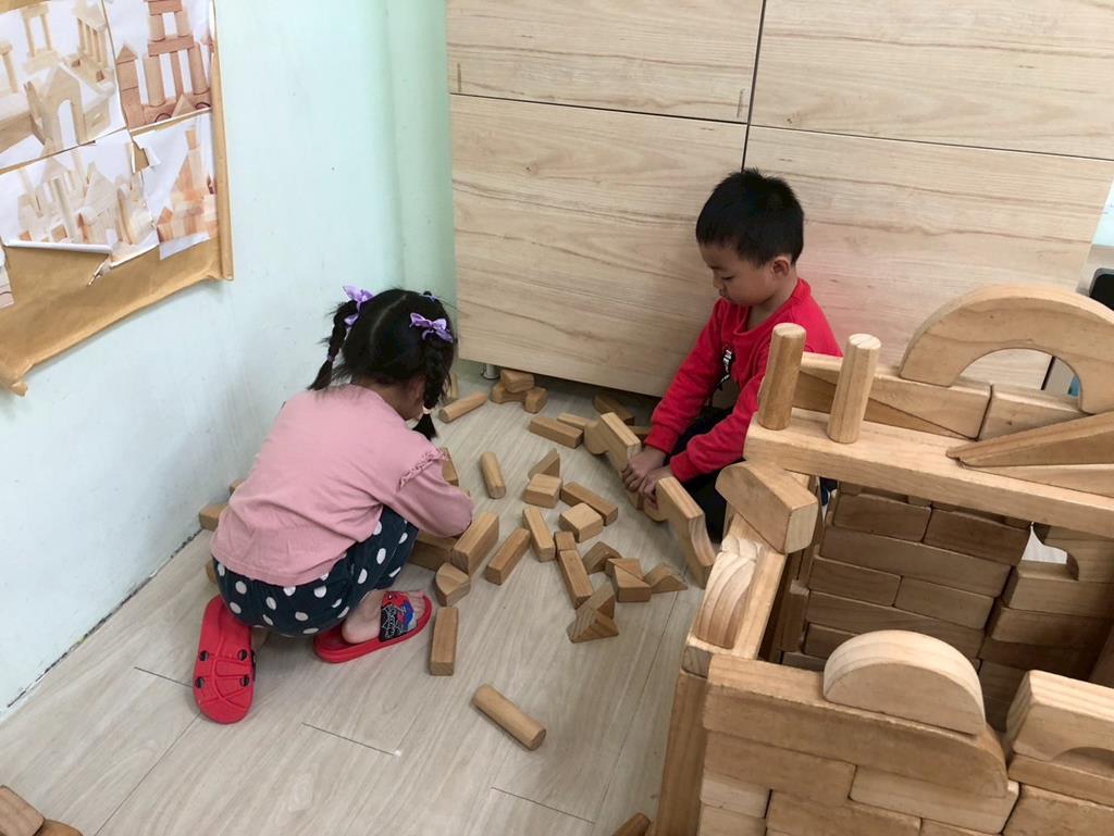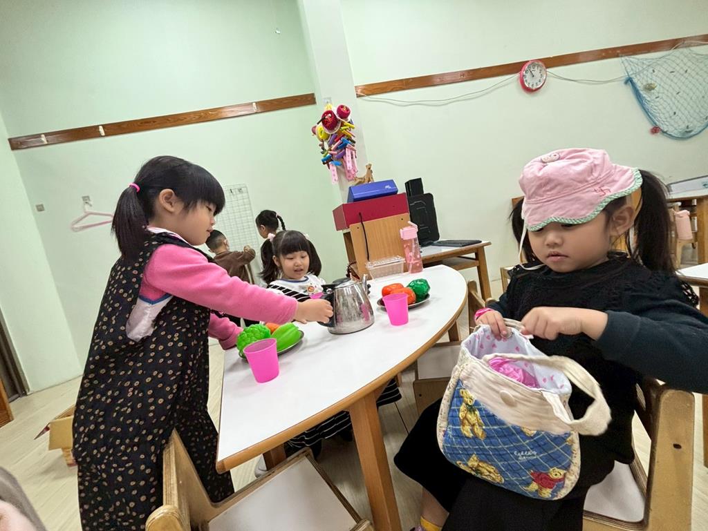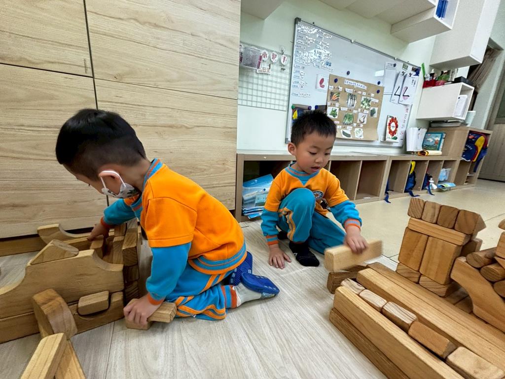 相簿名稱: 扮演區邀請客人來家裡吃水果過年、佈置貼春聯;積木區建構過年相關廟宇