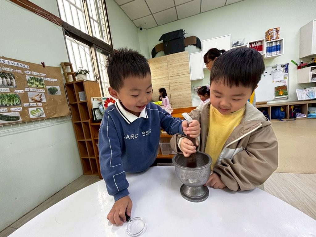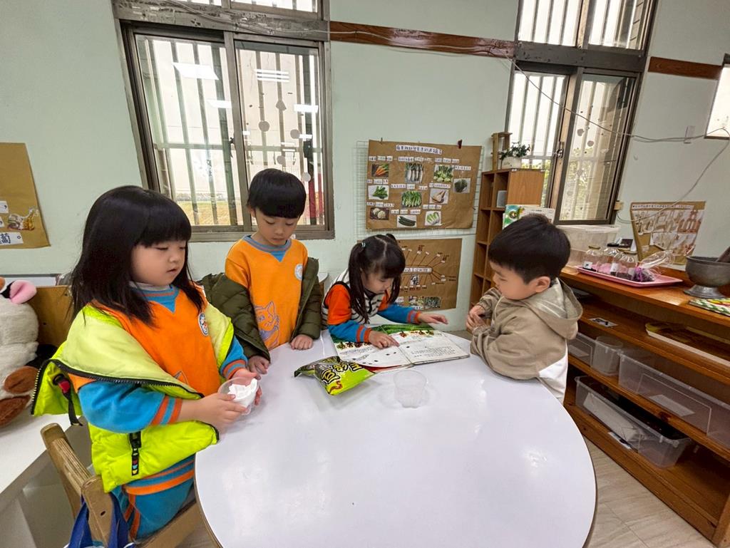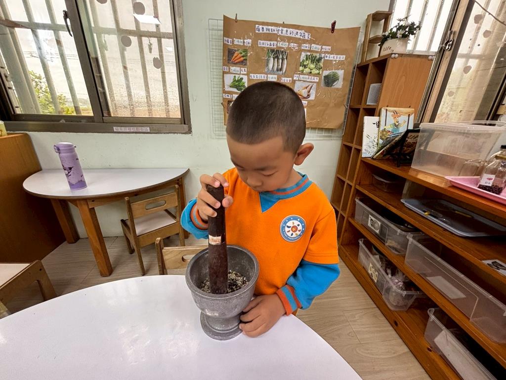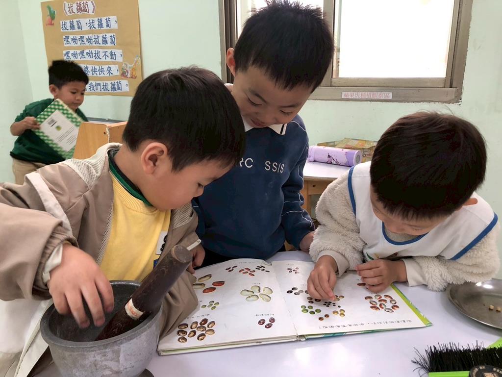 相簿名稱: 科學區閱讀蔬菜繪本、觀察不同的豆子、研磨豆子實驗、種綠豆