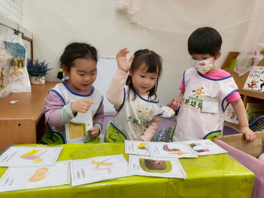 相簿名稱: 語文區-仿畫100層樓的家、偶的扮演、畫社區景象、符號卡片