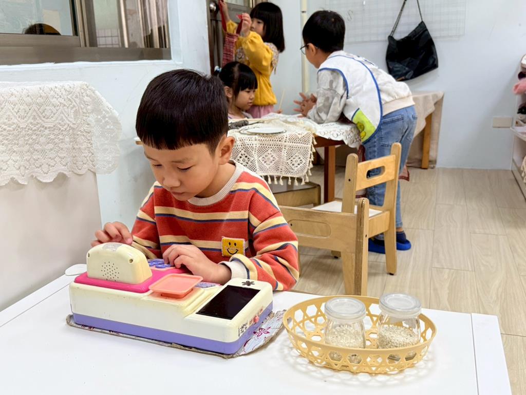 相簿名稱: 扮演家人買賣米遊戲;製用紙板作錢幣