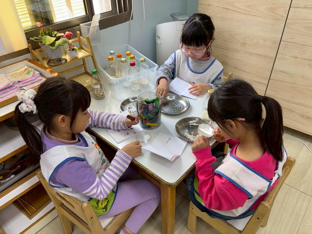 相簿名稱: 科學區-放大鏡觀察不同種類的米並記錄