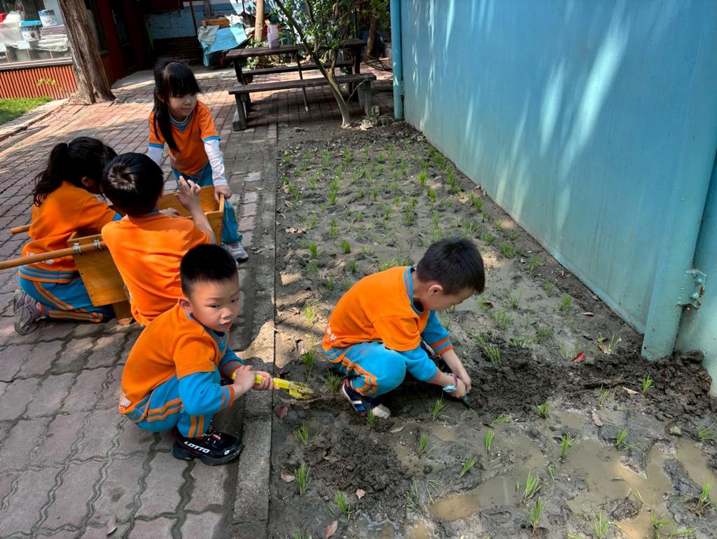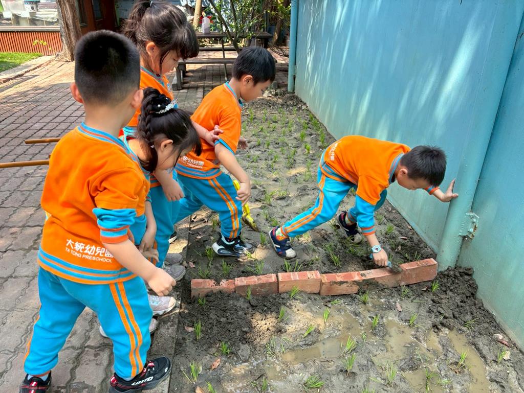 相簿名稱: 觀察茉莉花班的稻田&用磚塊幫稻田做區隔&撿拾落葉