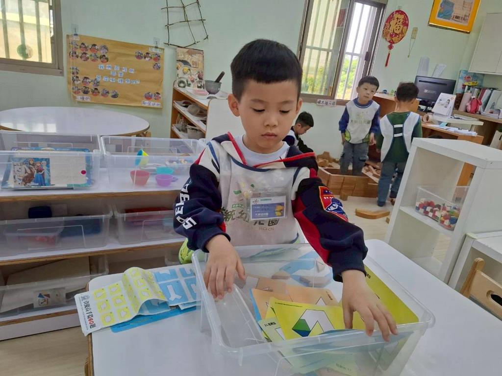 相簿名稱: 組合建構區-小積木組合;數學區-七巧板練習平衡遊戲