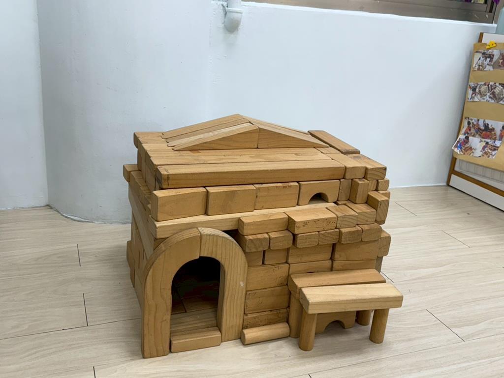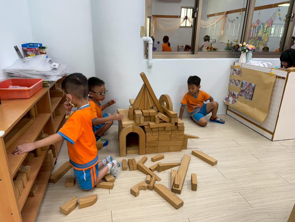 相簿名稱: 積木區-多次修正糖果屋屋頂並共同討論如何將屋頂變高變斜