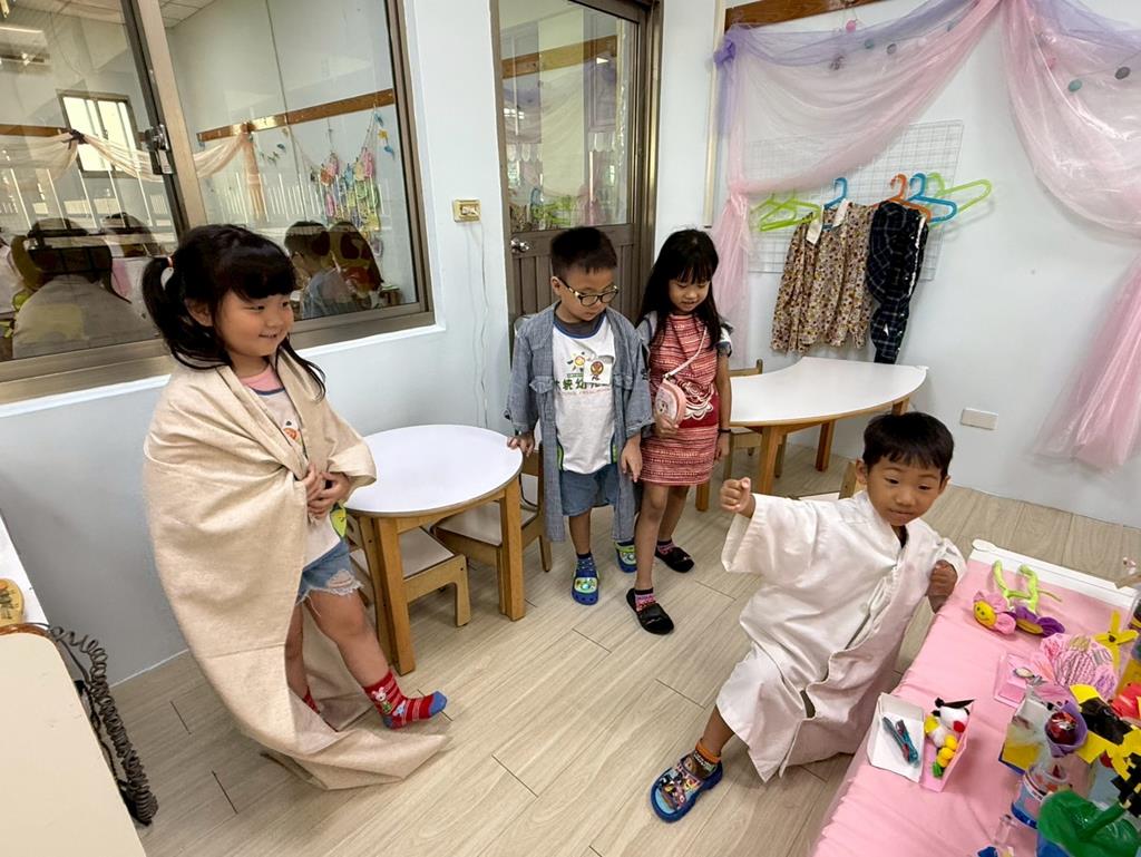 相簿名稱: 扮演區-裝扮成嫦娥、后羿、太陽、人民、王母等角色人物並利用肢體及口語演出嫦娥奔月故事