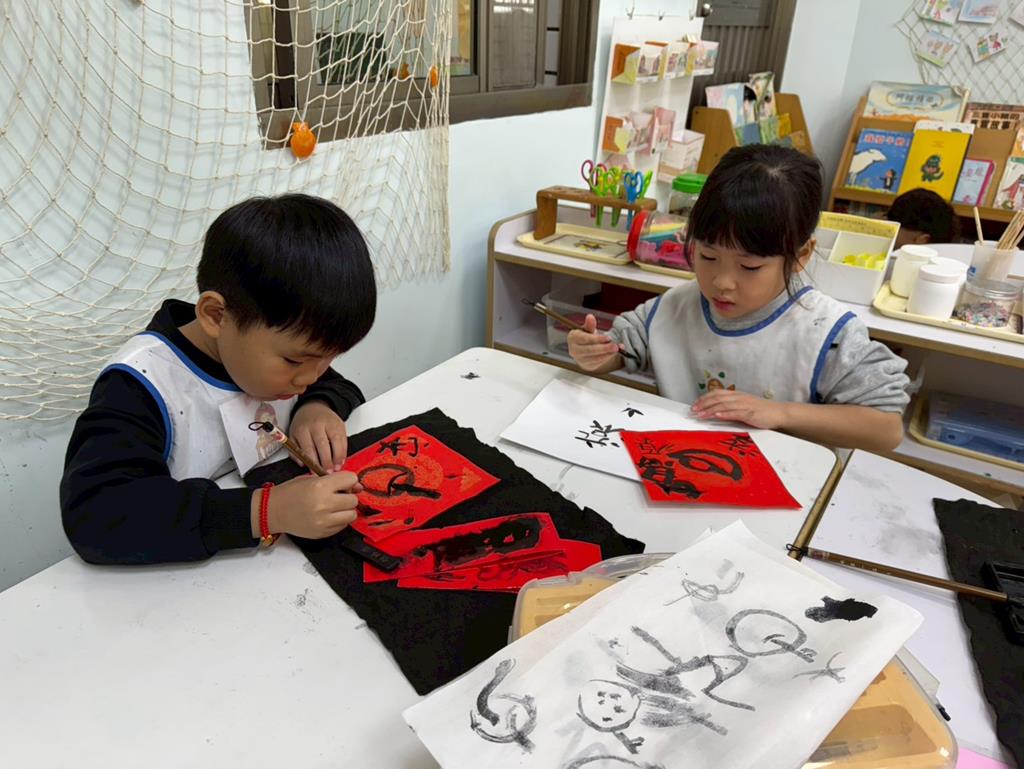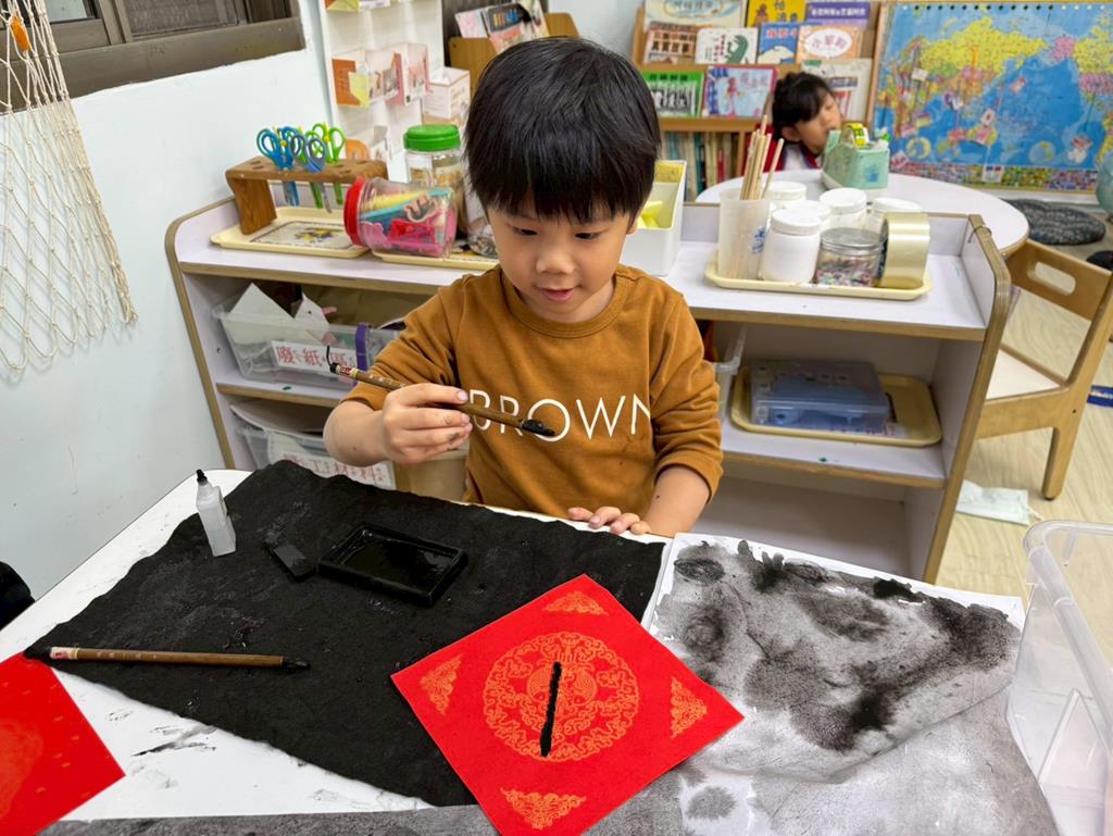 相簿名稱: 美勞-磨墨&我會寫春聯剪窗花