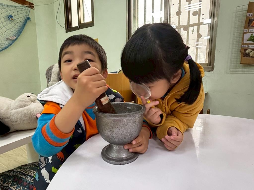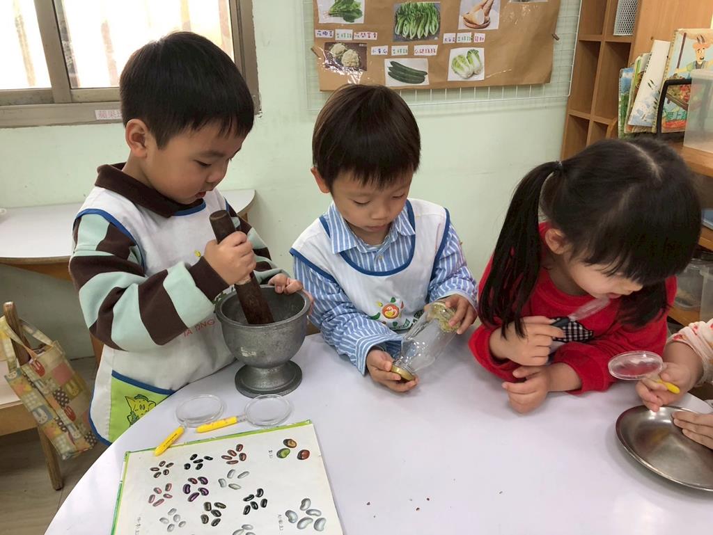 相簿名稱: 科學區閱讀蔬菜繪本、觀察不同的豆子、研磨豆子實驗、種綠豆