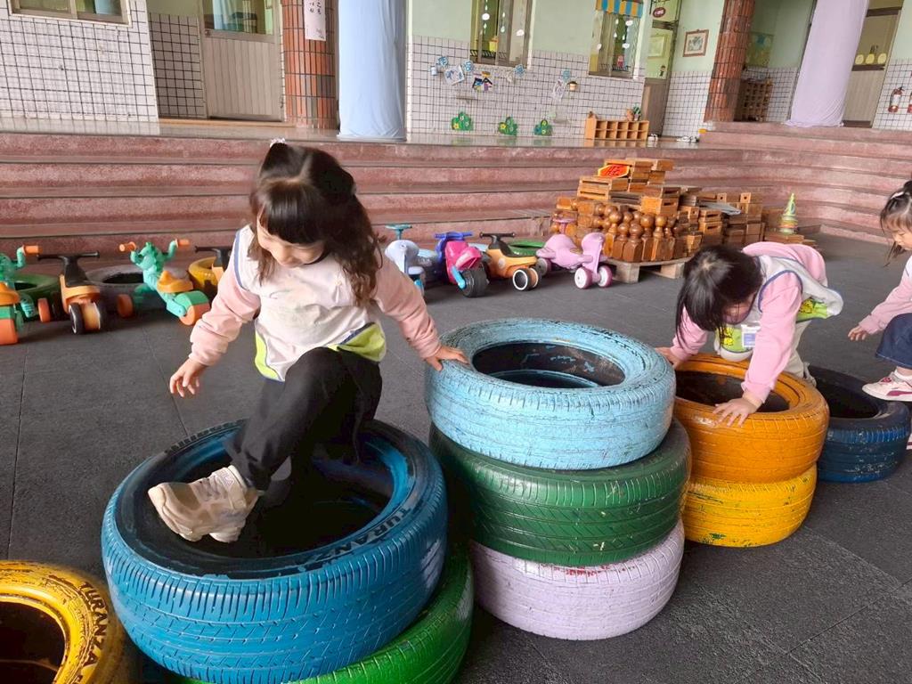 相簿名稱: 大肌肉活動-跳地墊,爬梯子走平衡木練習