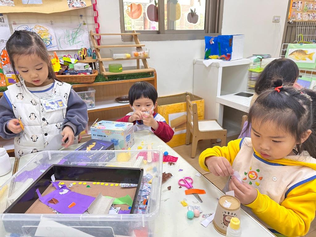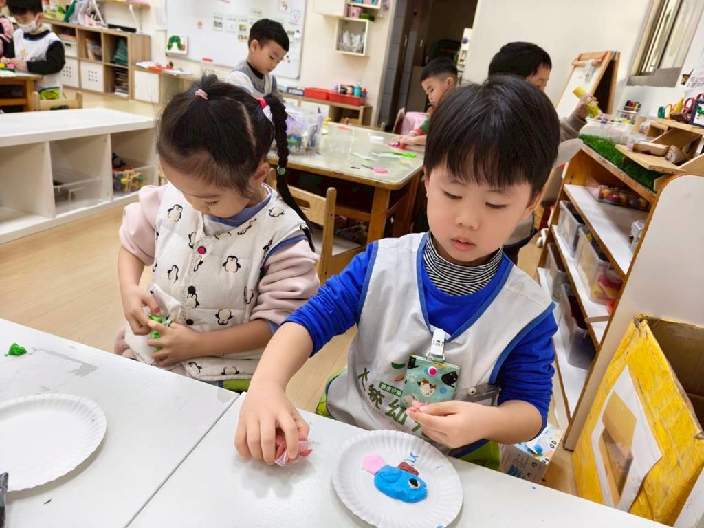 相簿名稱: 美勞區-魚與兔子製作、捏魚、創作燈籠魚、製作新年作品