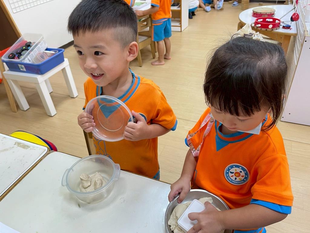 相簿名稱: 美勞區-揉麵粉糰、撕貼畫