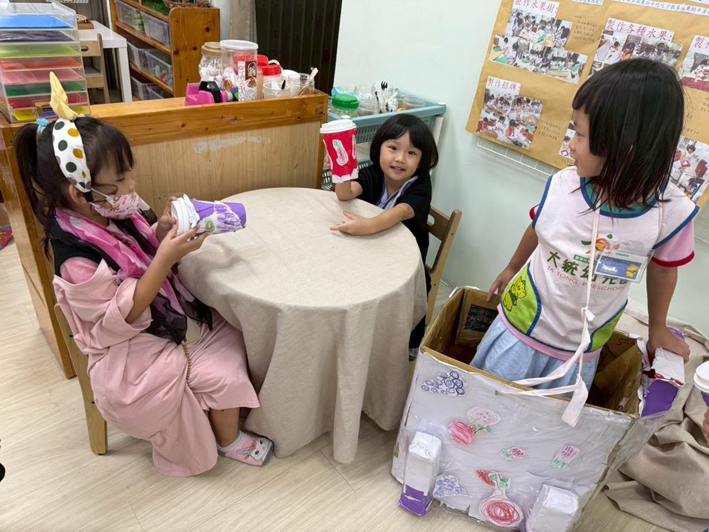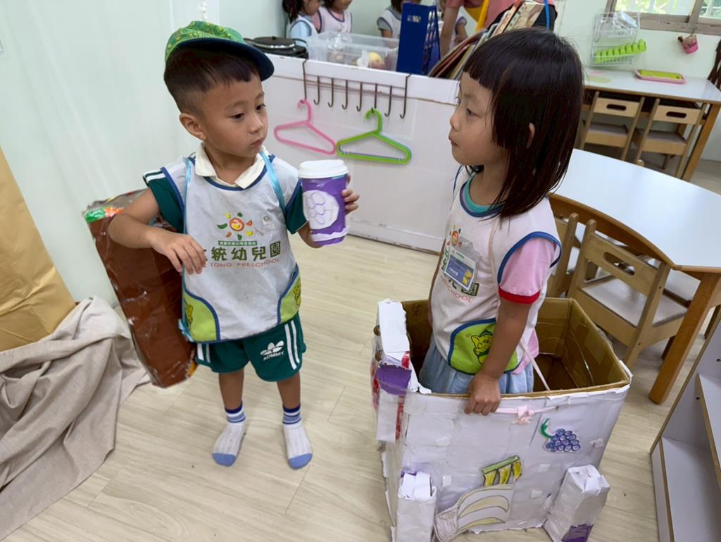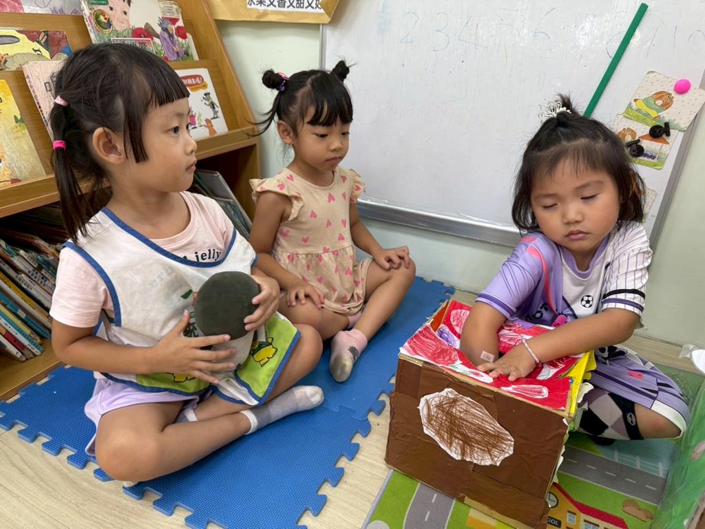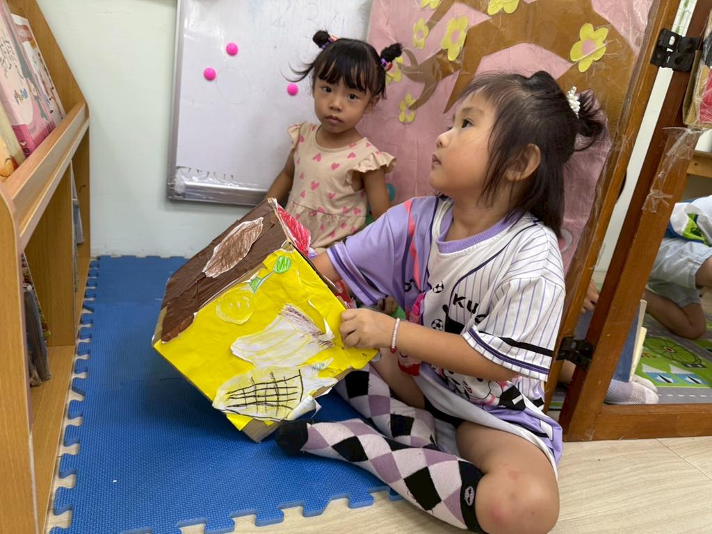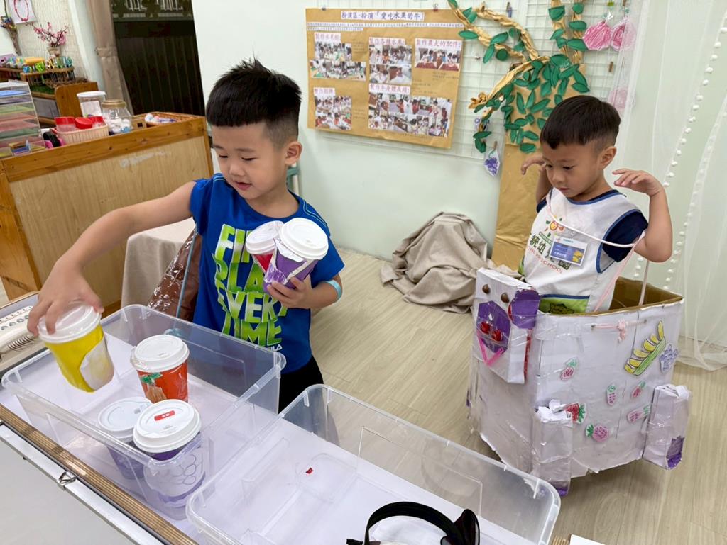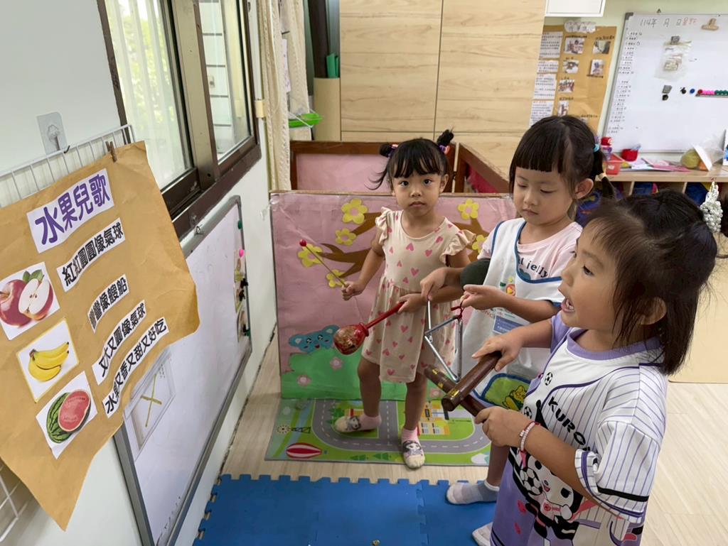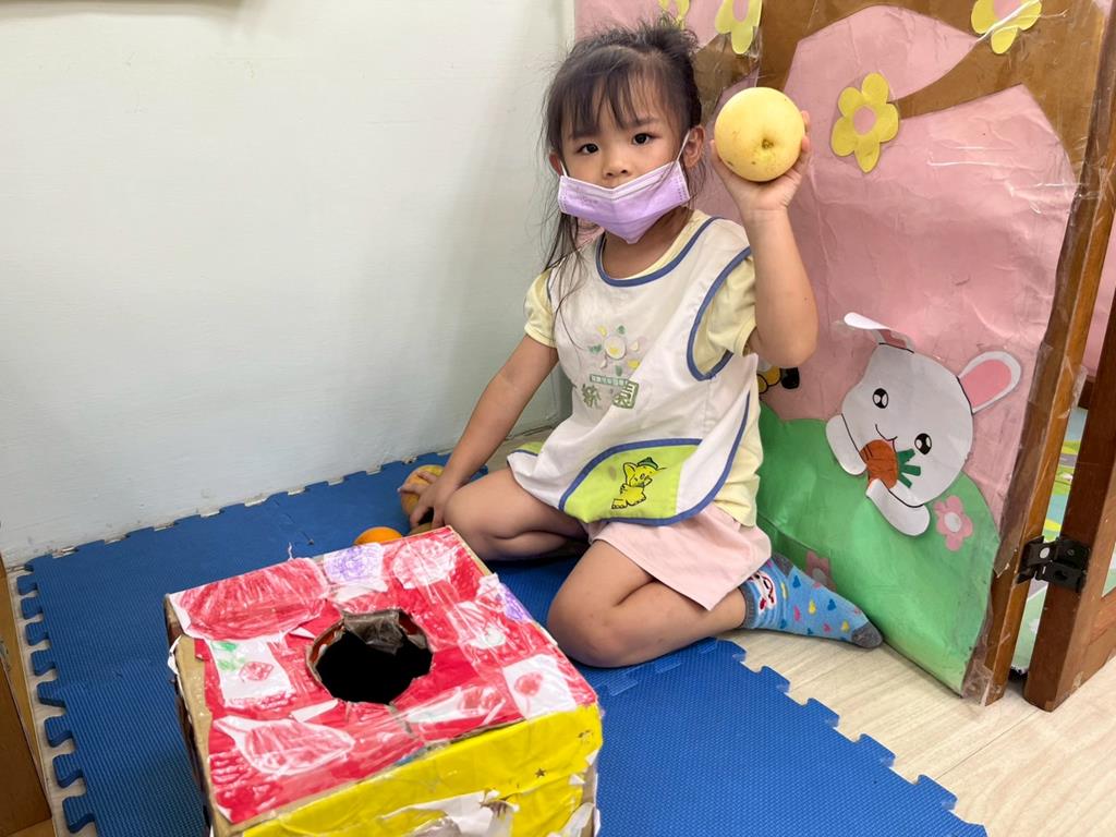 相簿名稱: 扮演區-愛吃水果的牛扮演活動;語文區-我會說故事給大家聽和摸摸水神祕箱猜猜是什麼水果呢