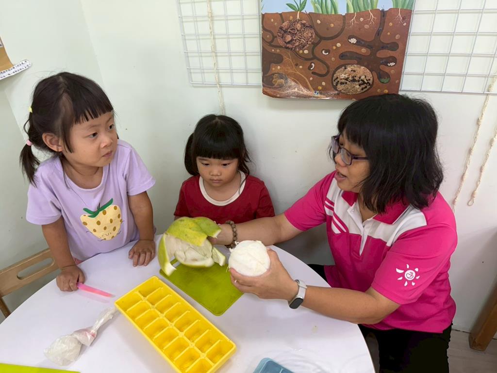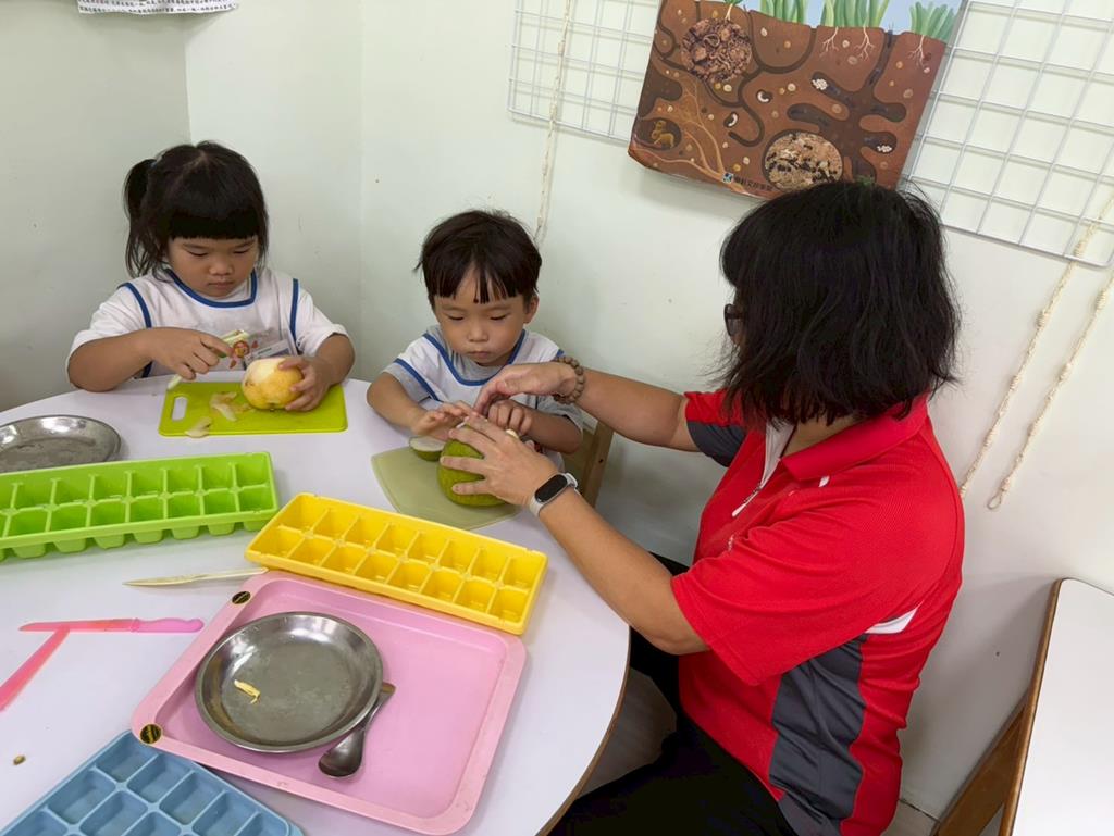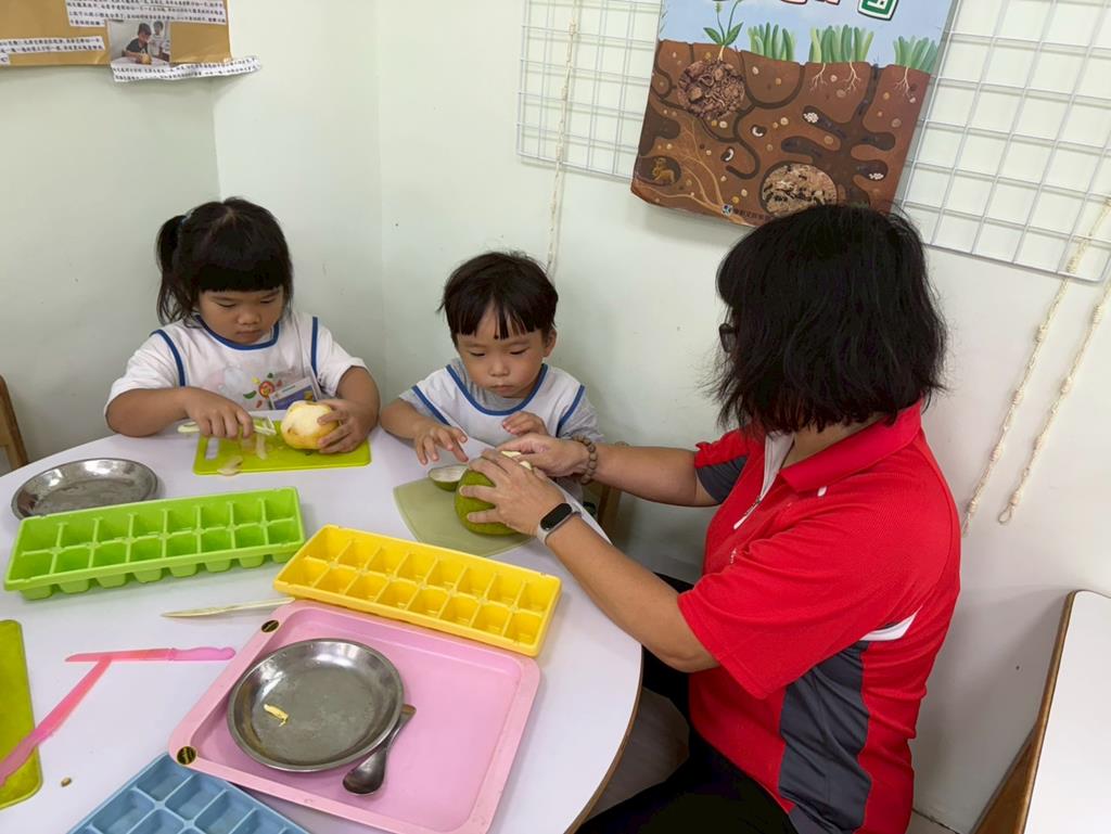相簿名稱: 科學區-練習切水果及我會點屬水果有幾個,將水果皮進行乾燥實驗電鍋
