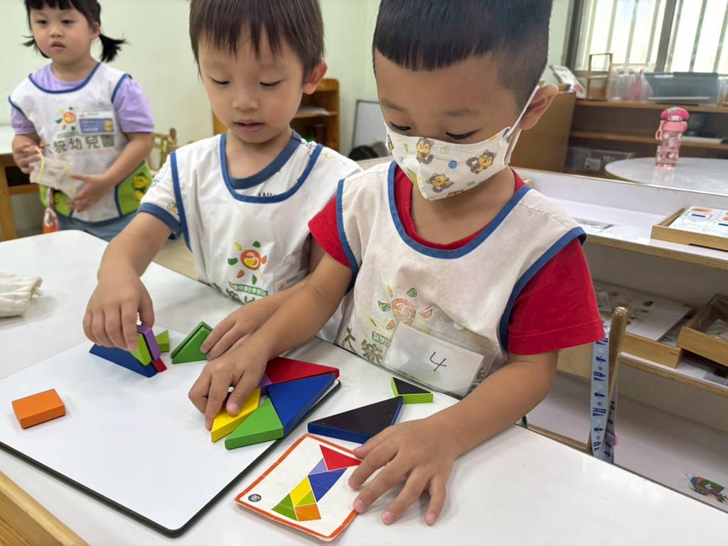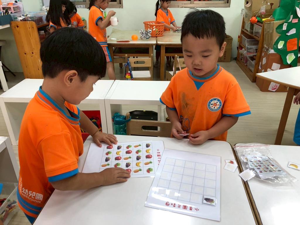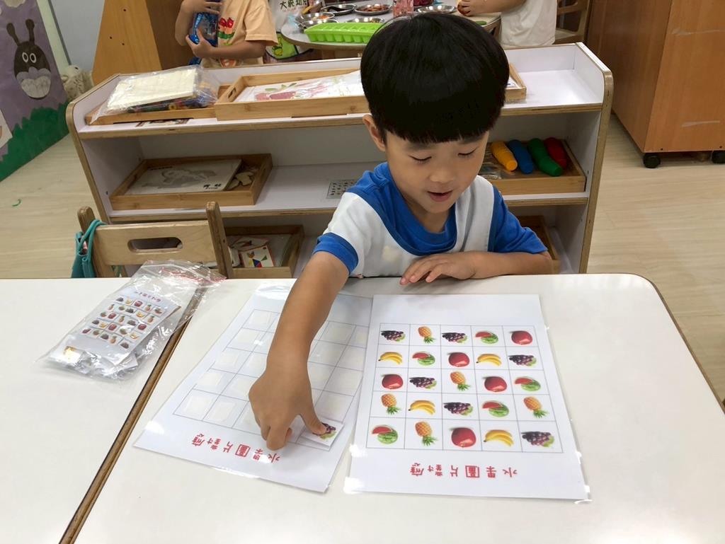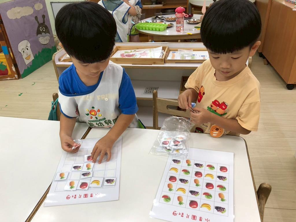 相簿名稱: 益智角操作七巧板數一數教具和水果對應