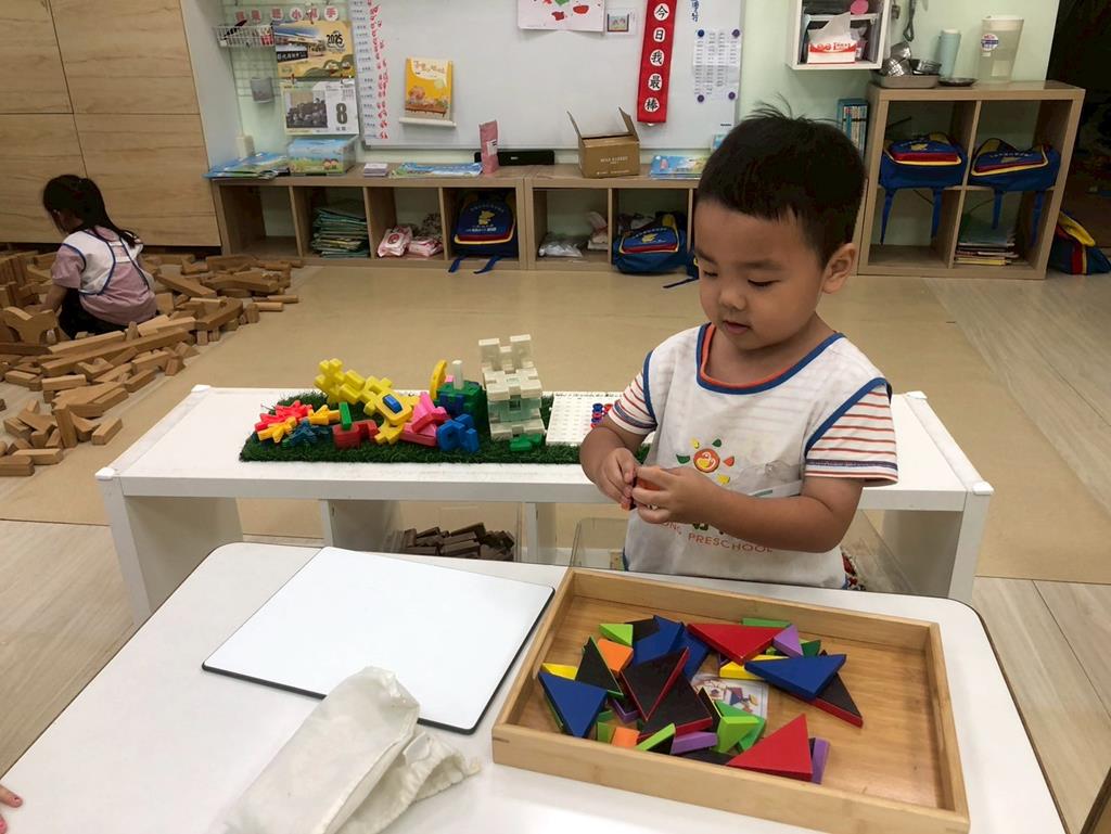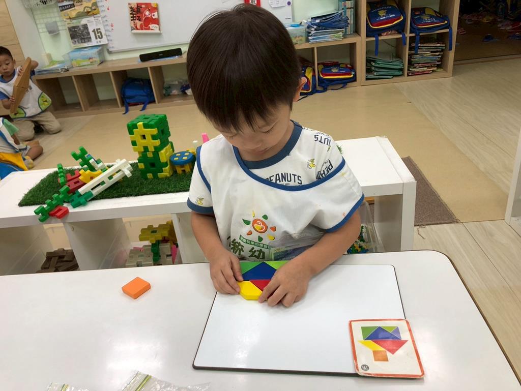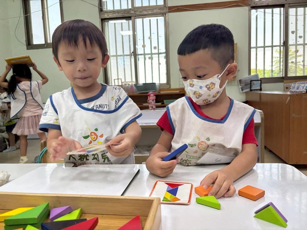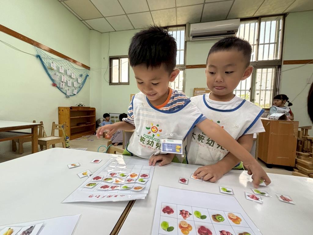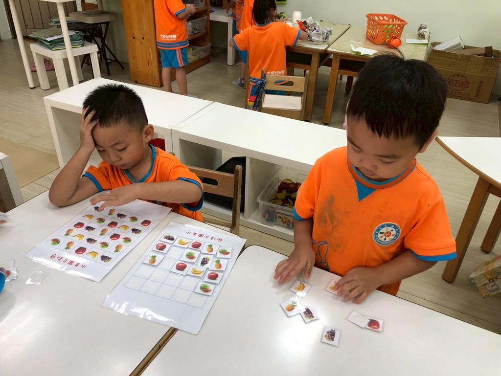 相簿名稱: 益智角操作七巧板數一數教具和水果對應