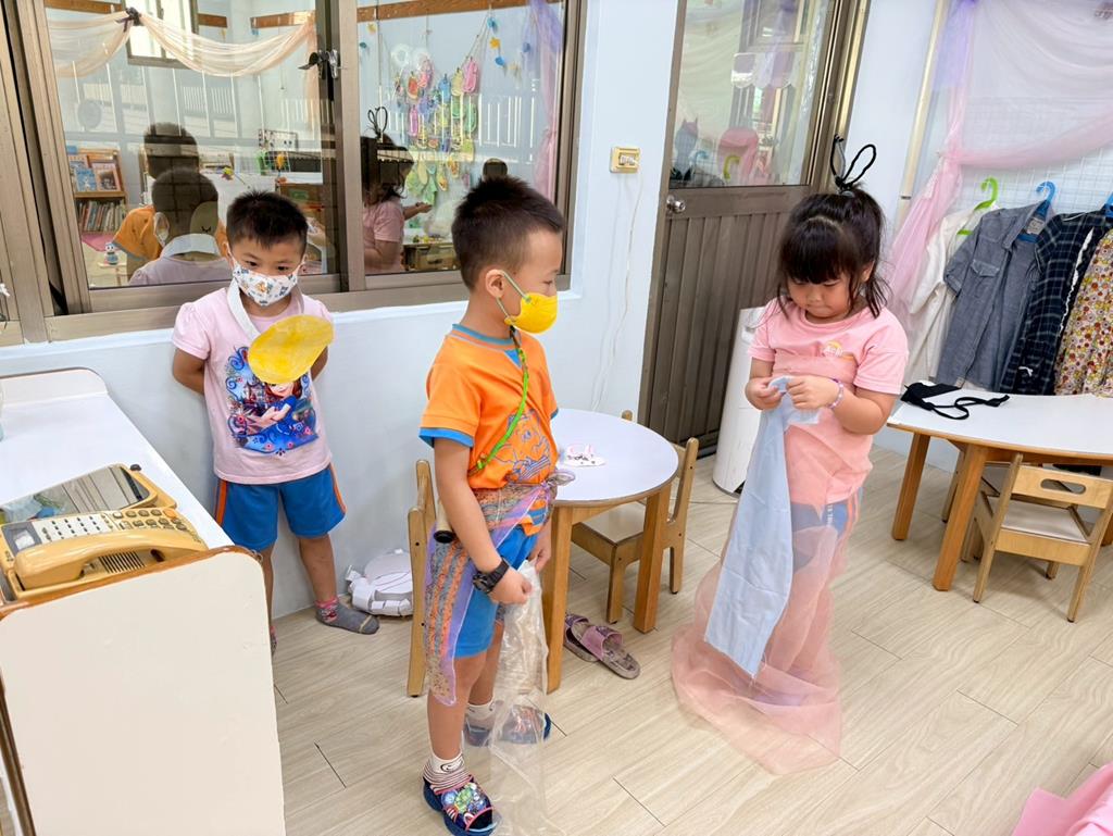 相簿名稱: 扮演區-裝扮成嫦娥、后羿、太陽、人民、王母等角色人物並利用肢體及口語演出嫦娥奔月故事