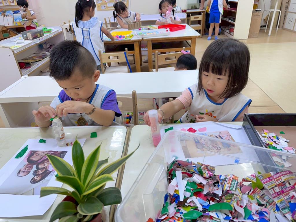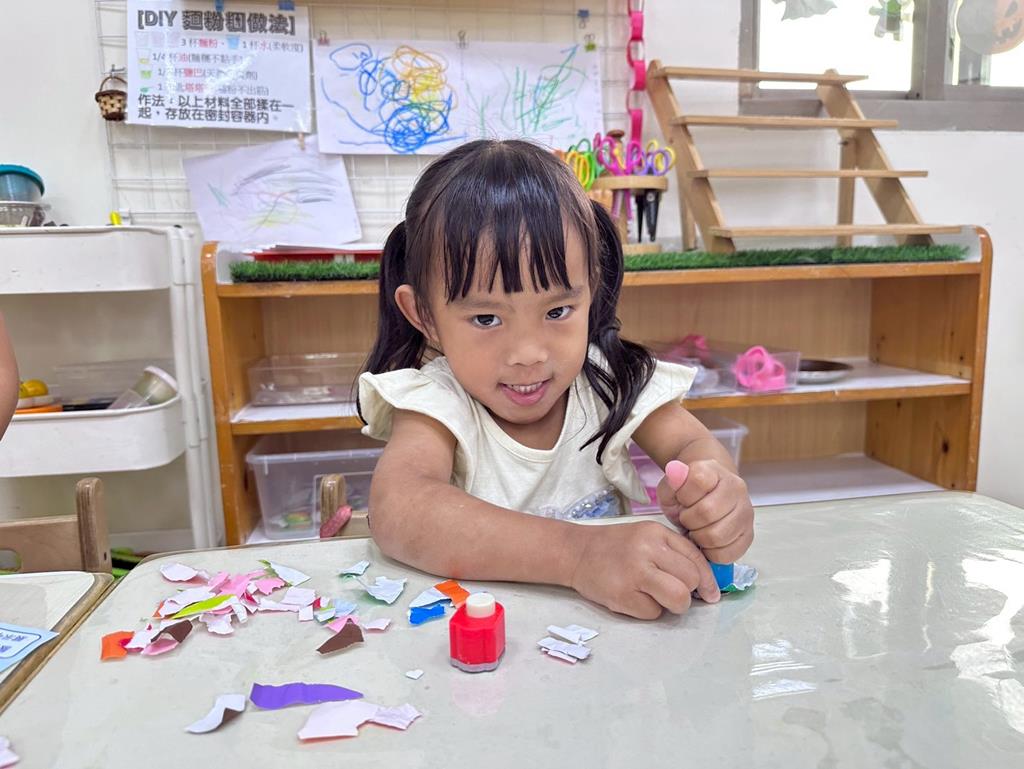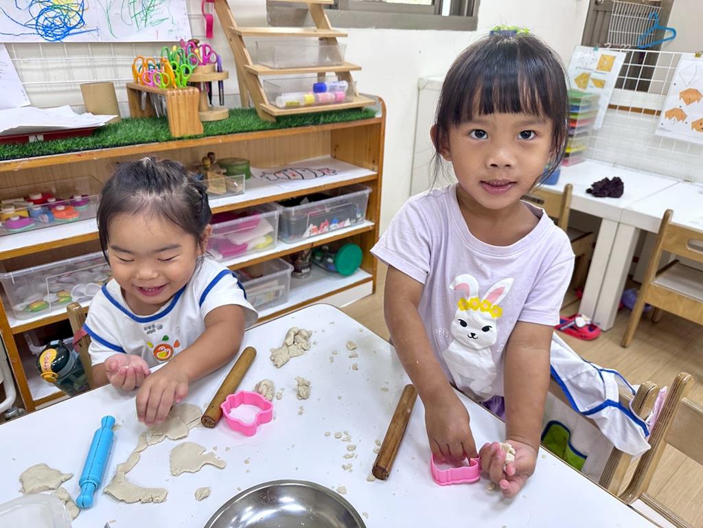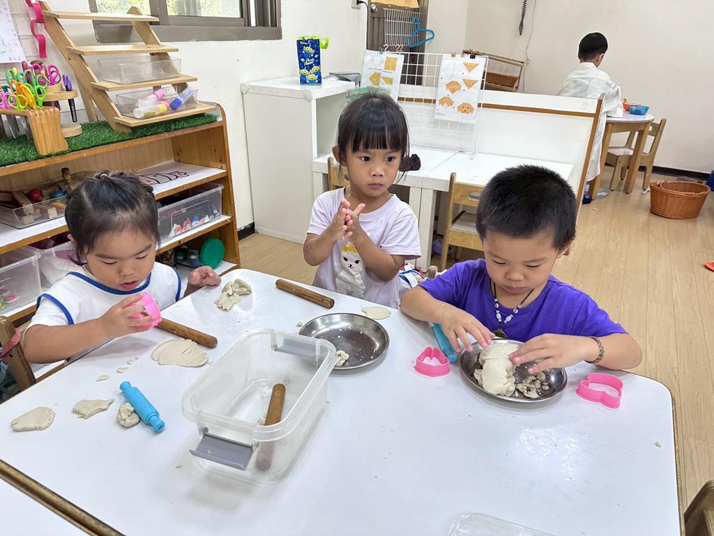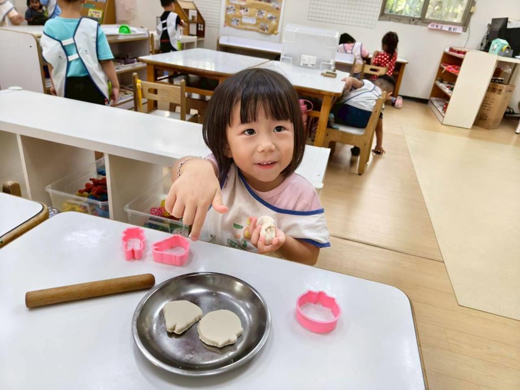相簿名稱: 美勞-麵粉糰揉月餅、打洞、撕紙、佈置家人照片邊框、