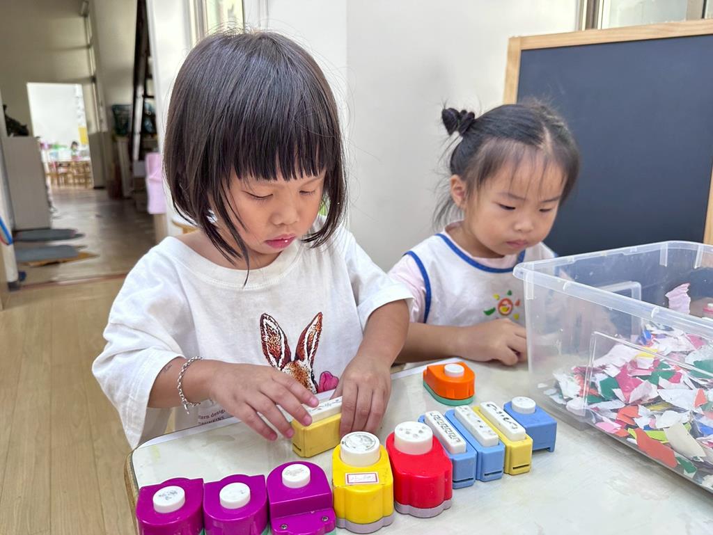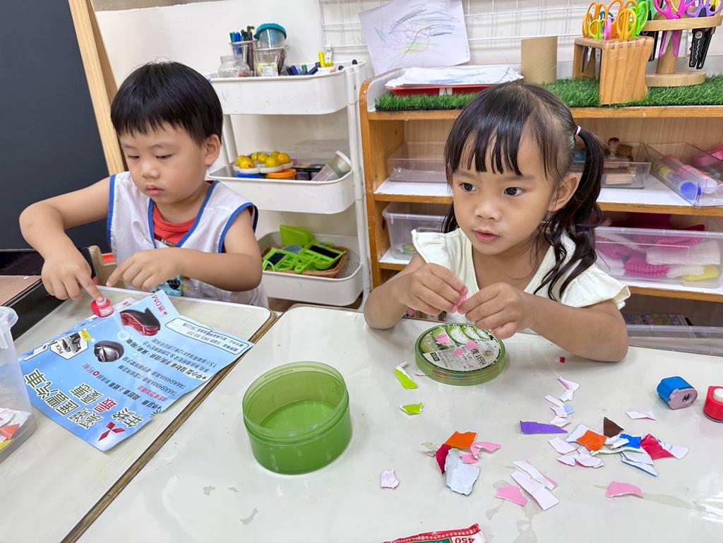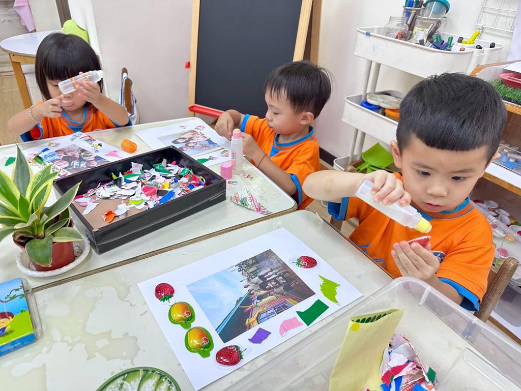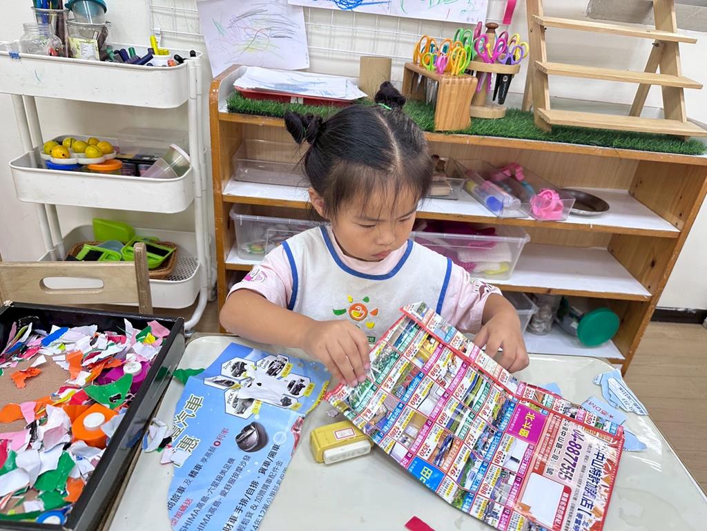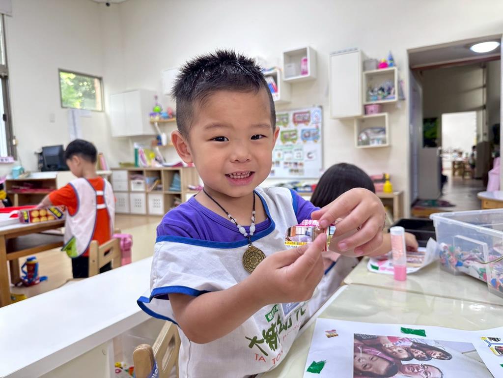 相簿名稱: 美勞-麵粉糰揉月餅、打洞、撕紙、佈置家人照片邊框、