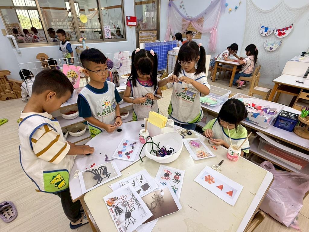 相簿名稱: 美勞區-製作圖書館還書箱、製作數字排卡並做成日期歸還立牌&製作萬聖節的佈置的蜘蛛~