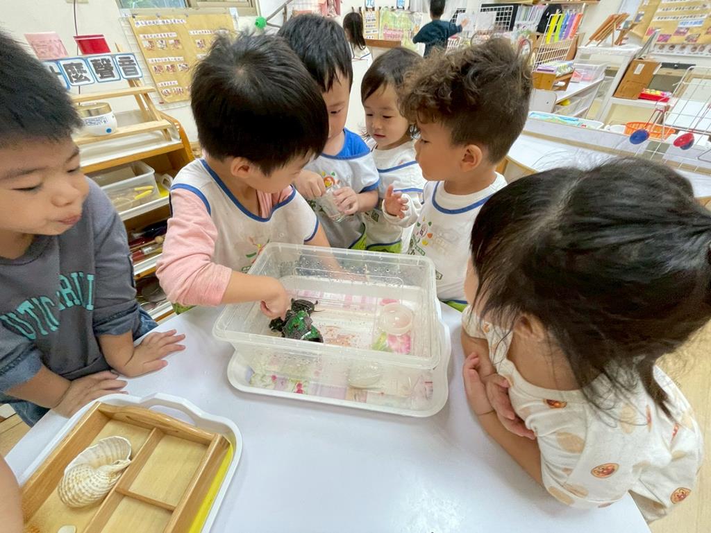 相簿名稱: 科學區-觀察小魚、清洗烏龜的家