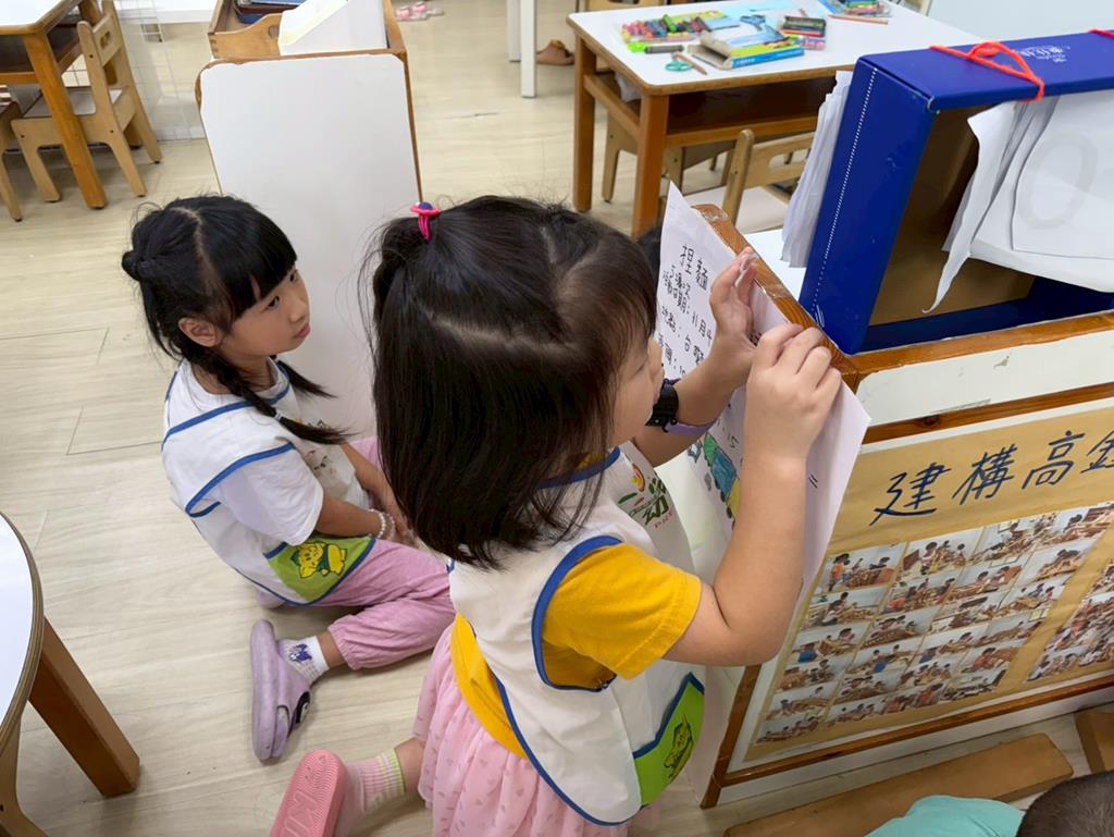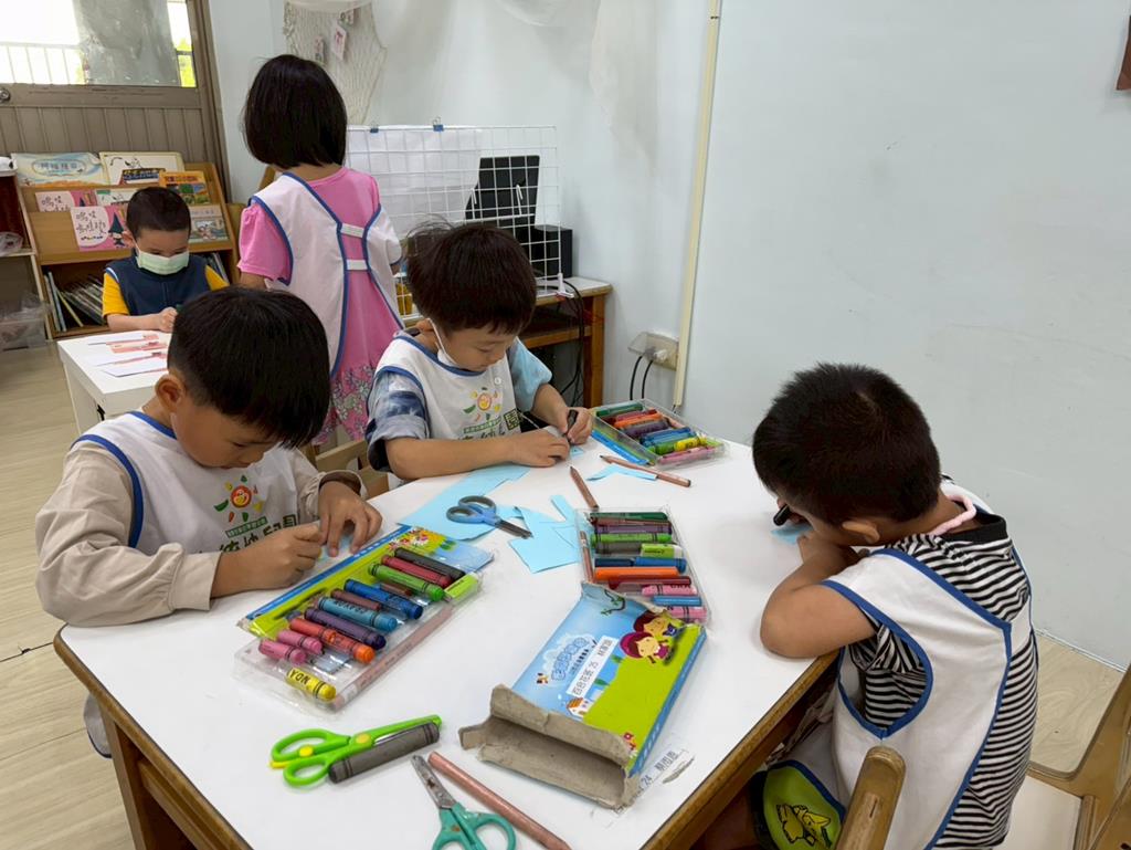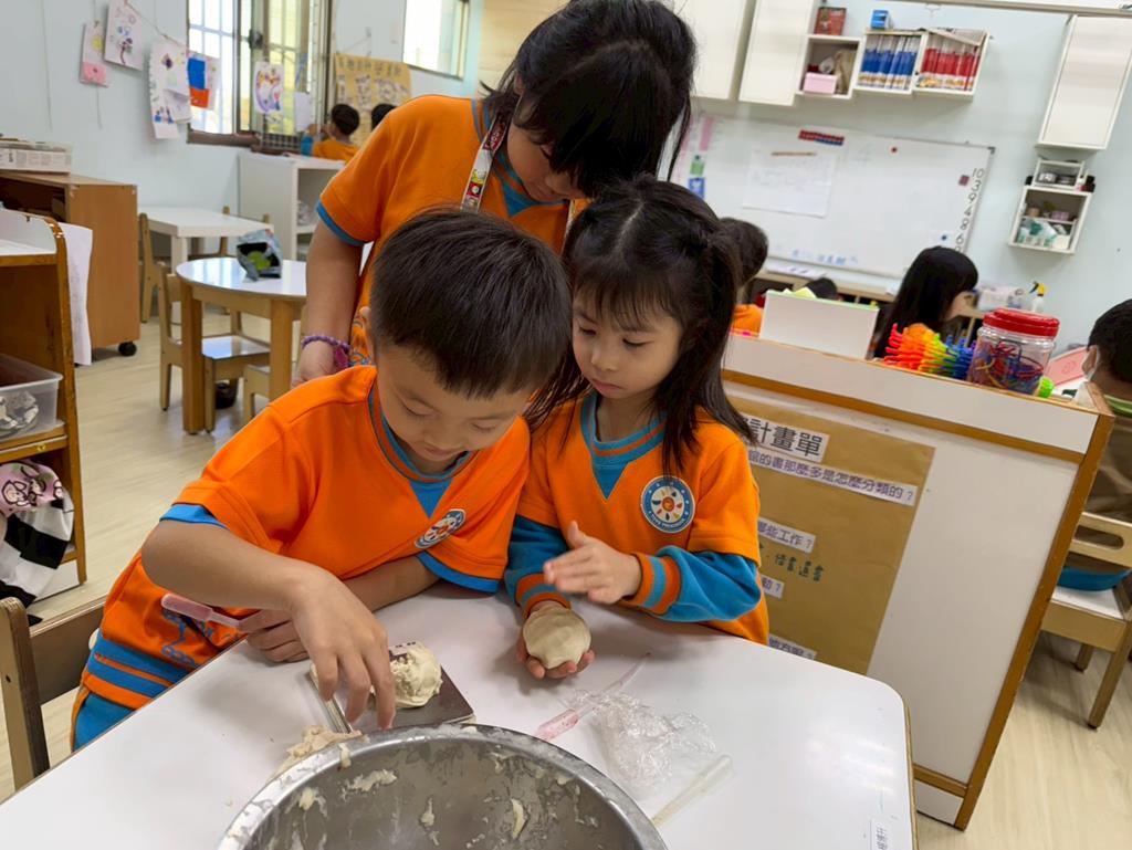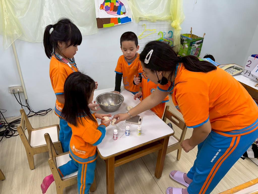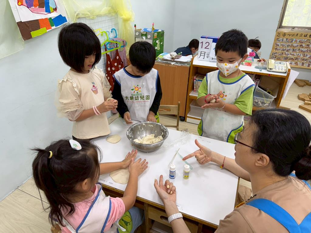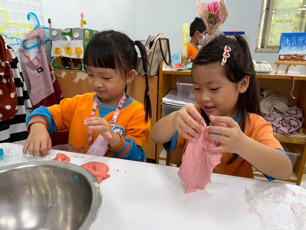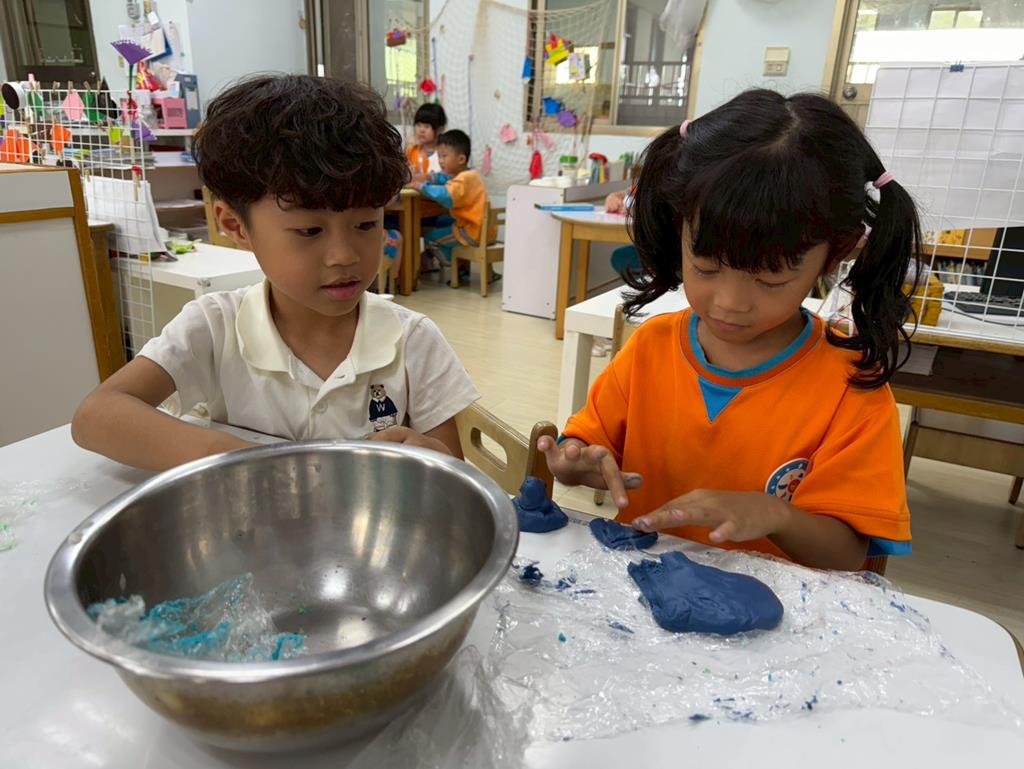相簿名稱: 娃娃-圖書館活動(麵粉糰染出不同的綠)製作借書證及張貼海報
