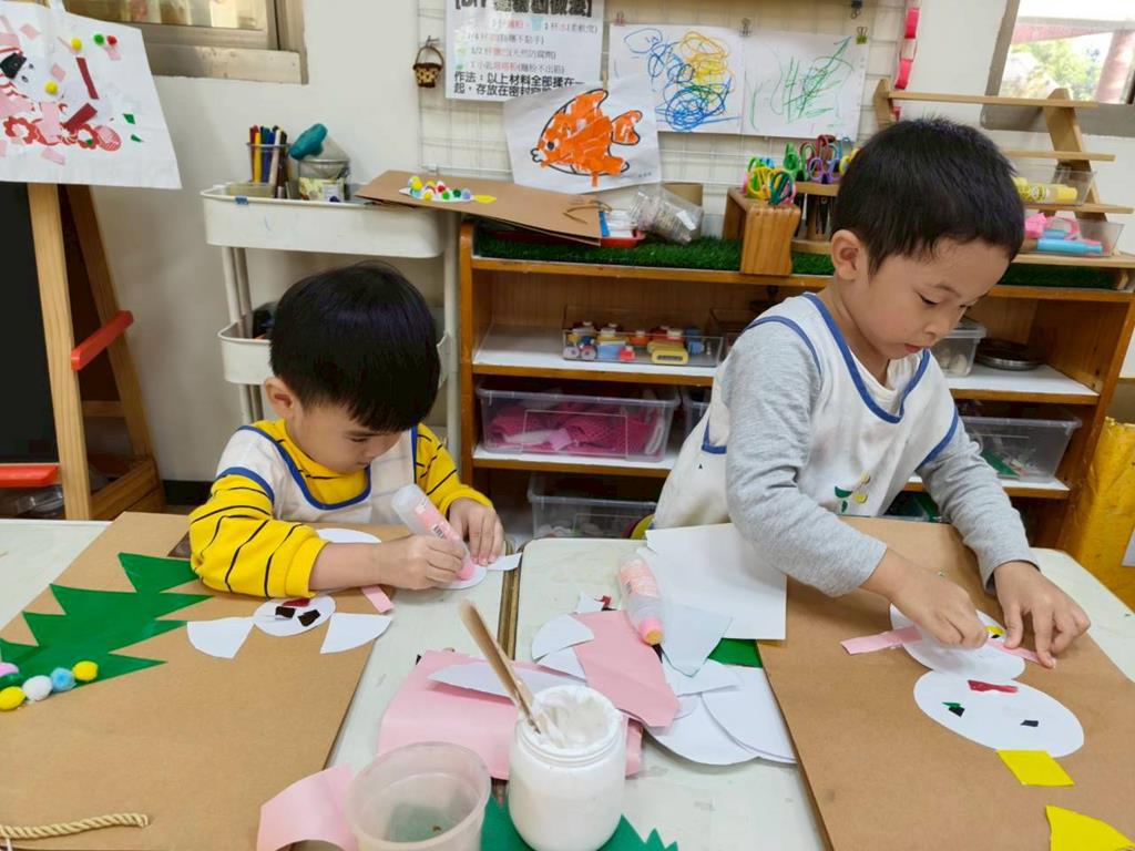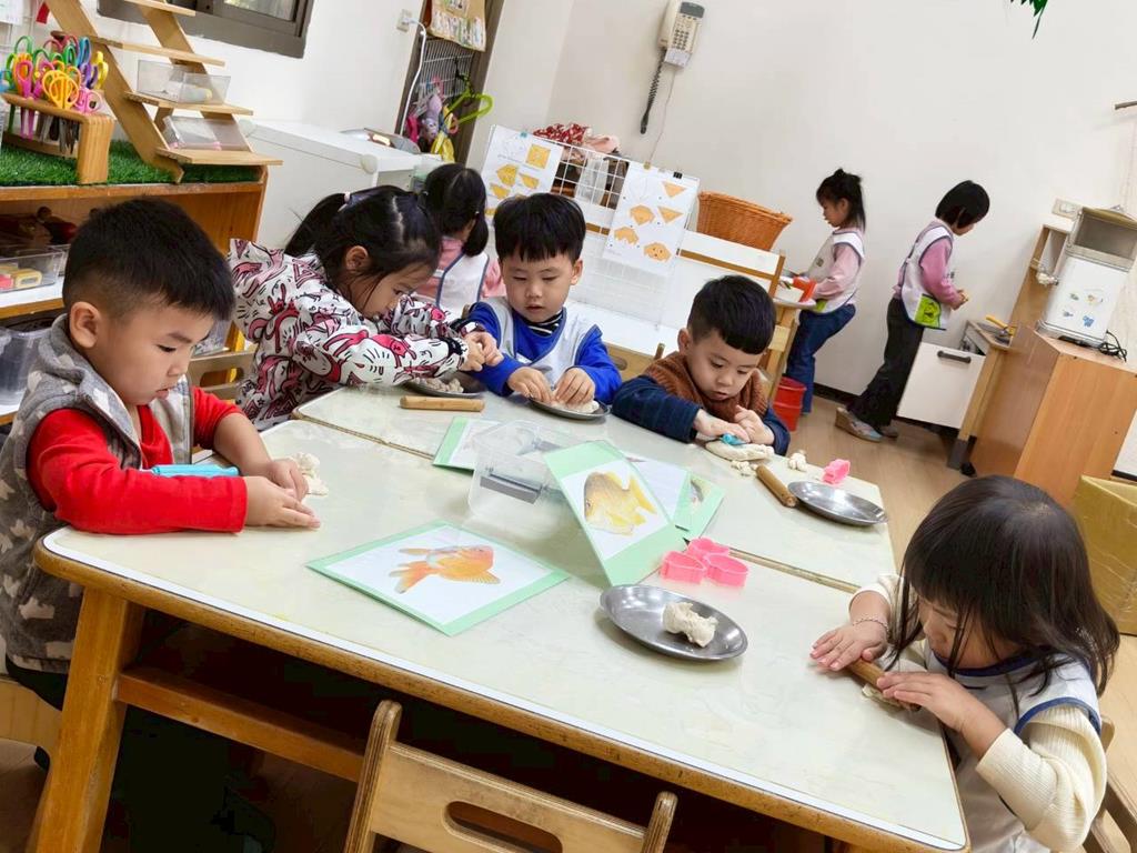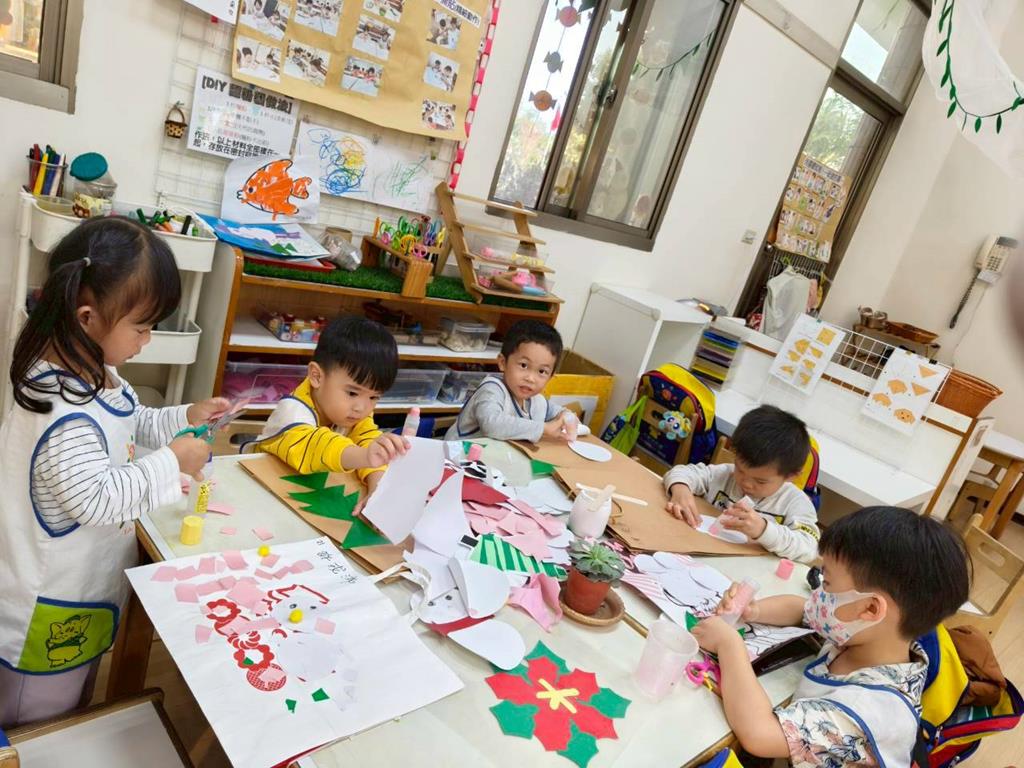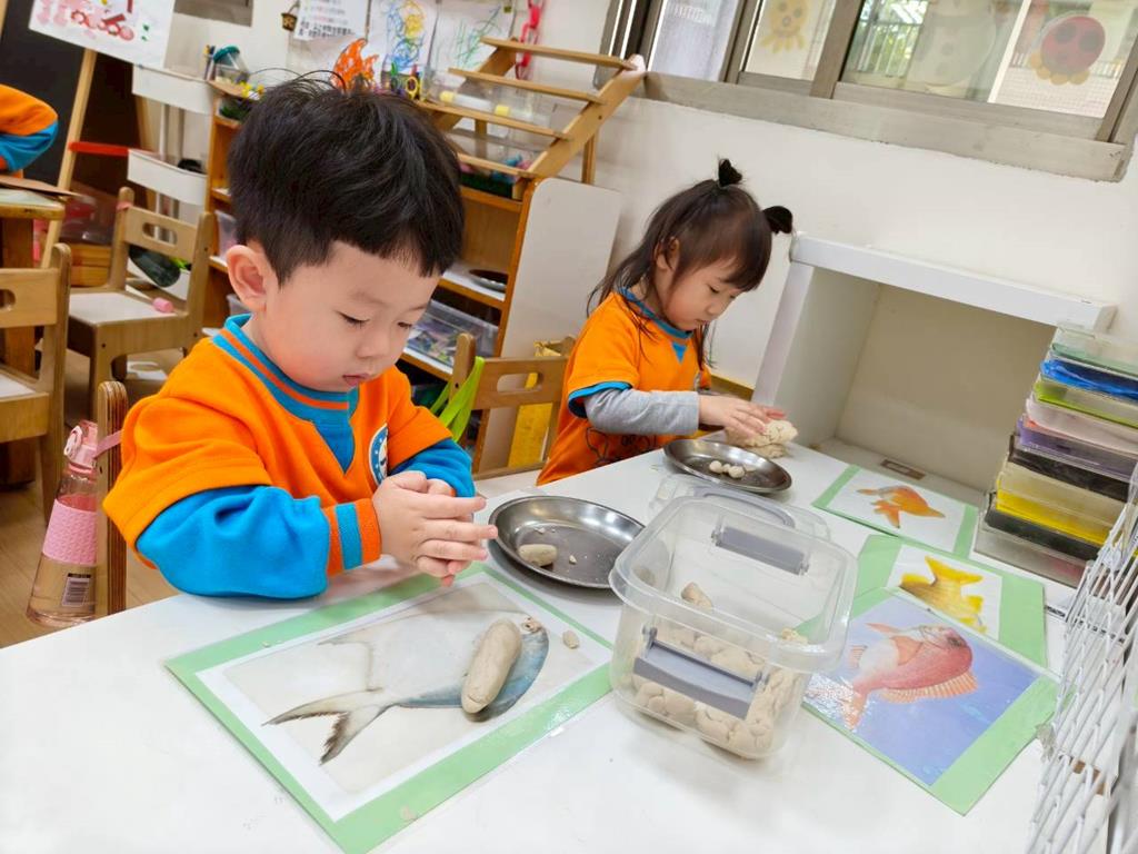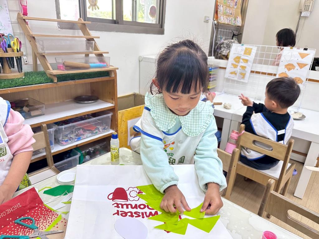 相簿名稱: 美勞區-撕貼畫-魚、玩麵粉糰、創作聖誕袋