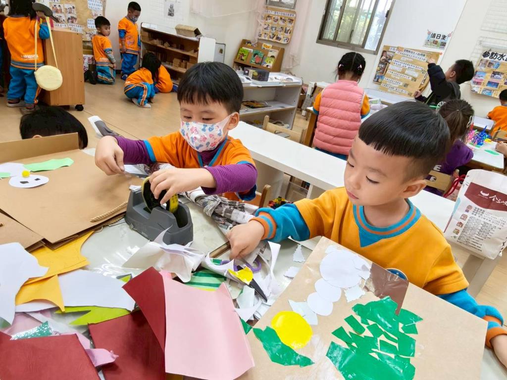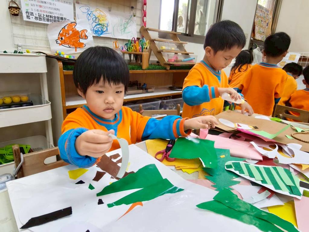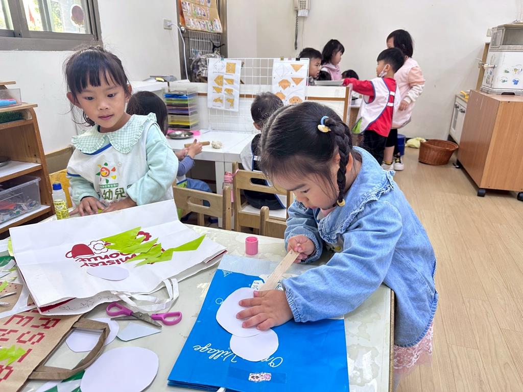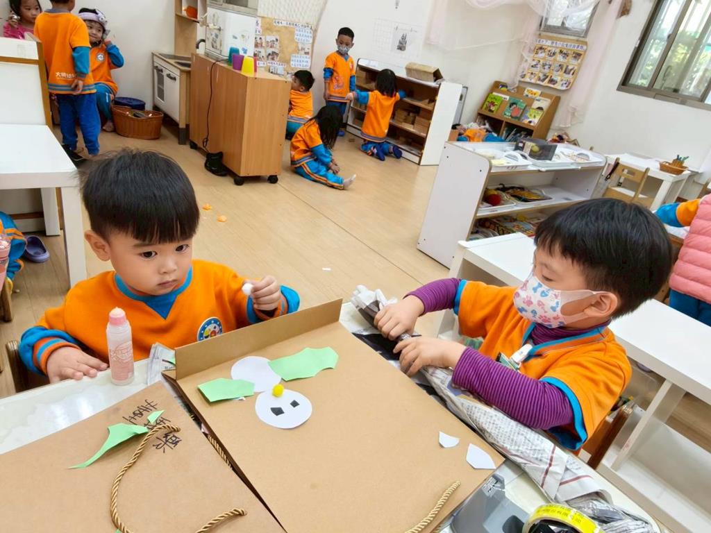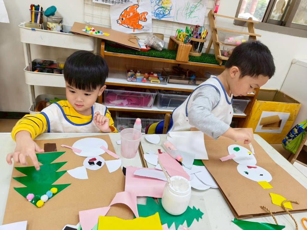 相簿名稱: 美勞區-撕貼畫-魚、玩麵粉糰、創作聖誕袋