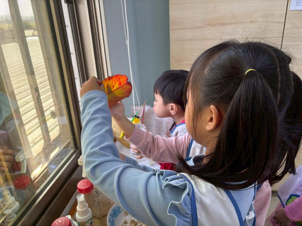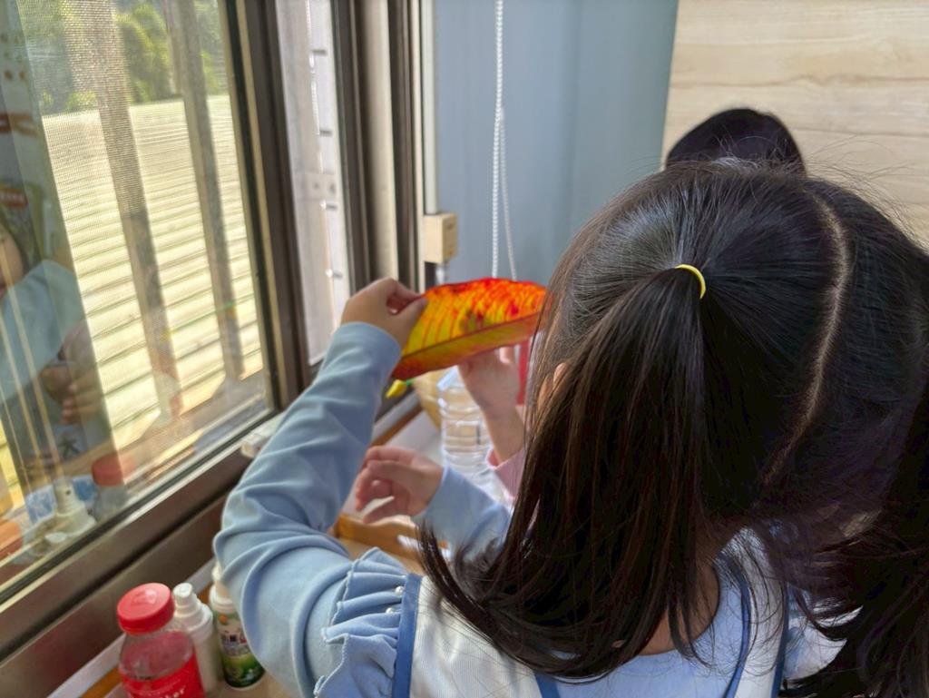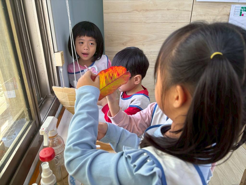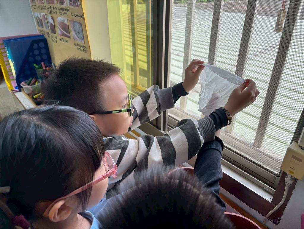 相簿名稱: 科學實驗-探究風速&觀察樹葉顏色及光影&探究教室內有什麼是能透光的物品&三角鏡也能產生光